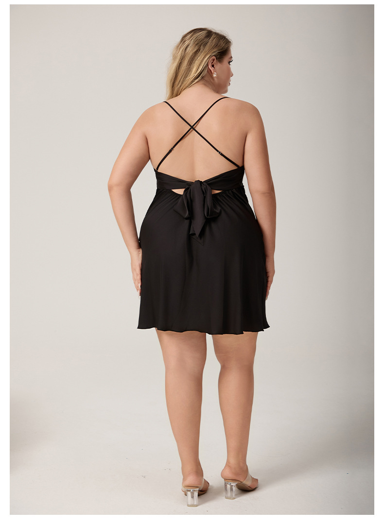 Yaoting pijamas de seda de hielo de tamaño grande simple y sexy vestido corto para el hogar de mujeres SQ7009