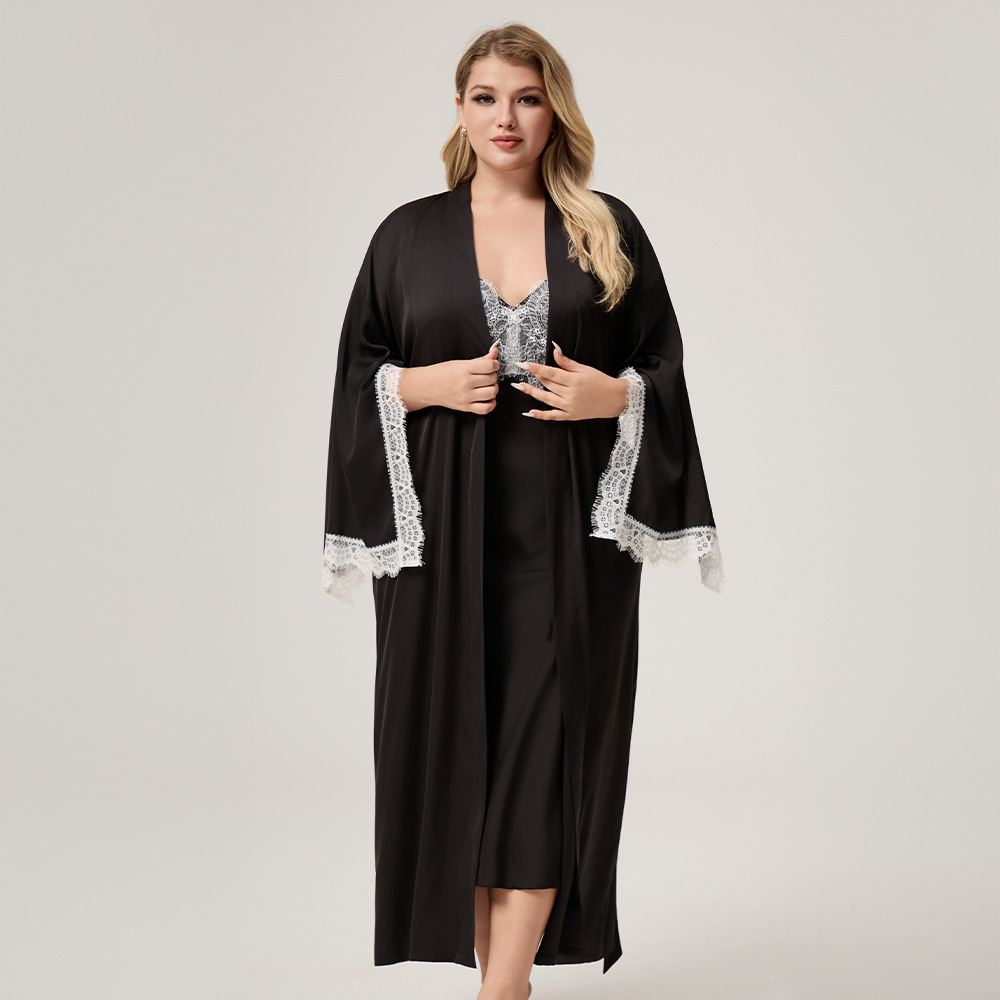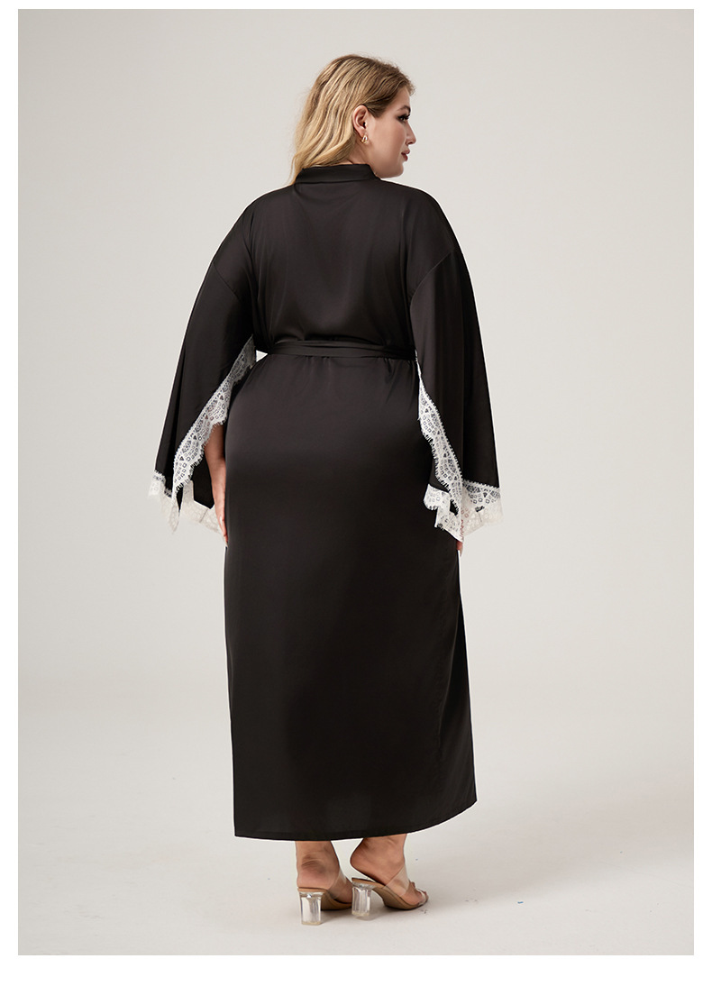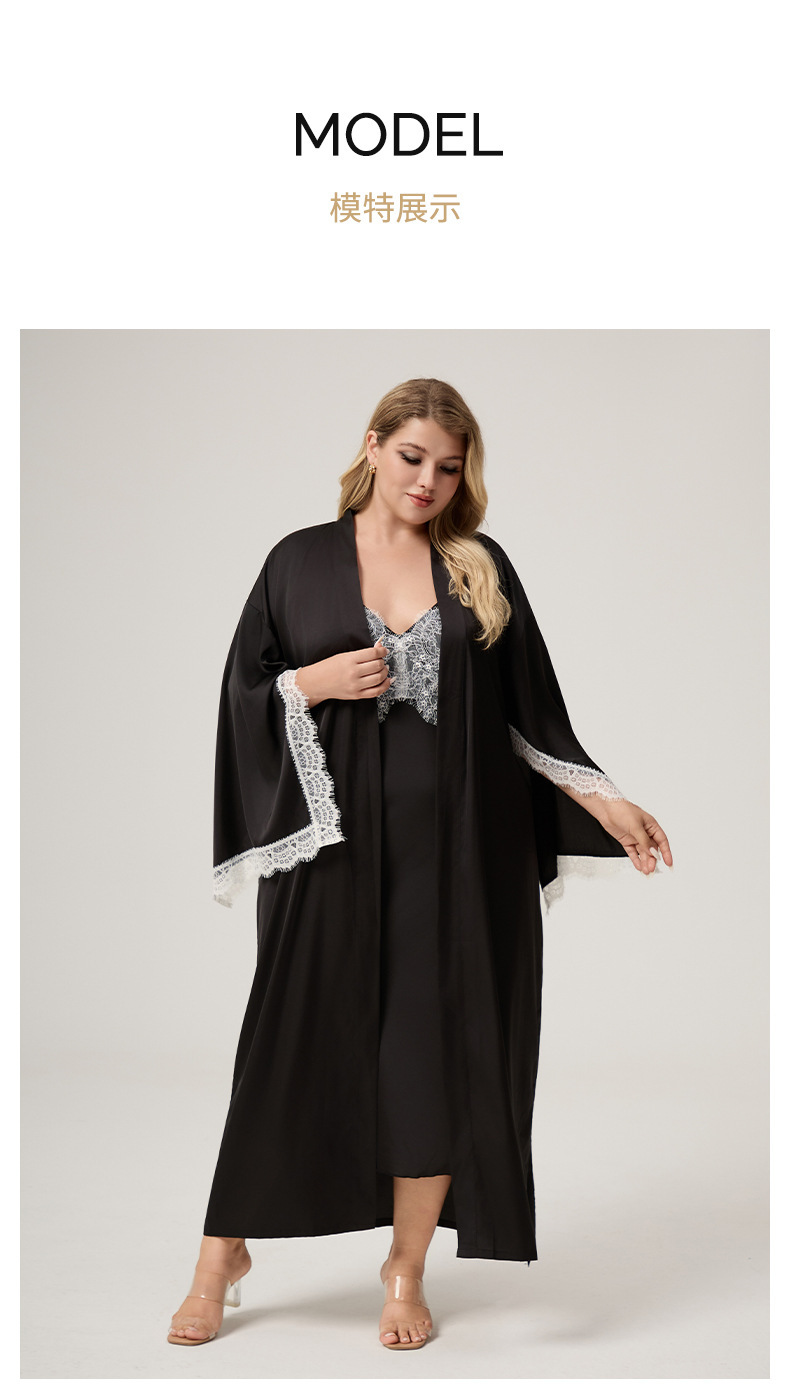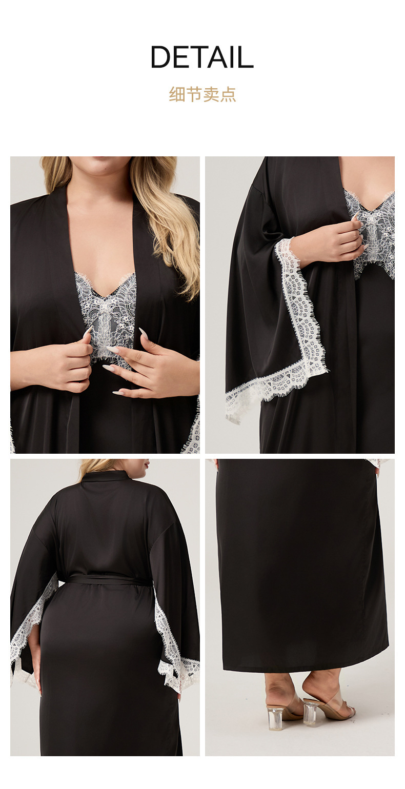 Yaoting satén de chiffón de primavera y otoño pijama de encaje de mangas largas pijamas de tamaño grande ropa para el hogar CP3820