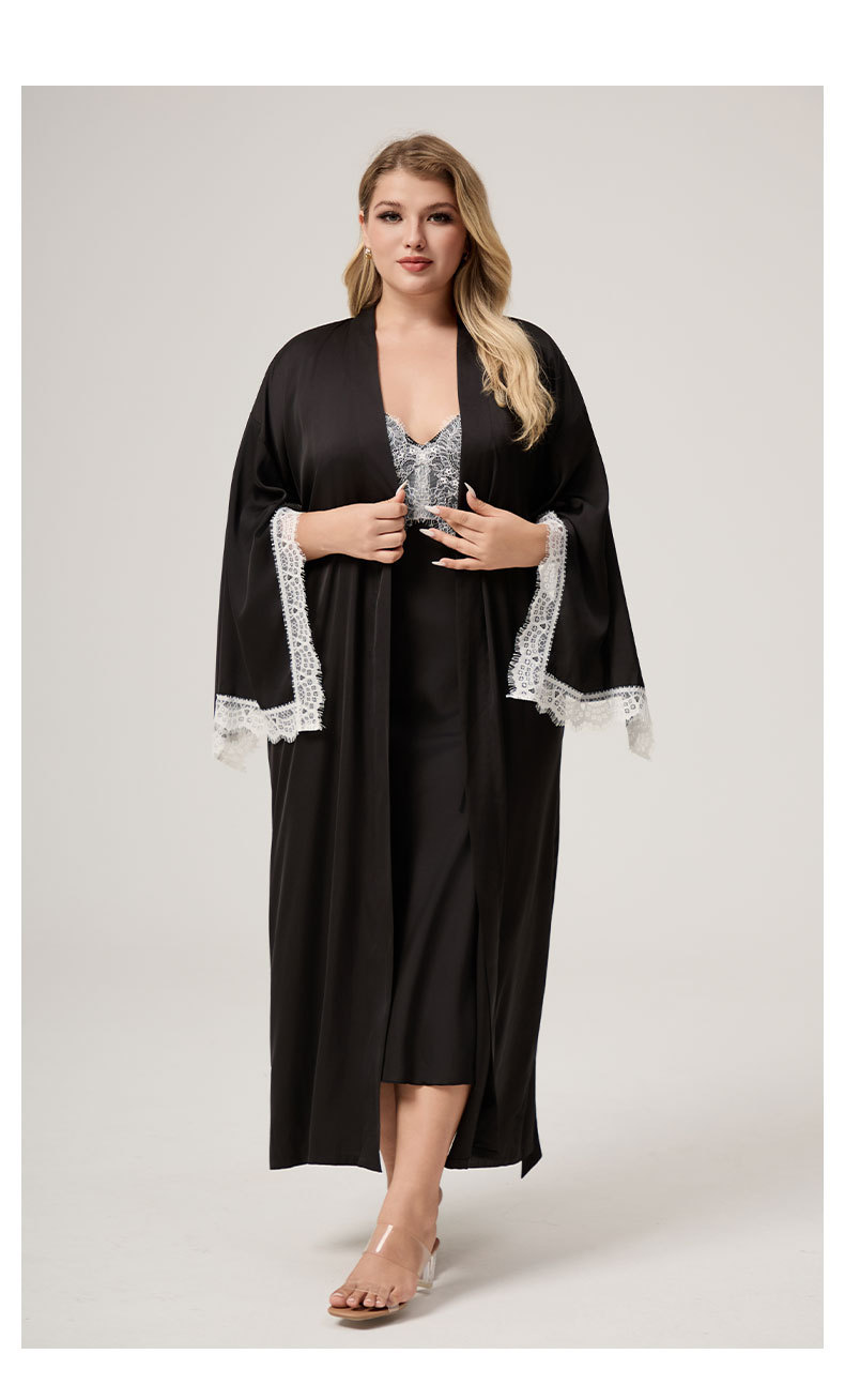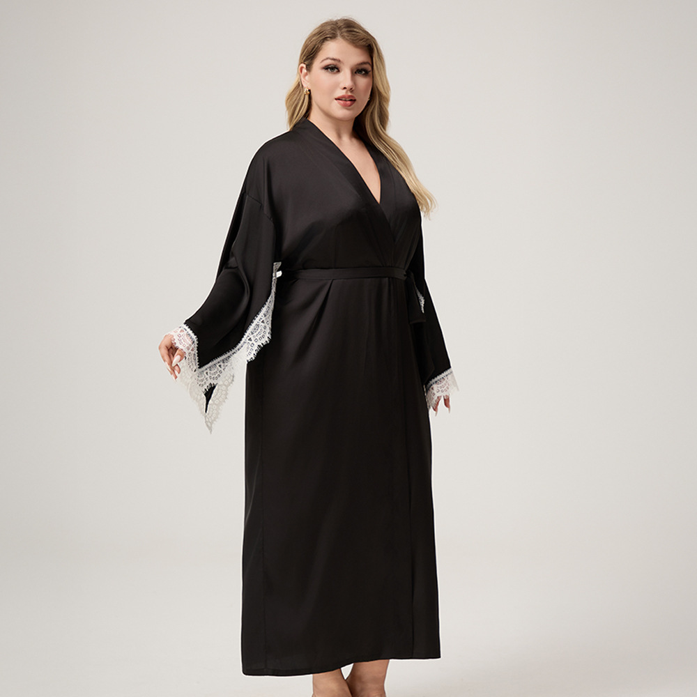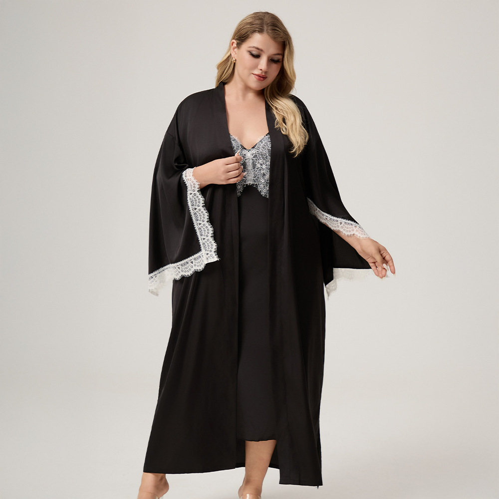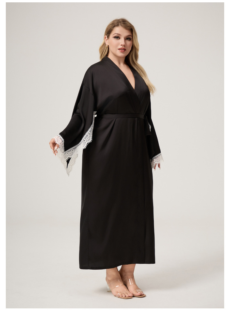 Yaoting satén de chiffón de primavera y otoño pijama de encaje de mangas largas pijamas de tamaño grande ropa para el hogar CP3820