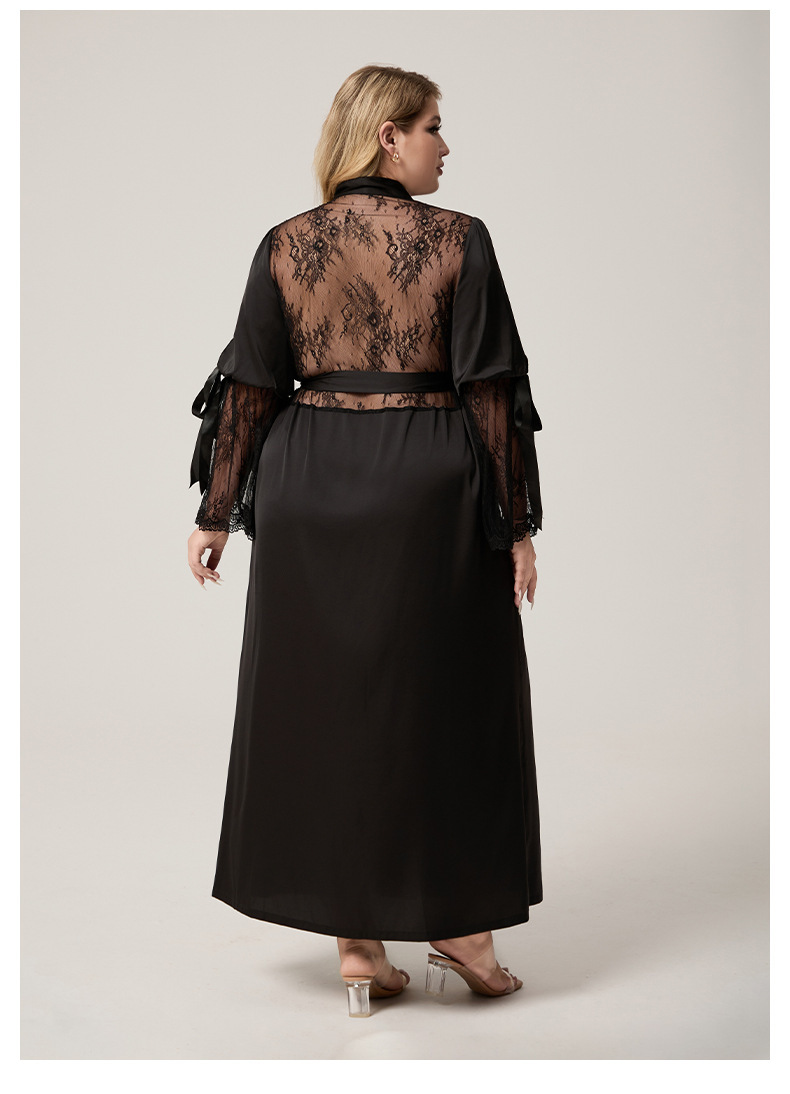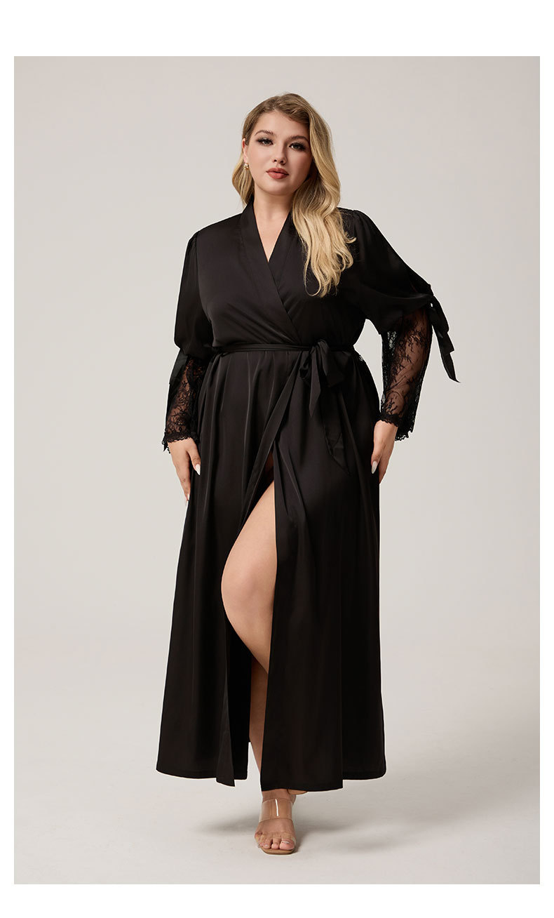 Yaoting satén de chiffón de primavera y otoño pijama de encaje de mangas largas pijamas de tamaño grande ropa para el hogar CP3815