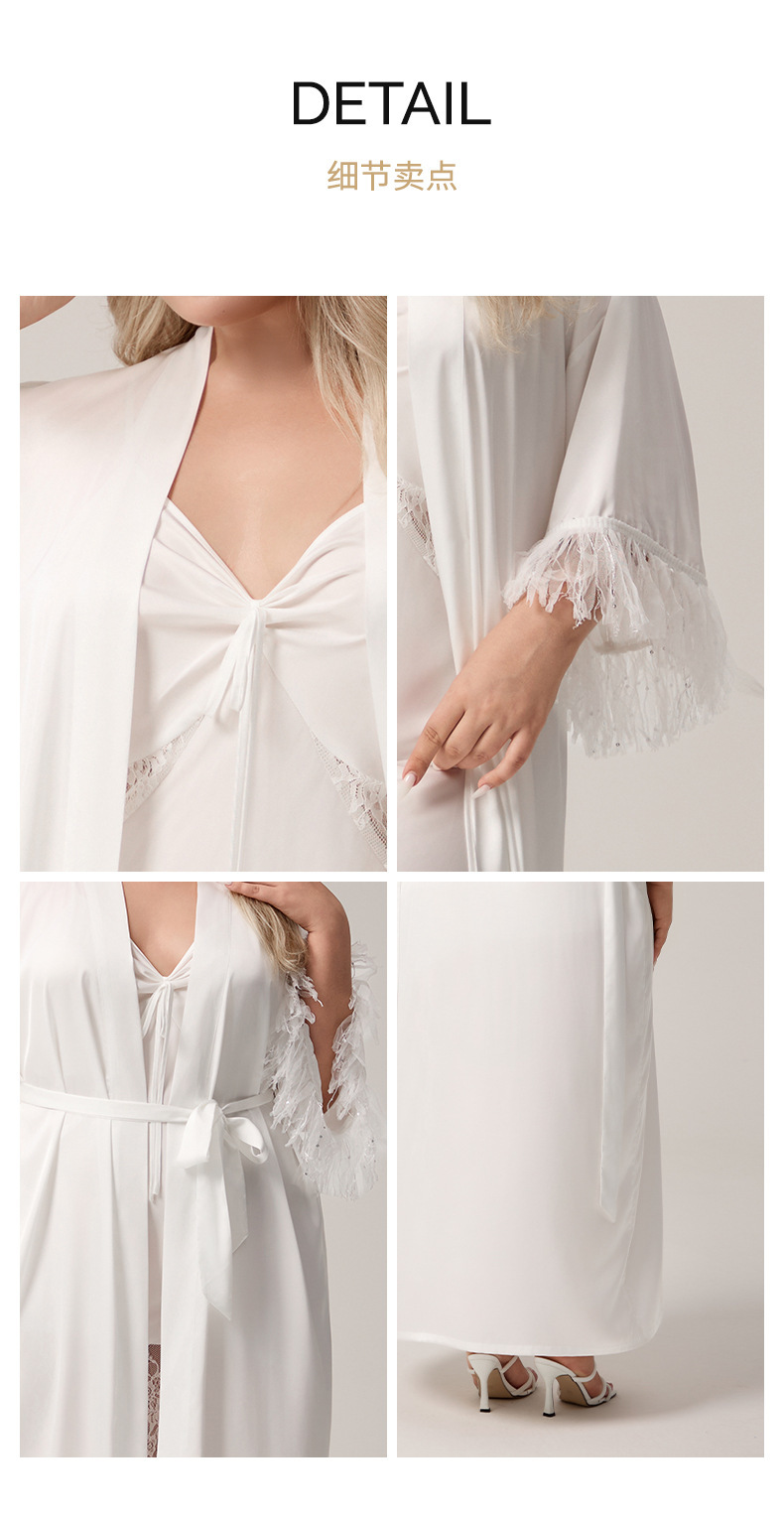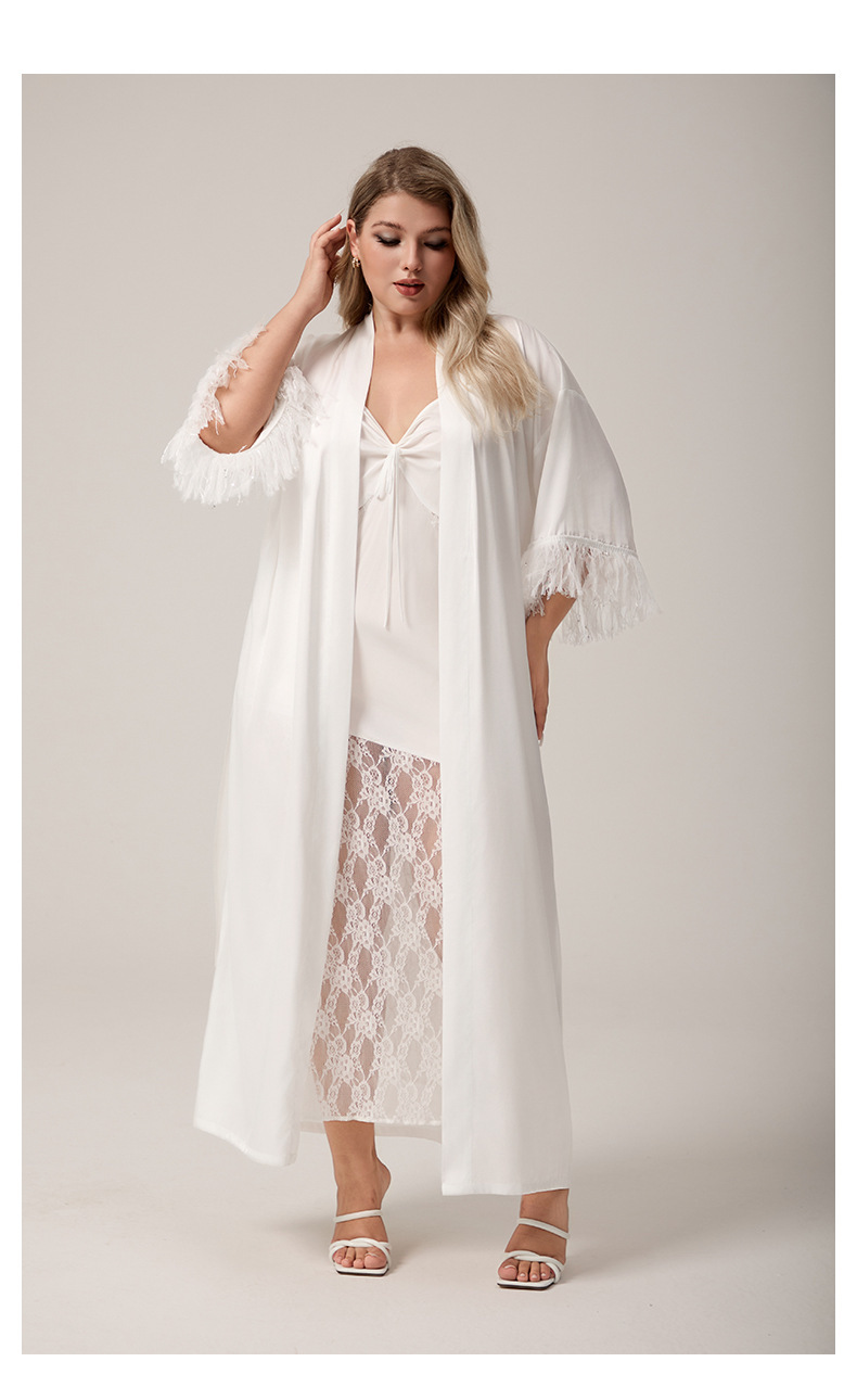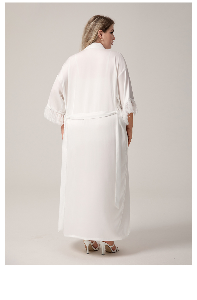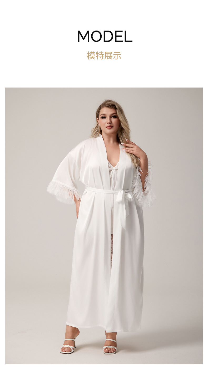 Brillante ropa de cama de chiffon de tamaño grande para mujeres plumas sueltas bata de baño de una sola ropa de baño larga ropa de cama WP5013