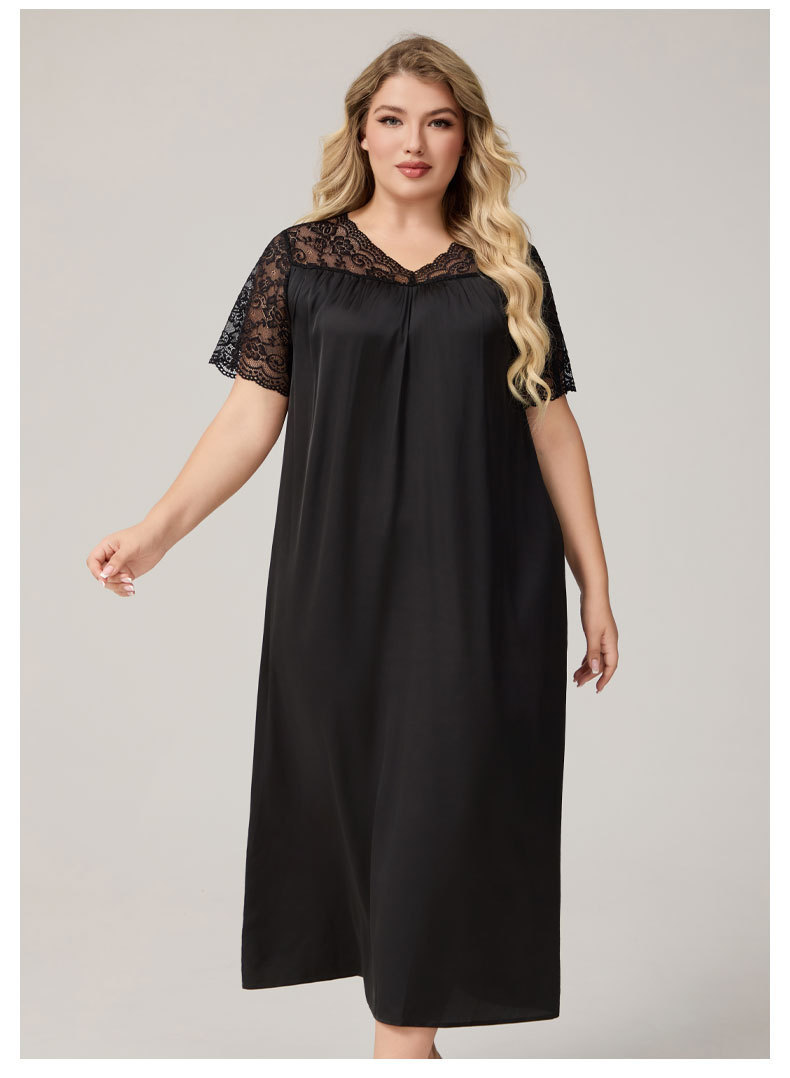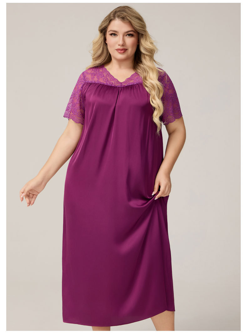 Yaoting nuevo satén transfronterizo pijama de tamaño grande para mujeres de verano pijama de manga corta larga ropa casera casual suelta para mujeres SQ7012