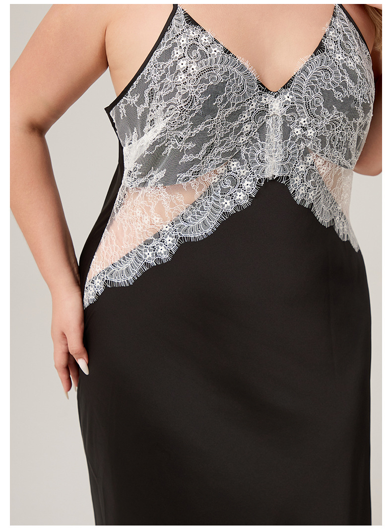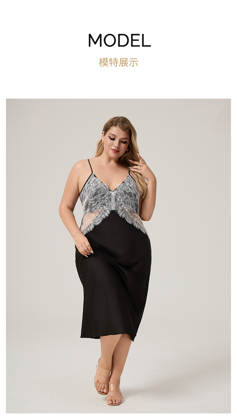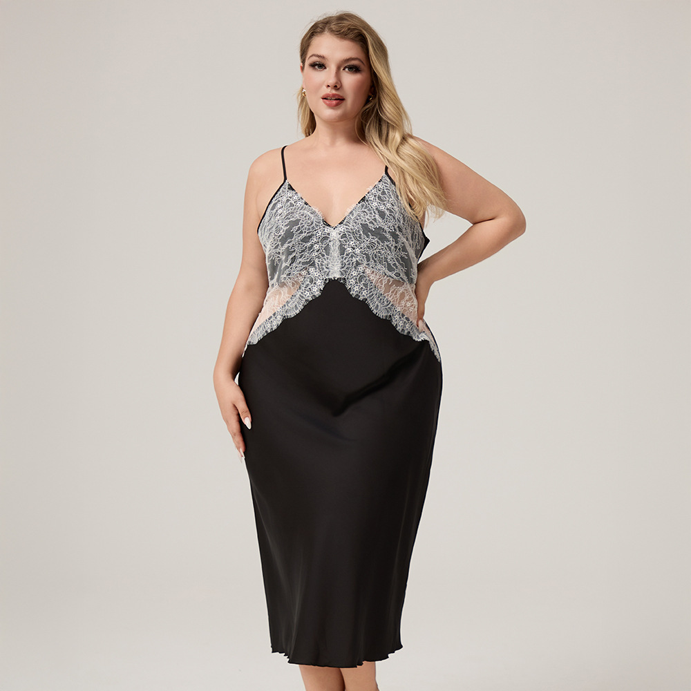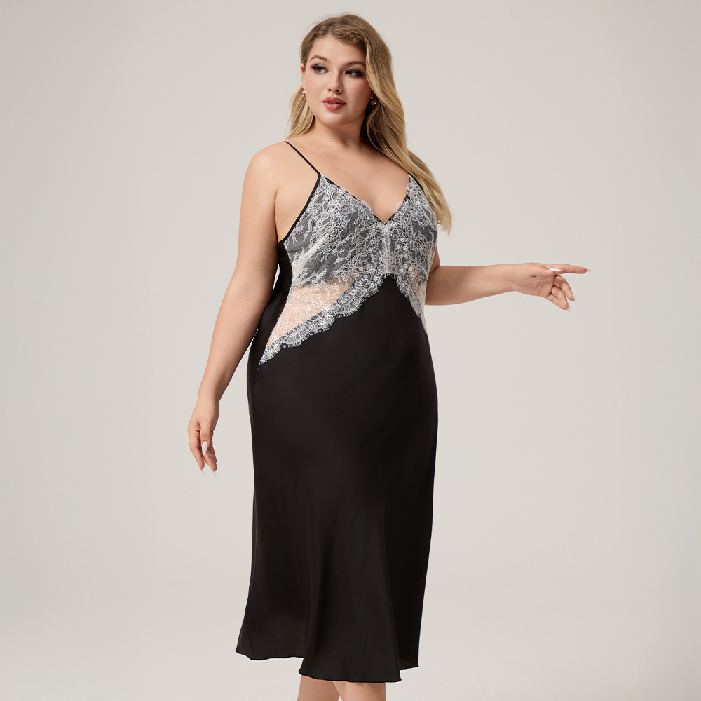 Yaoting transfronterizo de tamaño grande satén cabina pijama mujer verano damas encaje sexy pijama ropa larga para el hogar CQ3816