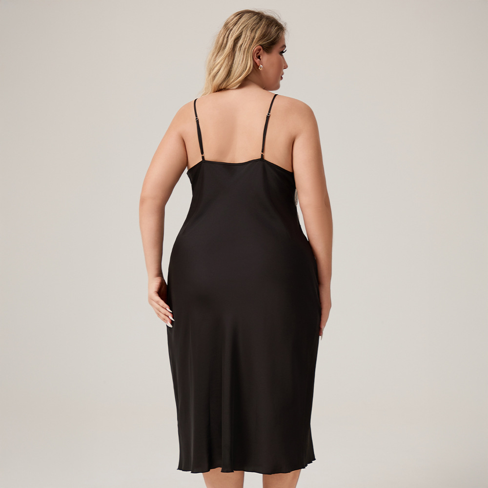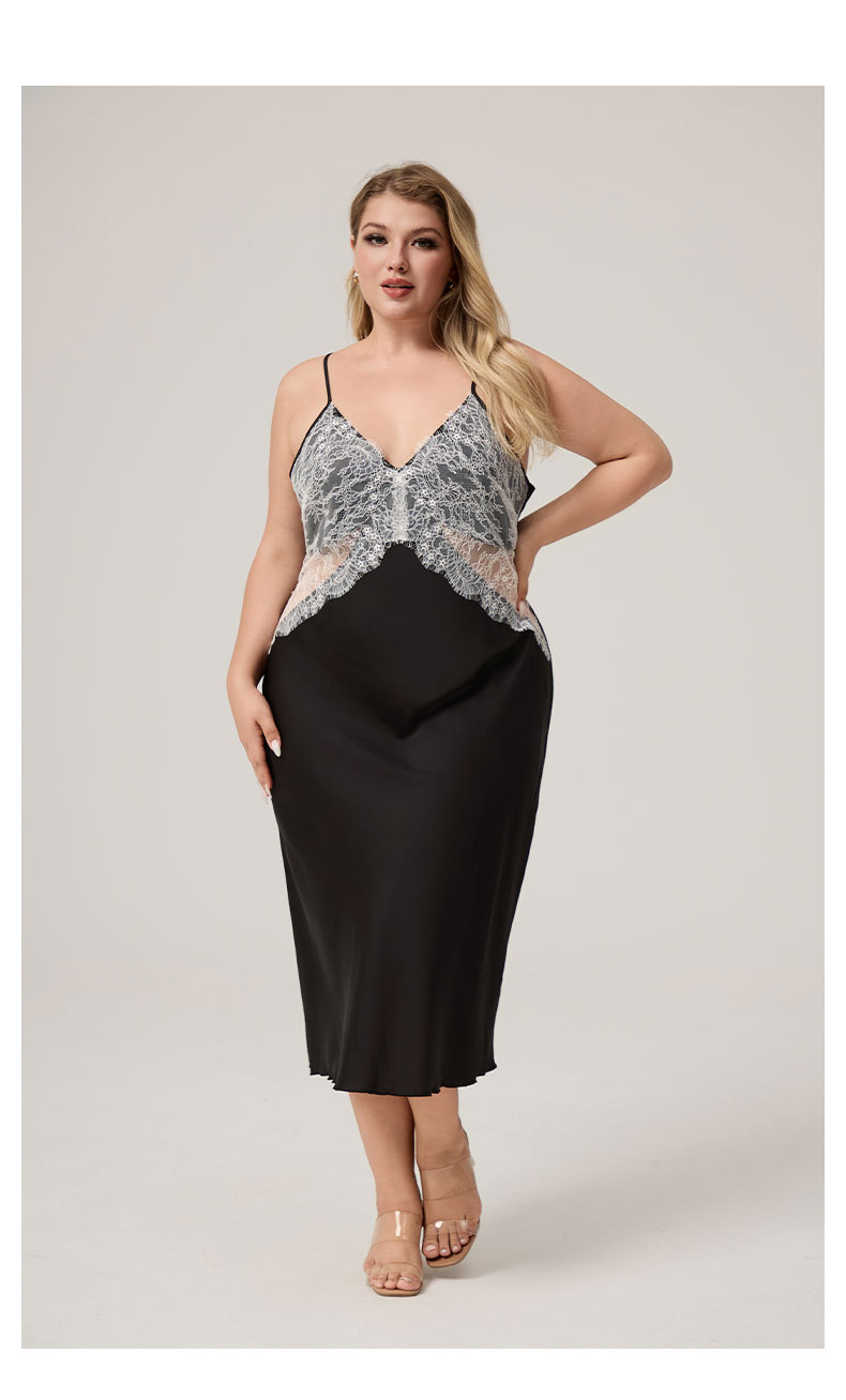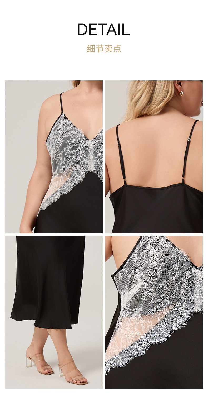 Yaoting transfronterizo de tamaño grande satén cabina pijama mujer verano damas encaje sexy pijama ropa larga para el hogar CQ3816