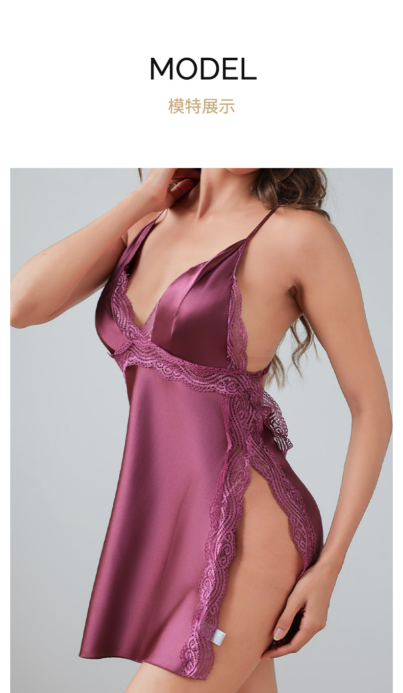 Nuevo pijama de comercio exterior transfronterizo de Europa y Estados Unidos. Sexy encaje empalmado lateral abierto de espalda abierta falda de cabina SH8181