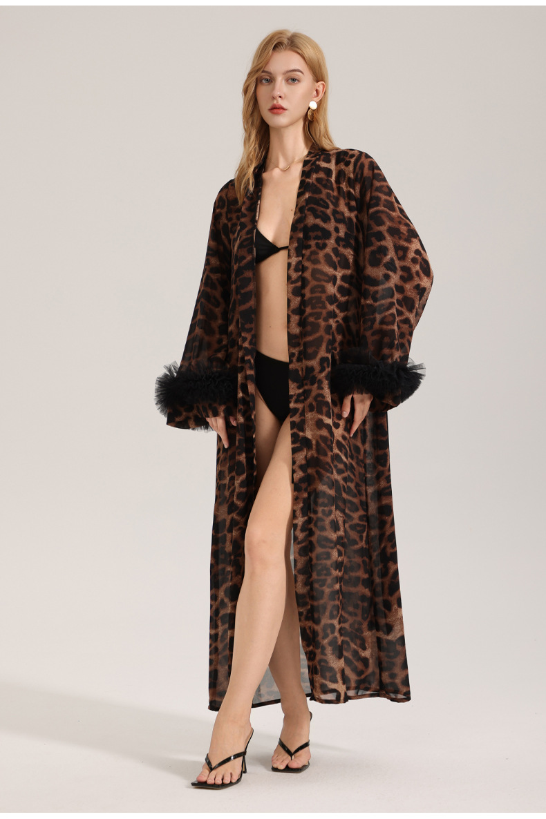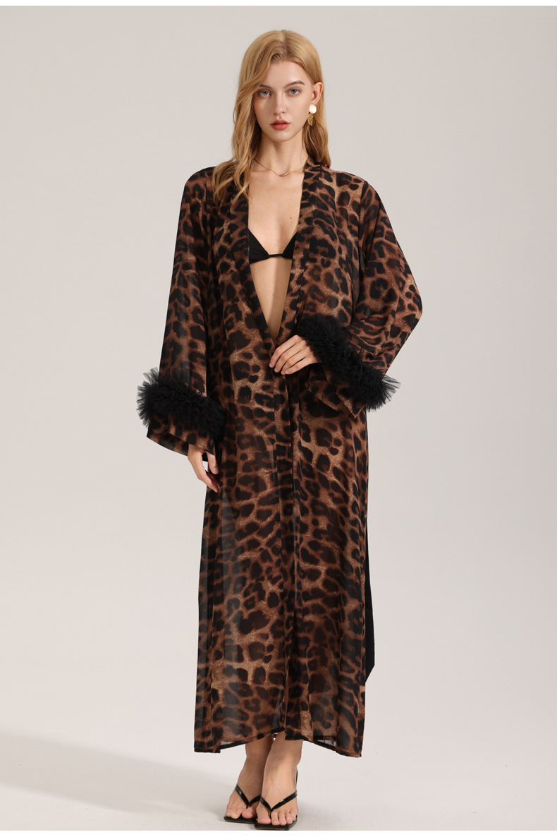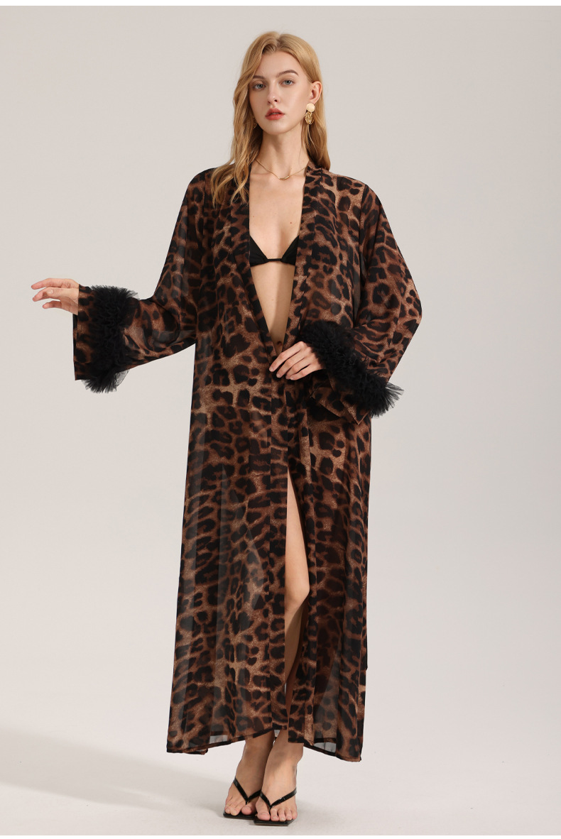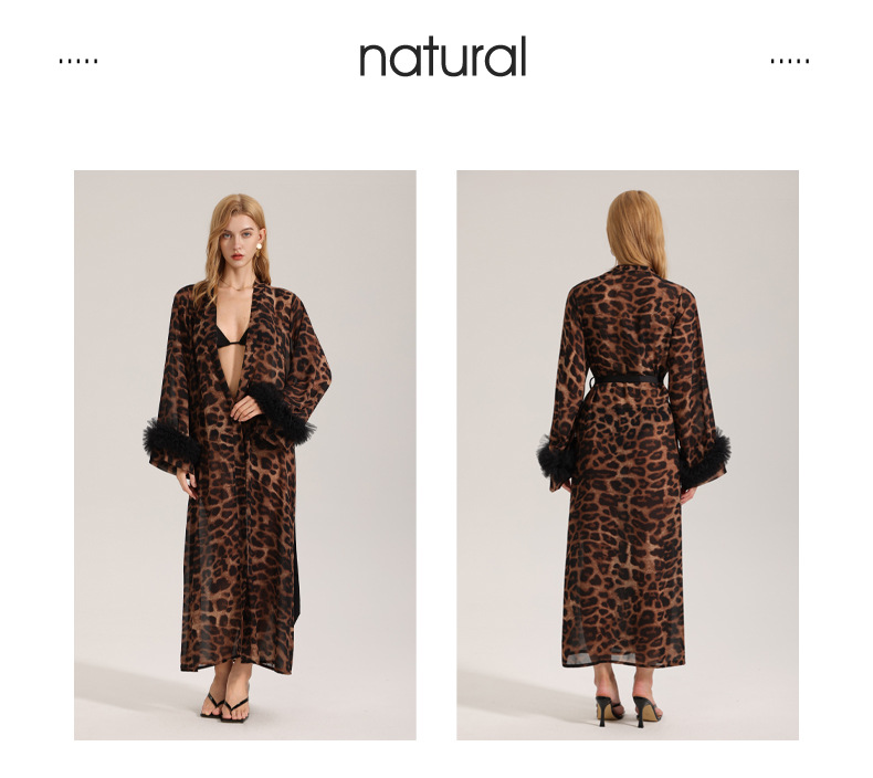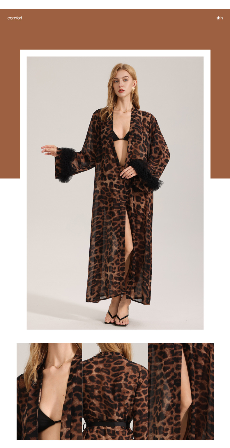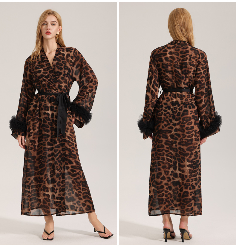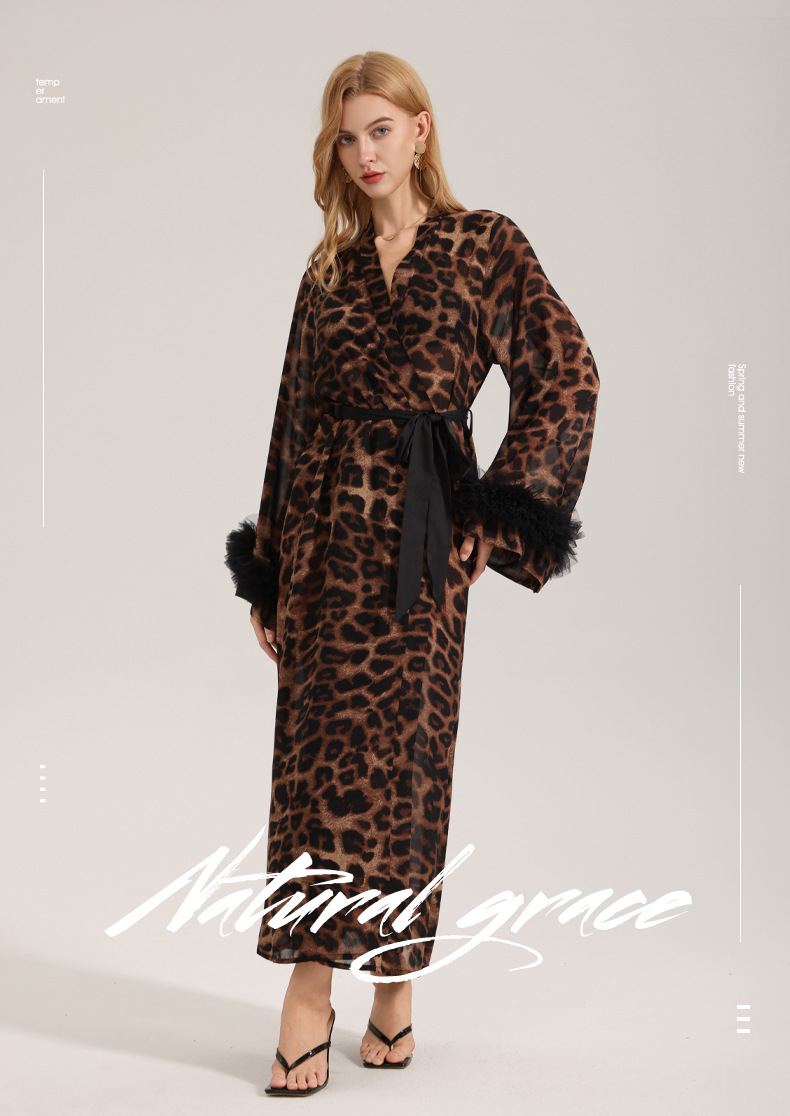 Zoshang nuevo pijama sexy mujer verano y otoño manga larga leopardo túnica de la mañana hilo de perla ropa de casa túnica WP3587