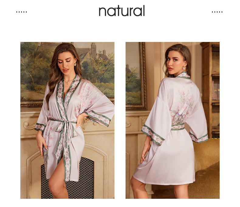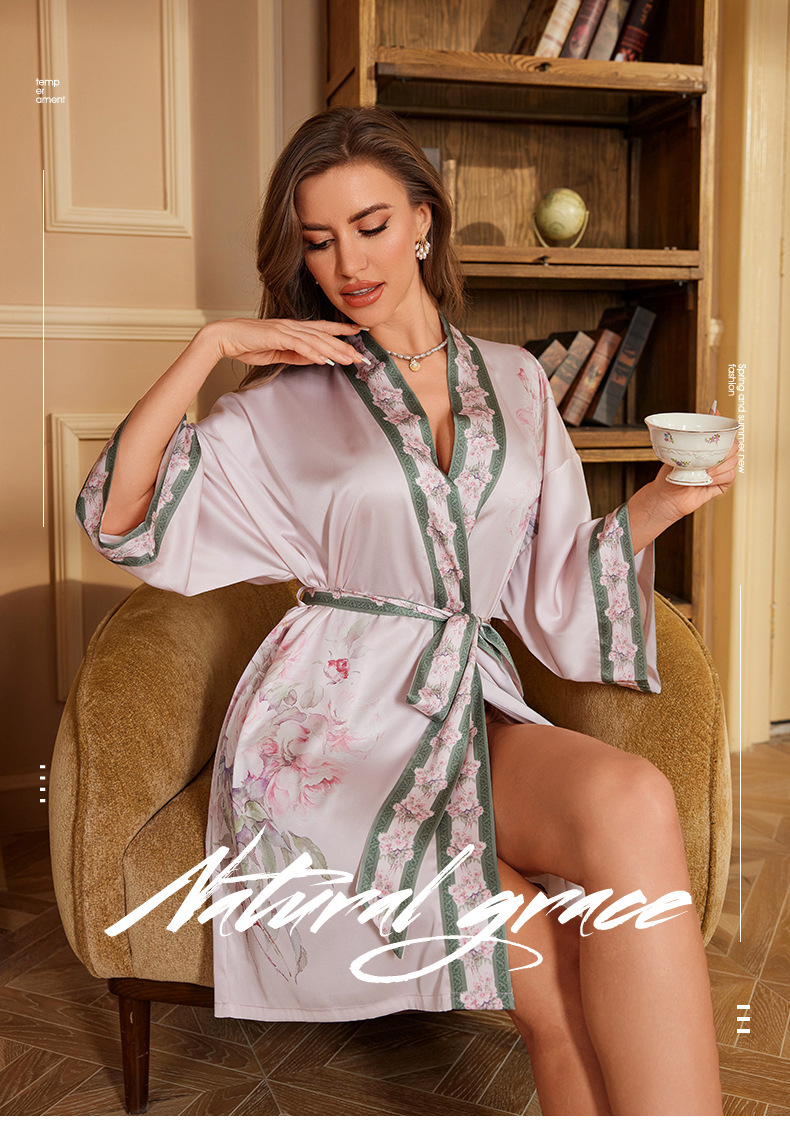 Yaoting verano nuevo estilo nuevo camisón chino noble y elegante color satén fresco albornoz cárdigan WP3371