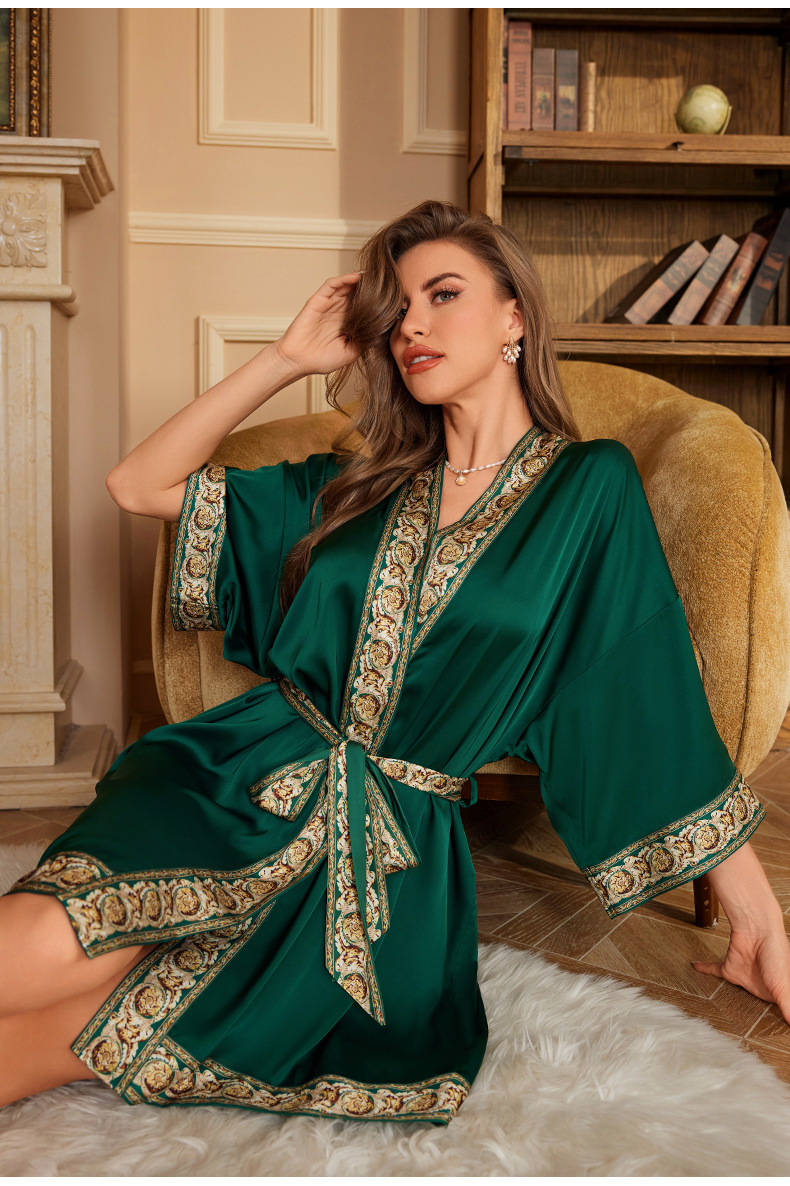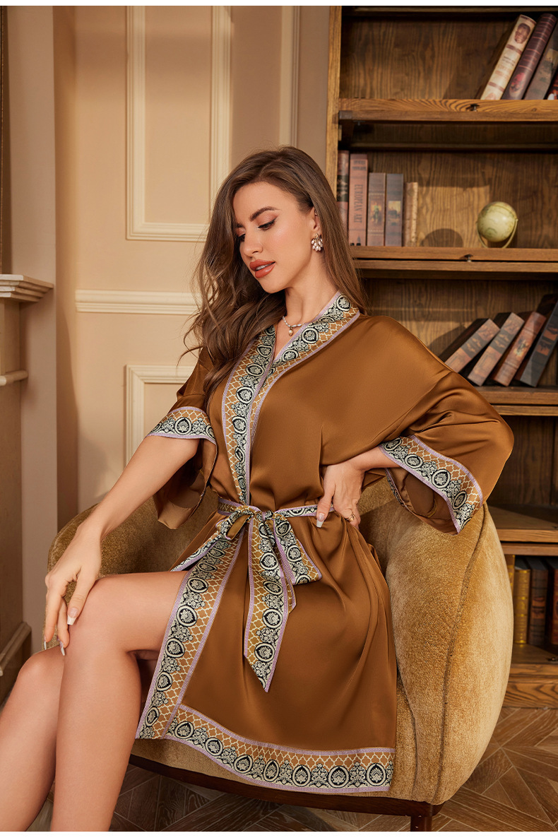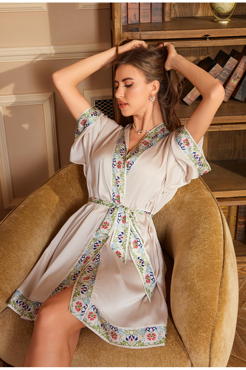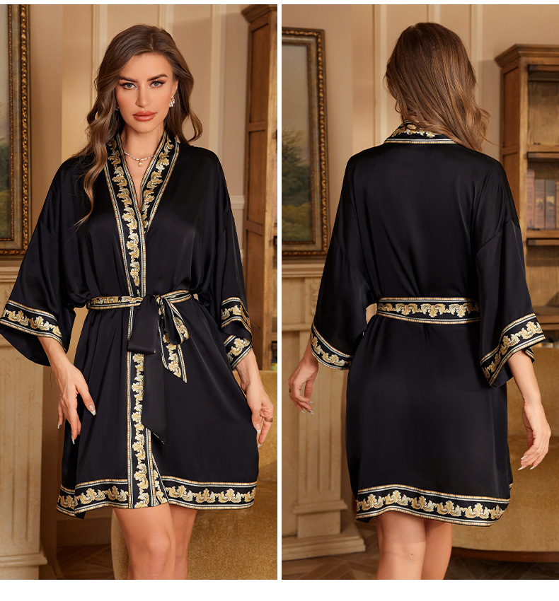 Yaoting verano nuevo estilo elegante retro nuevo estilo camisón chino mujer lujo noble casa bata de baño de satén 3370