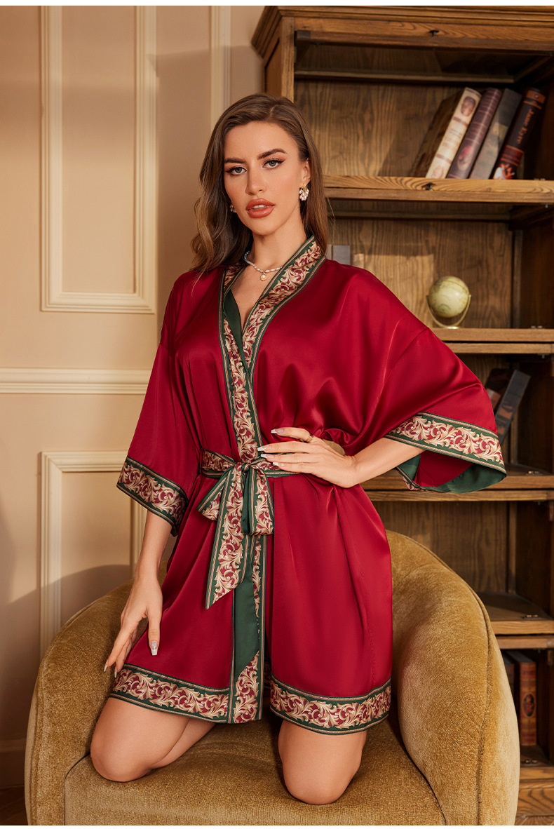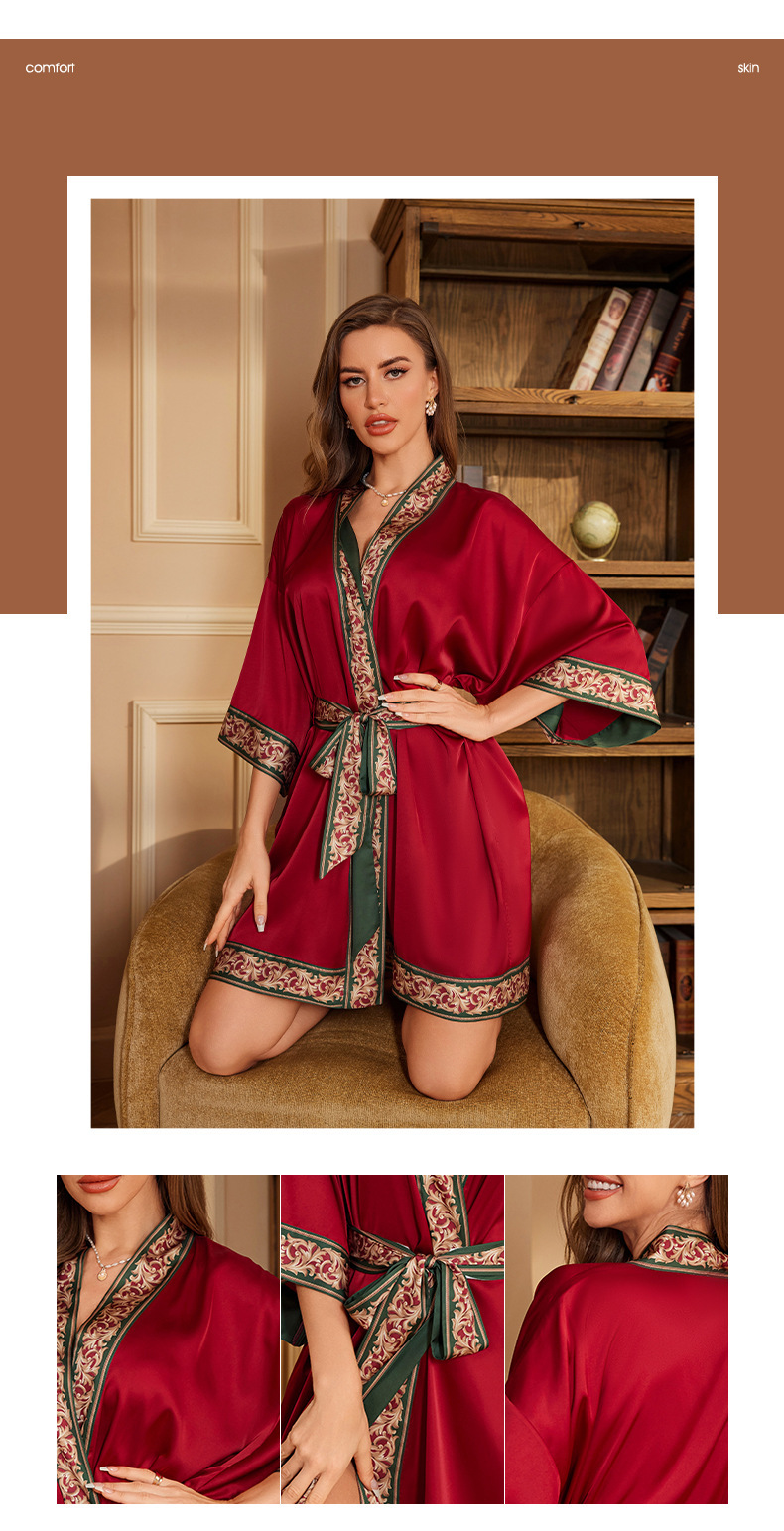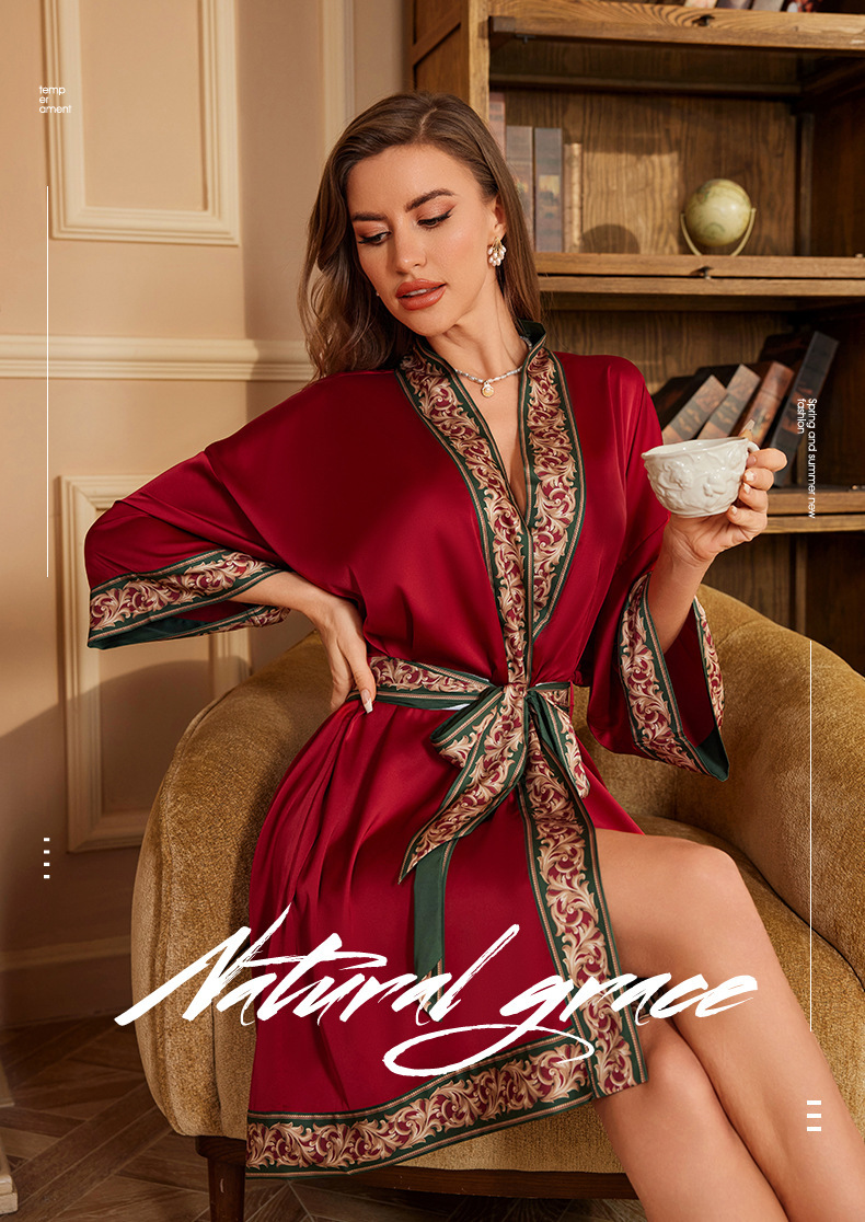 Yaoting verano nuevo estilo elegante retro nuevo estilo camisón chino mujer lujo noble casa bata de baño de satén 3370
