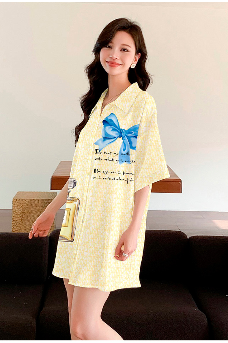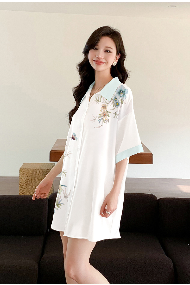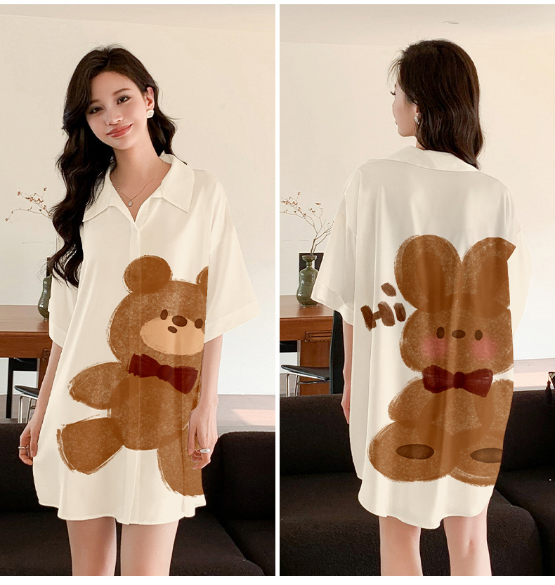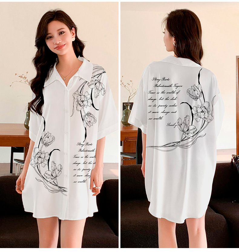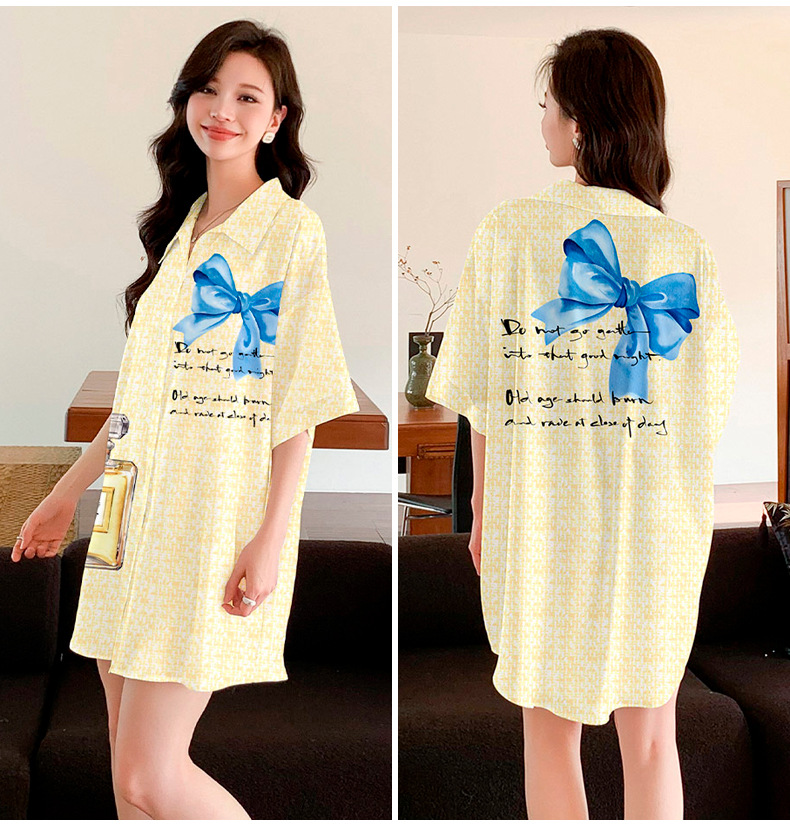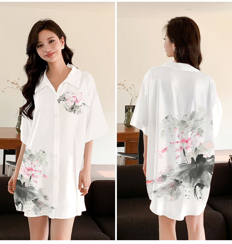 Yaoting nuevo pijama de mujer satin Chiffon Cardigan vestido de pijama de manga corta de seda de hielo vestido vestido de camisa SQ3525 ropa para el hogar