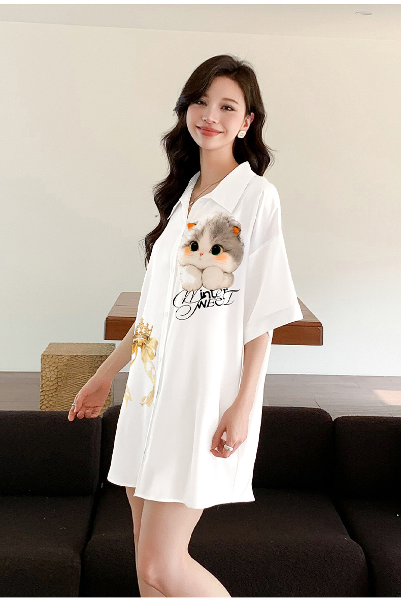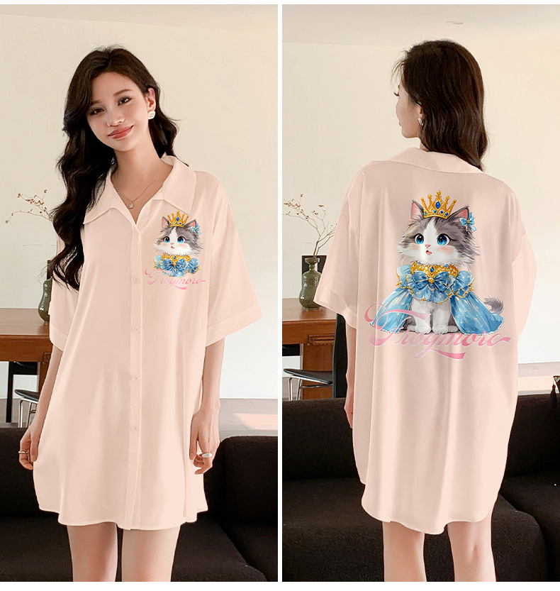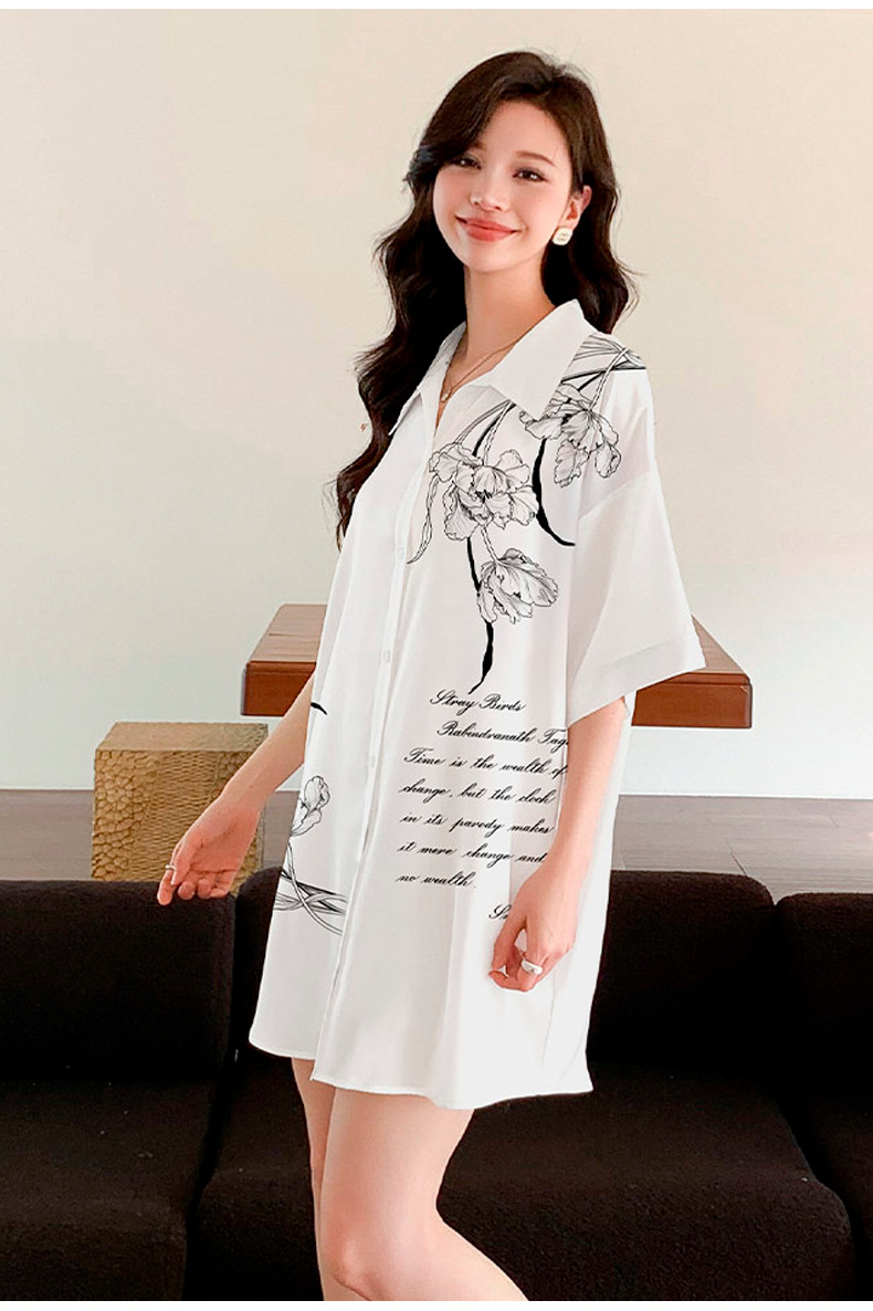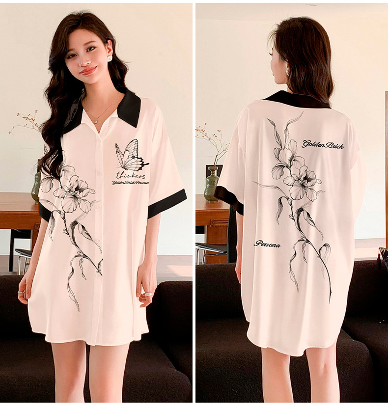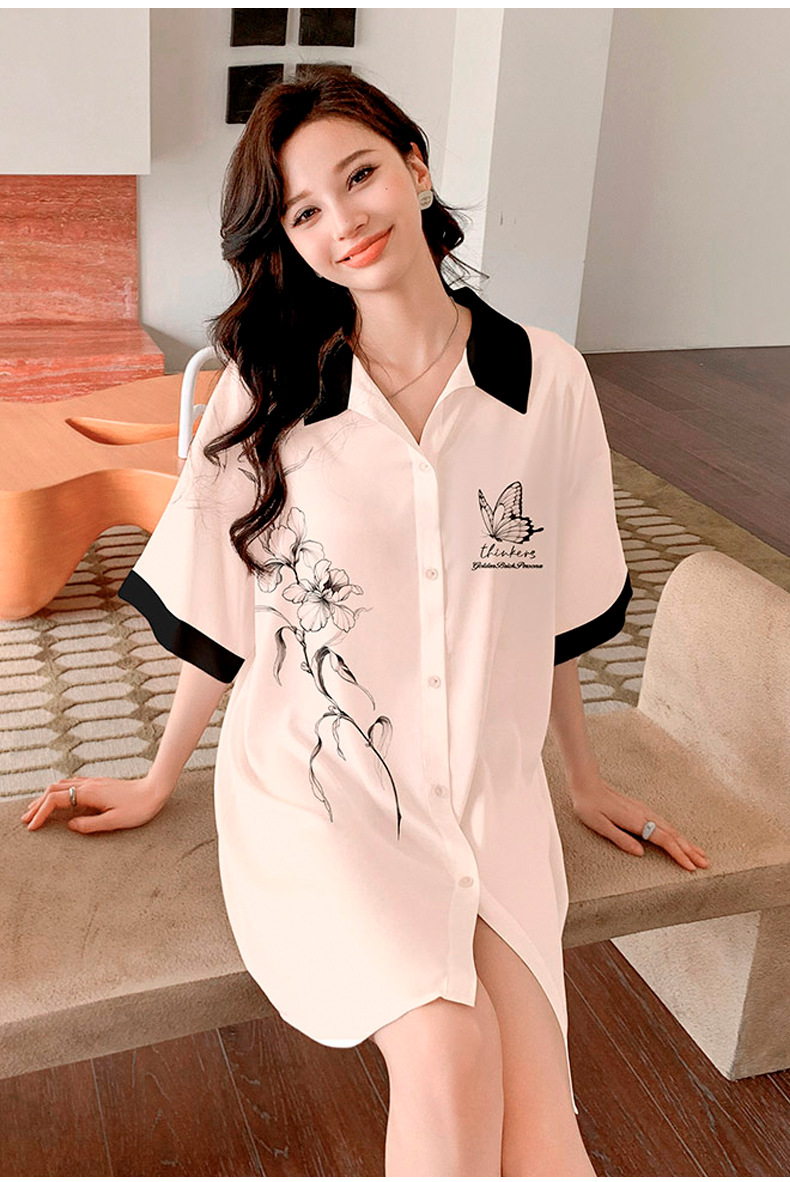 Yaoting nuevo pijama de mujer satin Chiffon Cardigan vestido de pijama de manga corta de seda de hielo vestido vestido de camisa SQ3525 ropa para el hogar