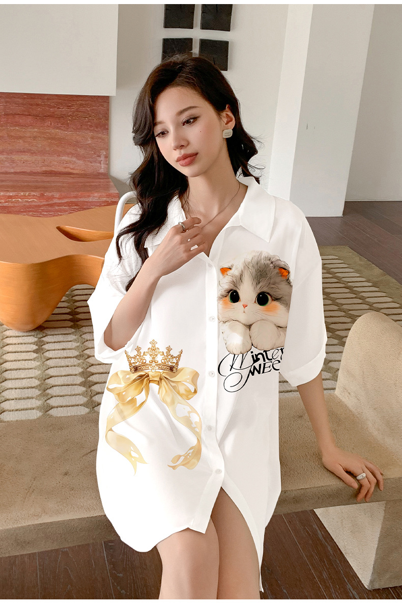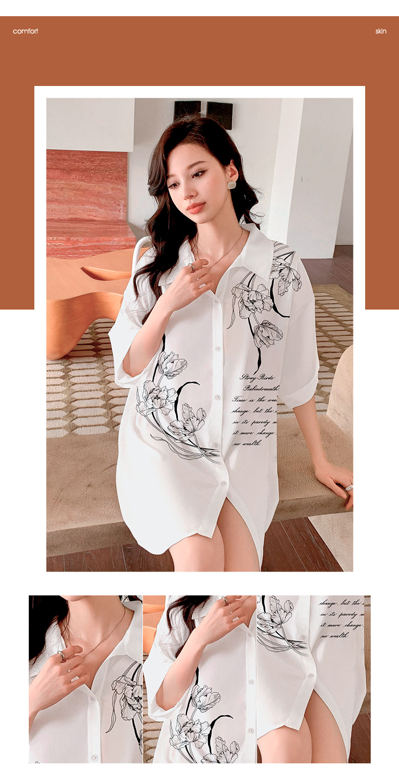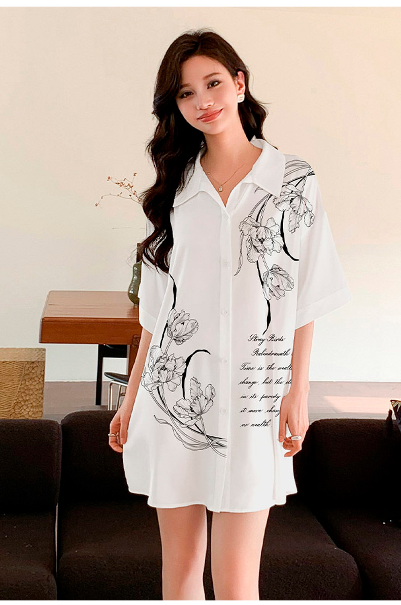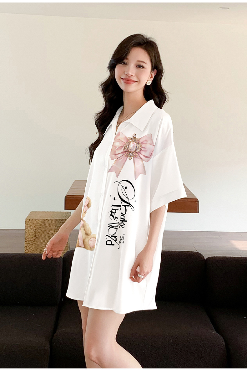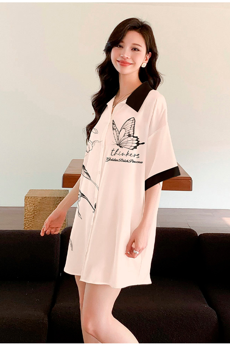 Yaoting nuevo pijama de mujer satin Chiffon Cardigan vestido de pijama de manga corta de seda de hielo vestido vestido de camisa SQ3525 ropa para el hogar