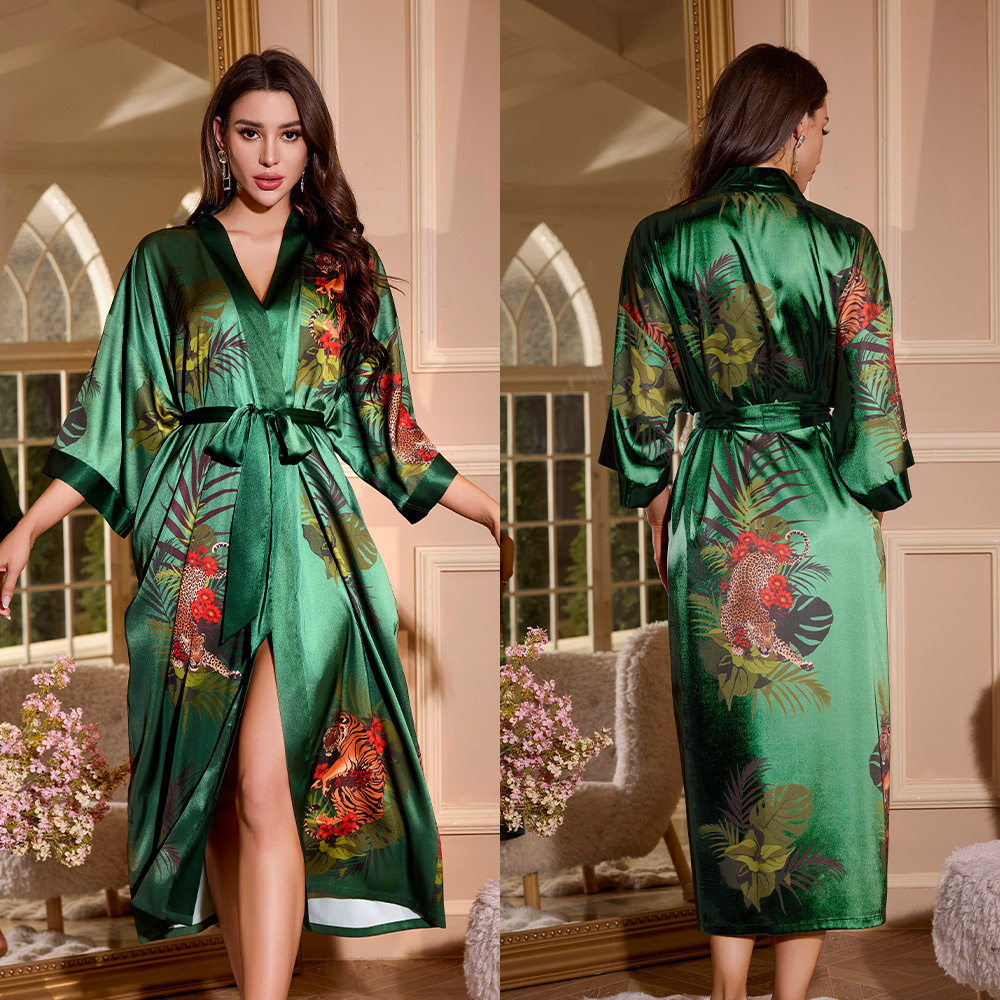 Verano lujo ligero helado seda pijama pijama mujer tamaño grande transfronterizo frío bata de baño ropa de hogar suelta WP3429