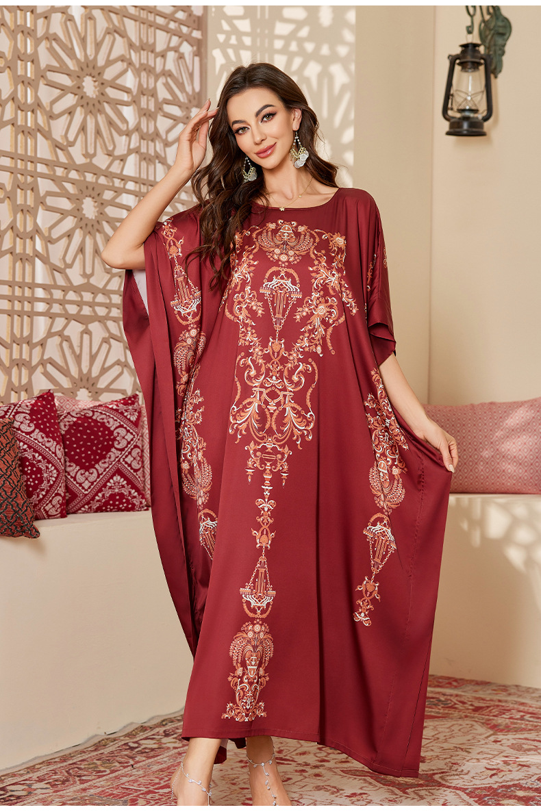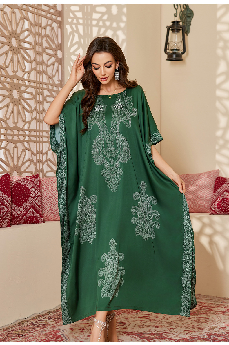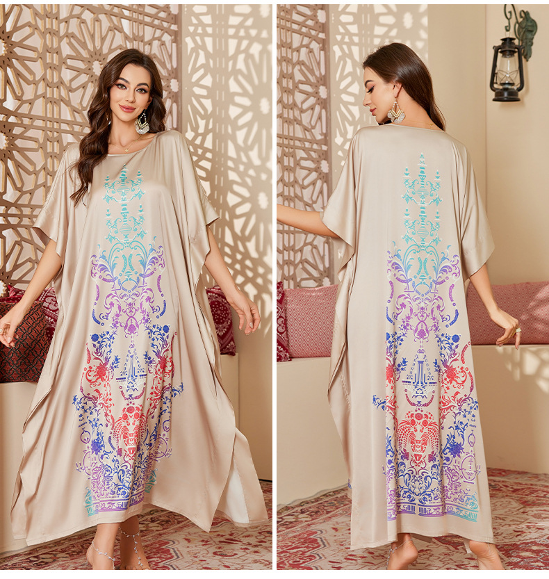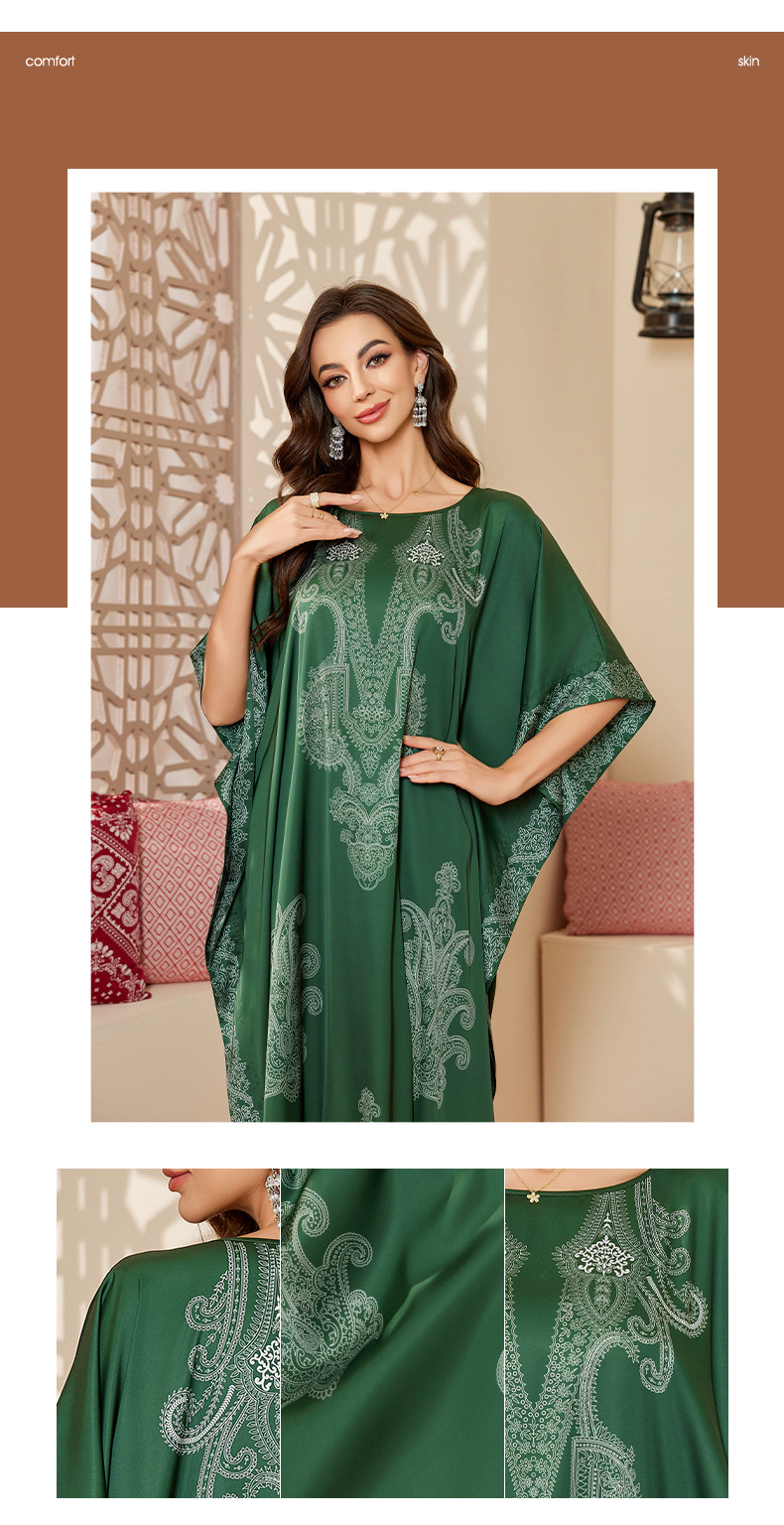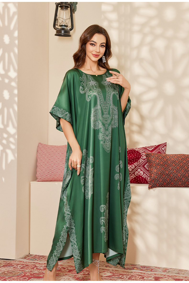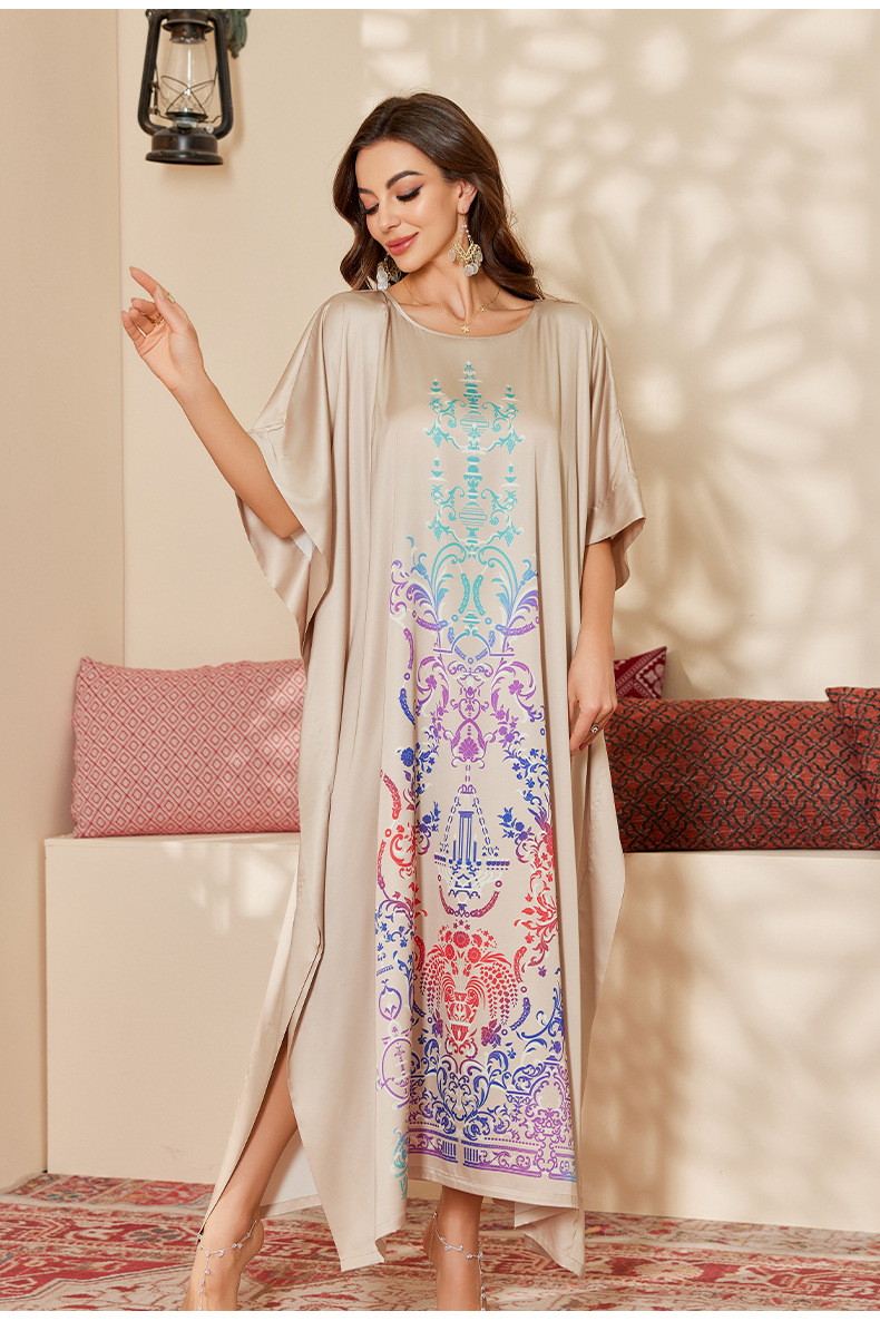 Nuevo pijama de satén de tamaño grande para mujeres de verano medio-oriental suelta gorda camiseta impresa suelta túnica DP3428