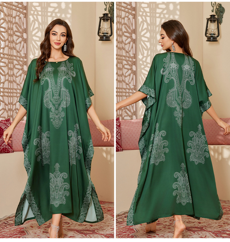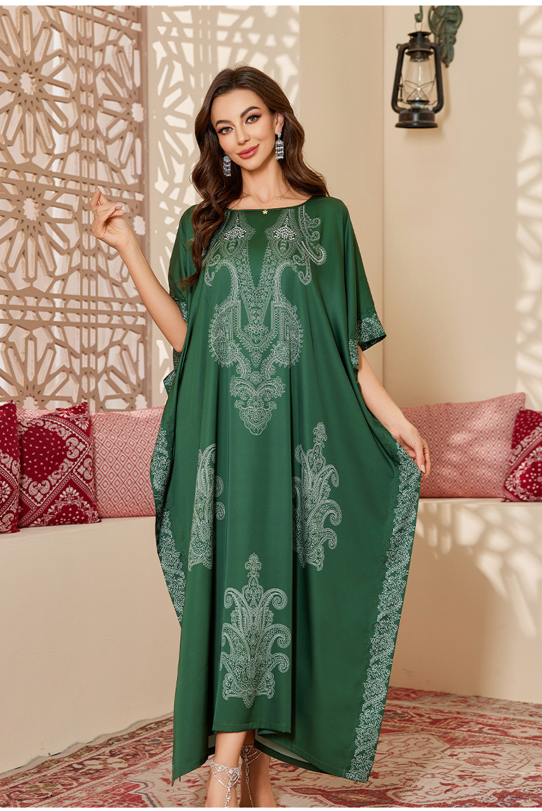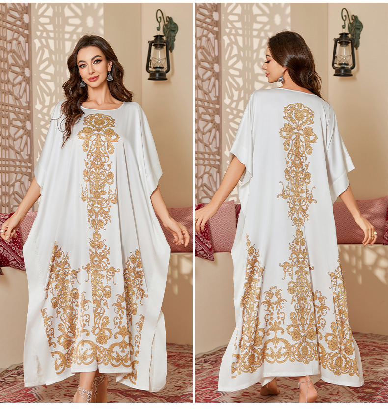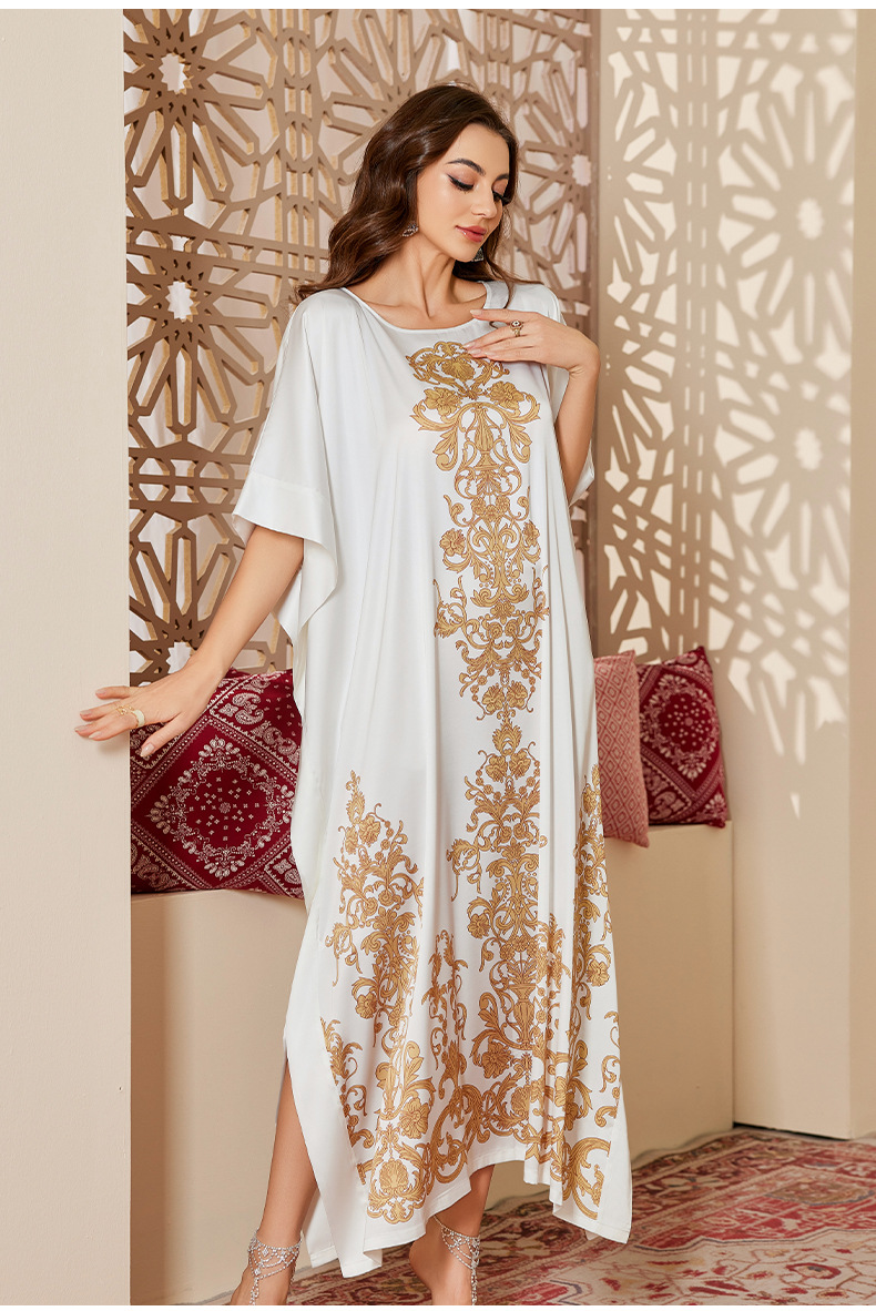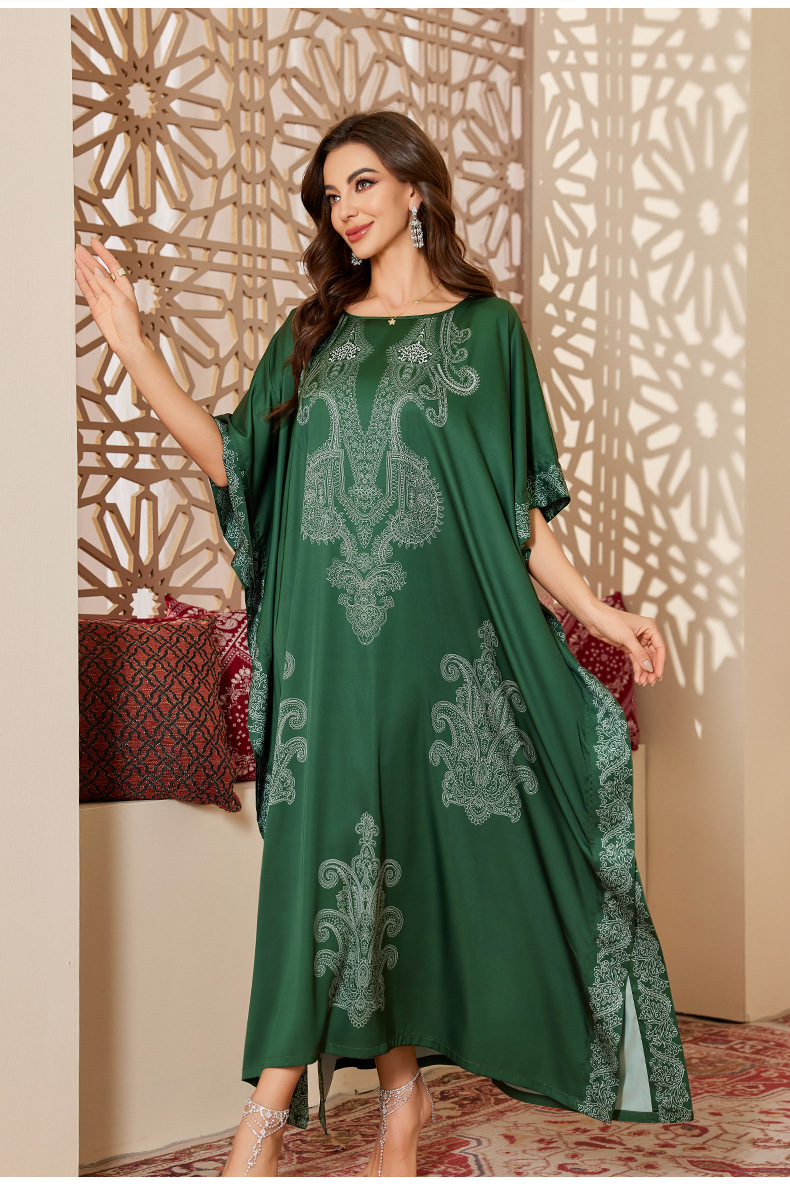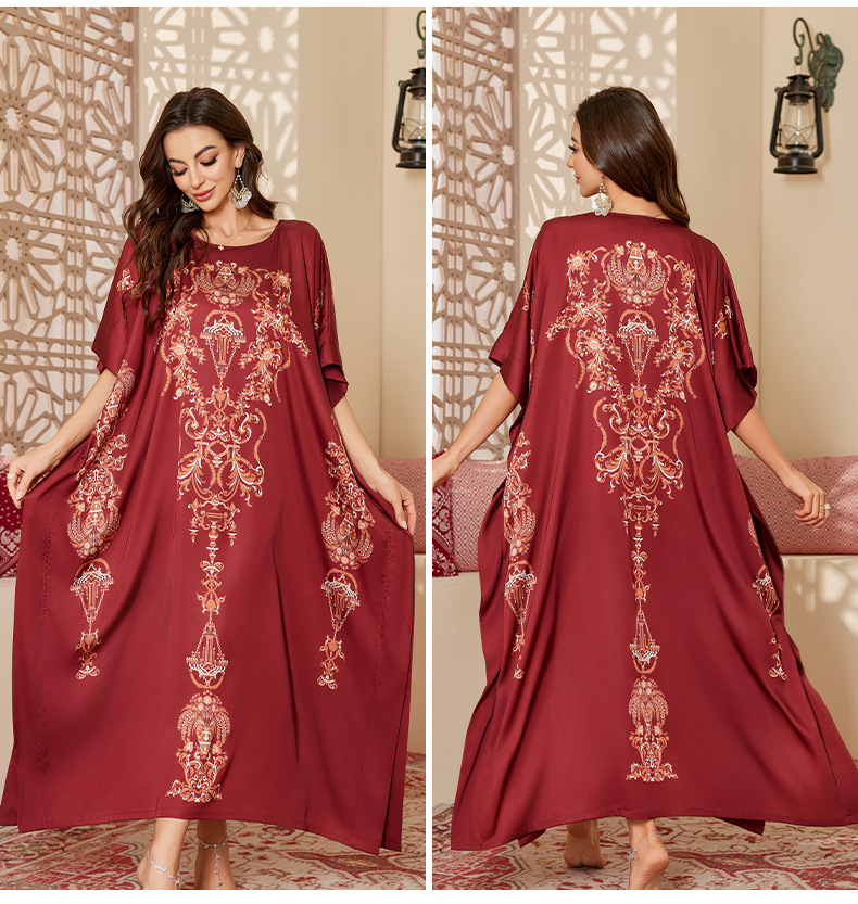 Nuevo pijama de satén de tamaño grande para mujeres de verano medio-oriental suelta gorda camiseta impresa suelta túnica DP3428