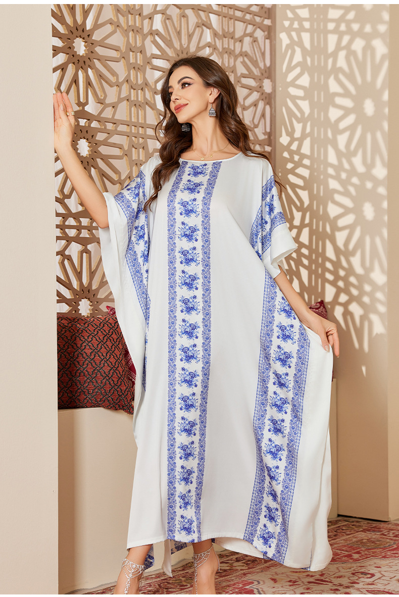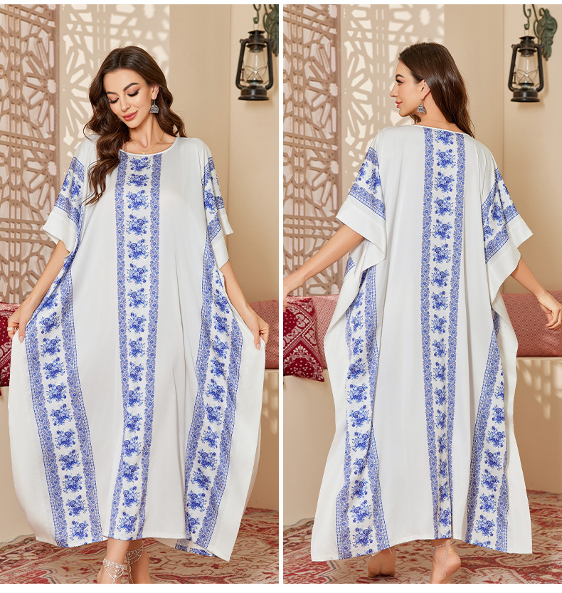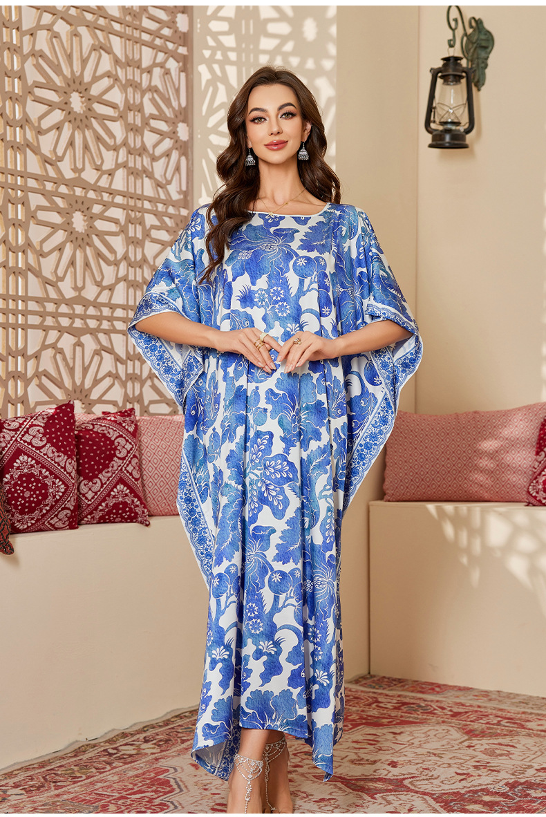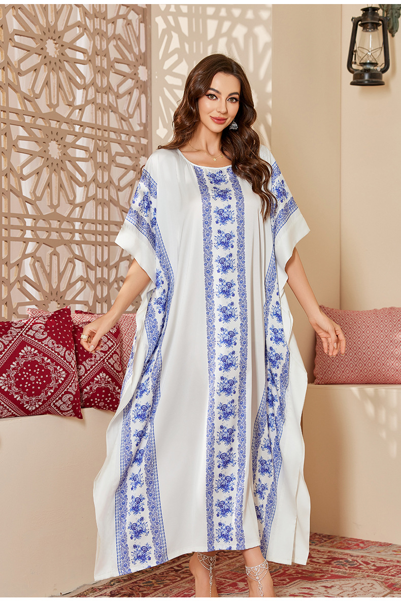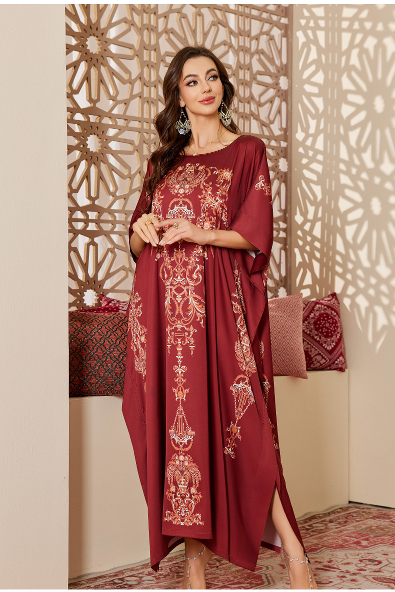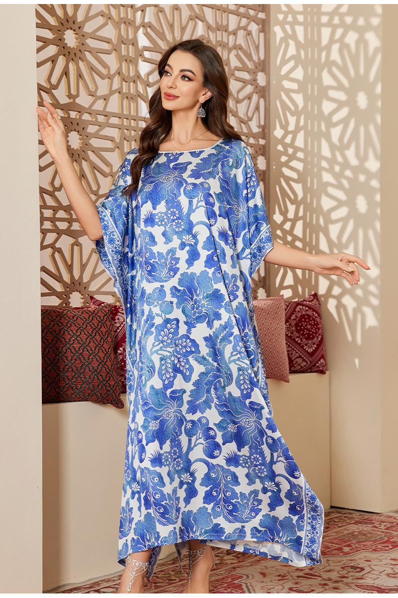 Nuevo pijama de satén de tamaño grande para mujeres de verano medio-oriental suelta gorda camiseta impresa suelta túnica DP3428