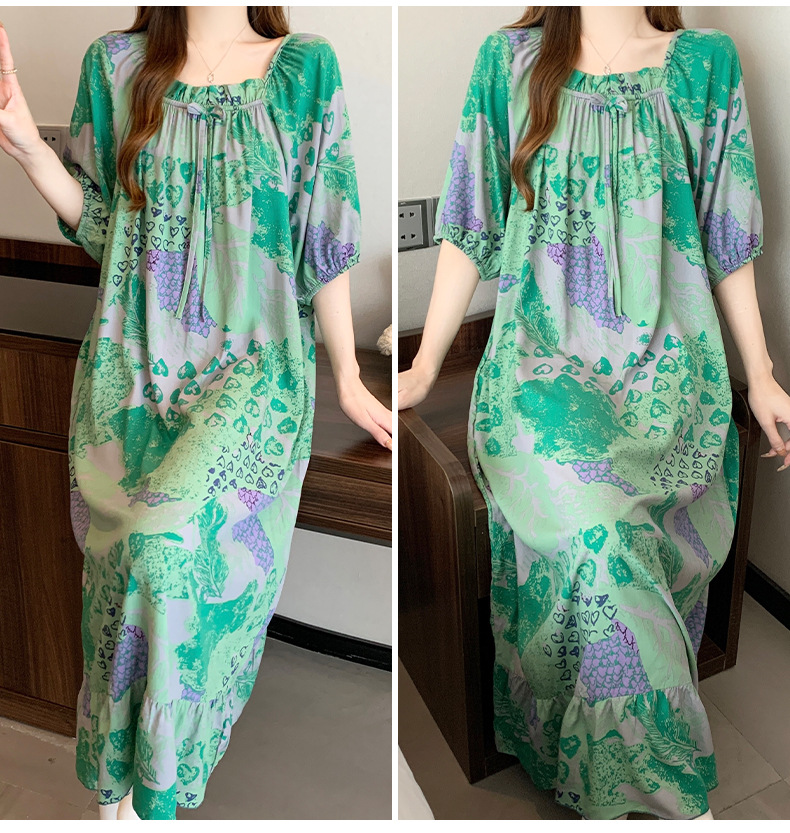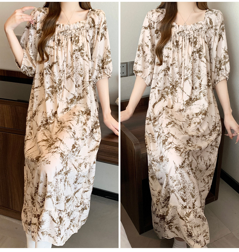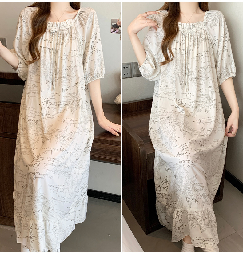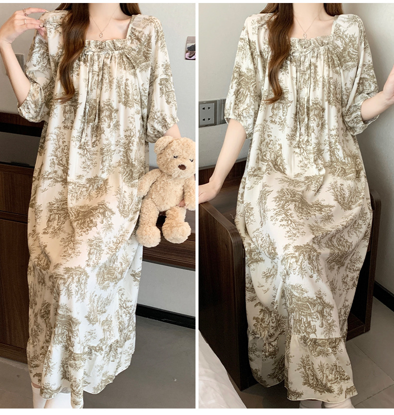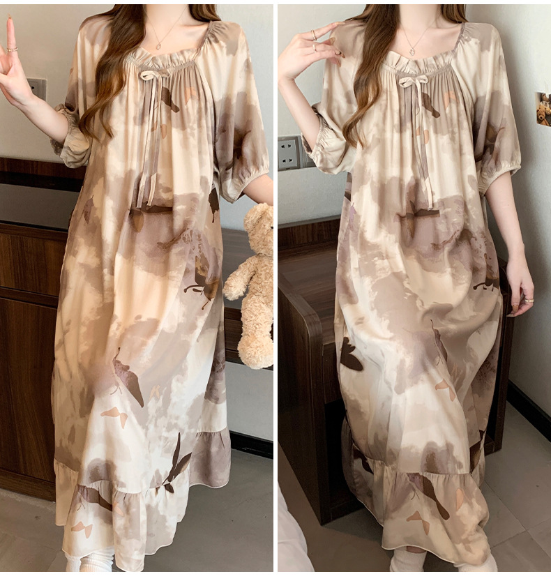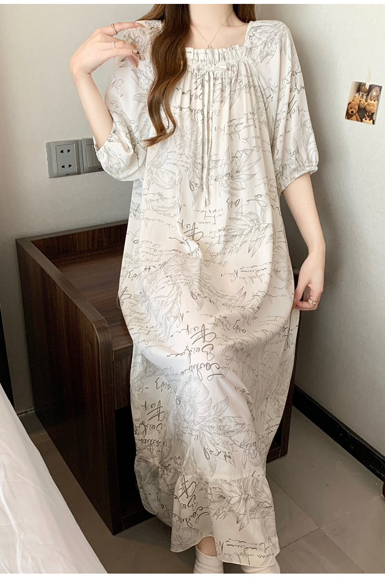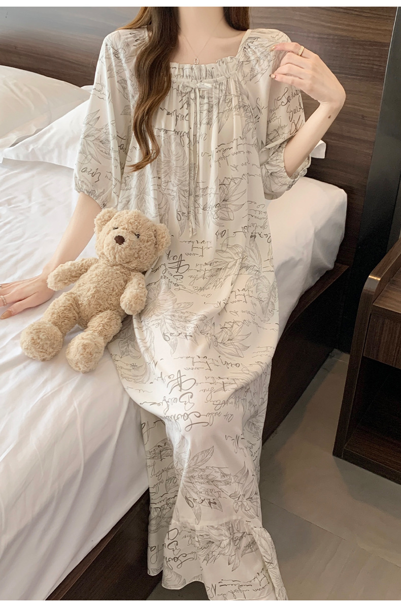 Yaoting pijamas de verano mujeres primavera y otoño encantador impresión suelta vestido larga larga larga ropa de hogar de mangas cortas HDF5291
