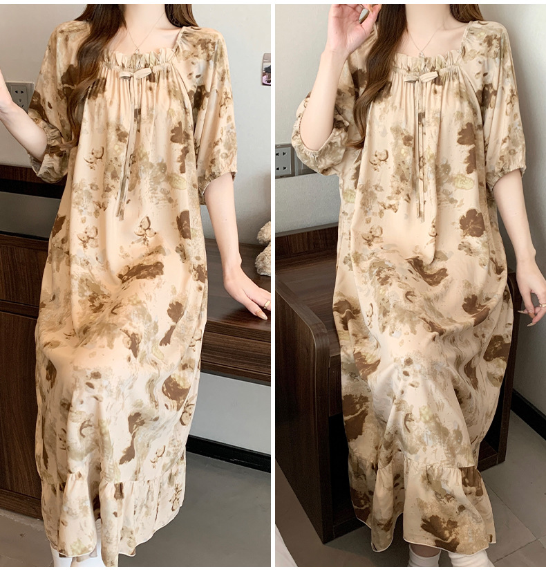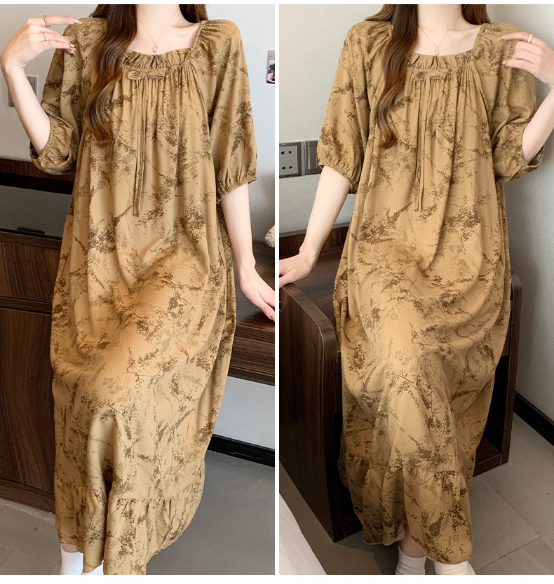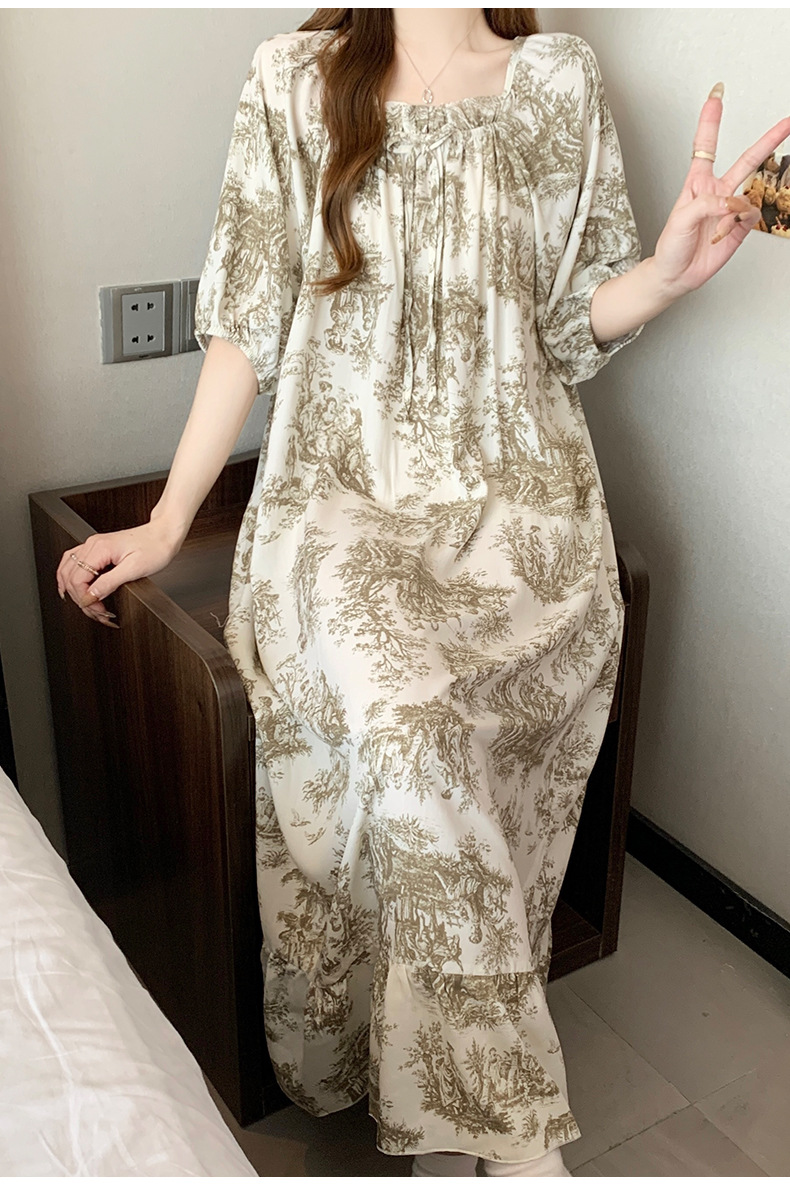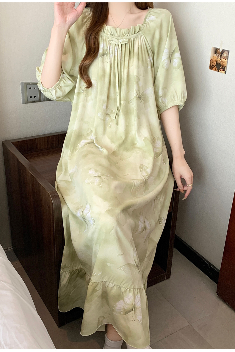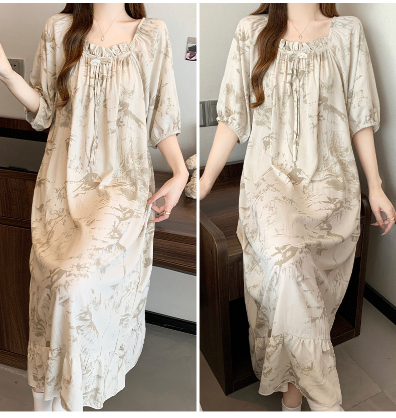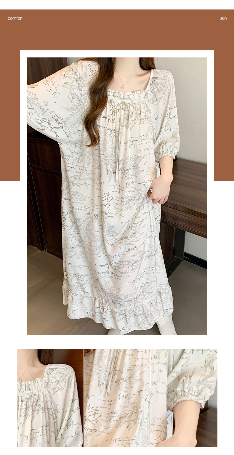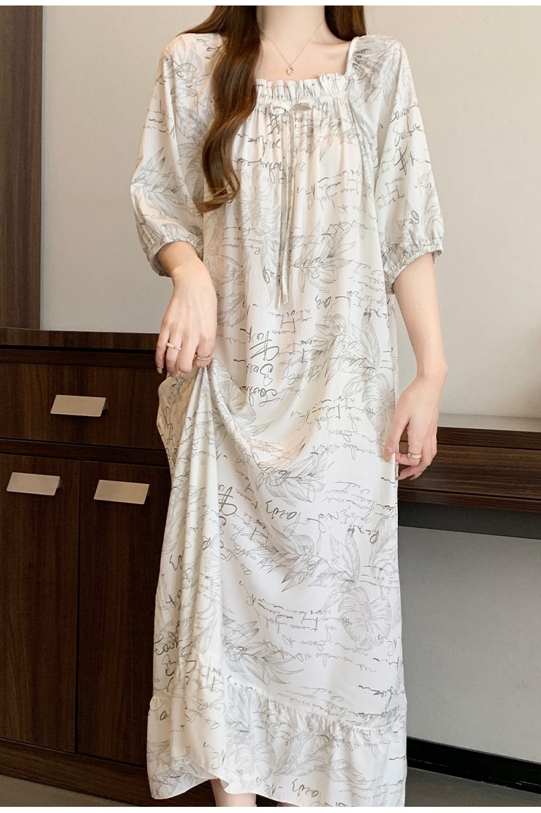 Yaoting pijamas de verano mujeres primavera y otoño encantador impresión suelta vestido larga larga larga ropa de hogar de mangas cortas HDF5291
