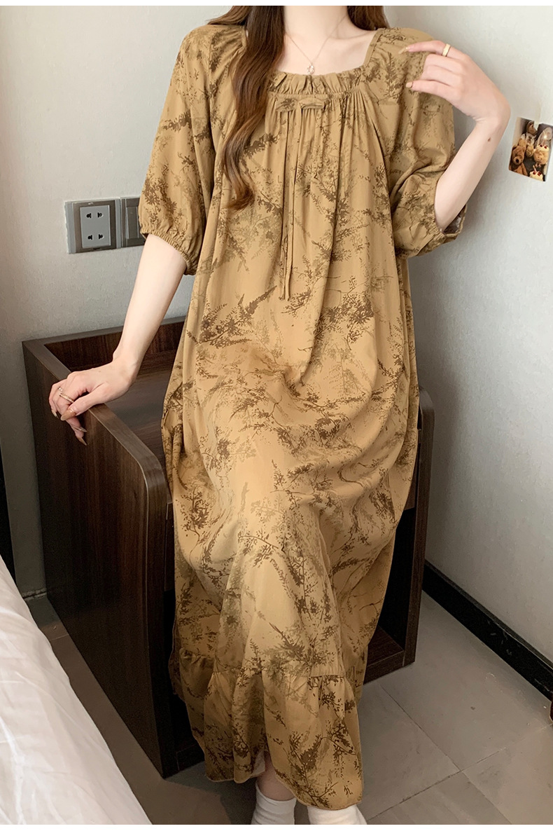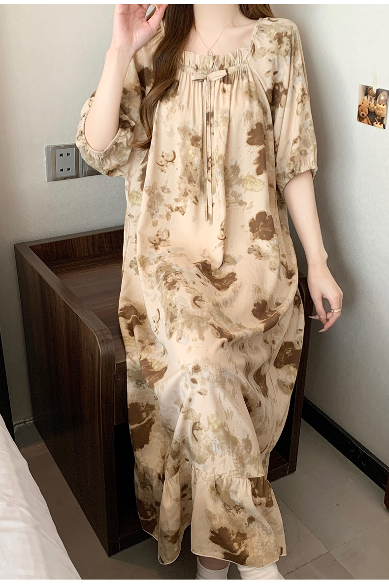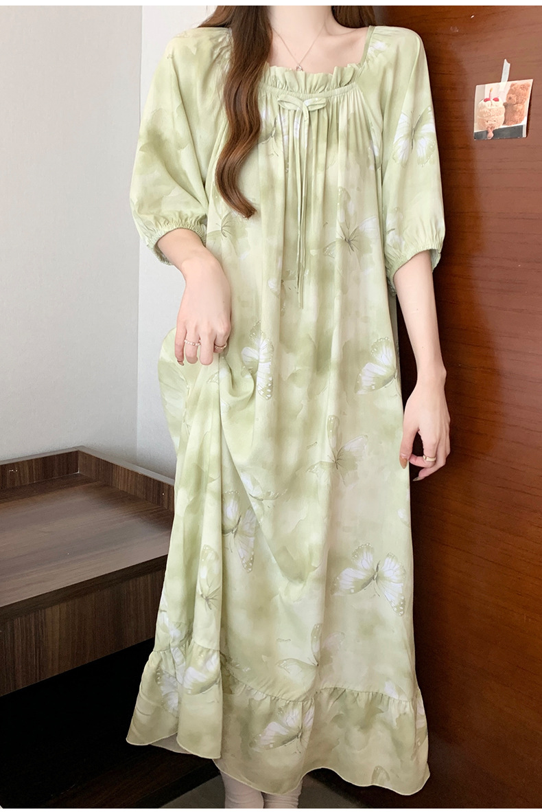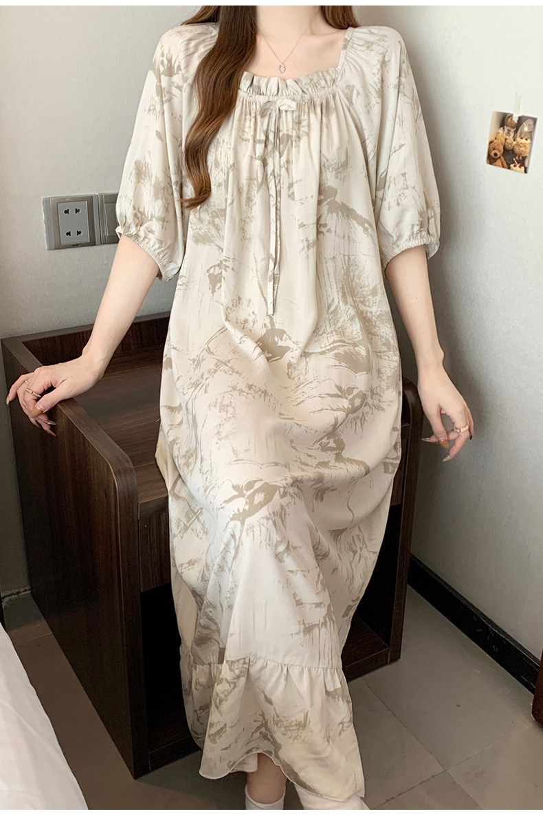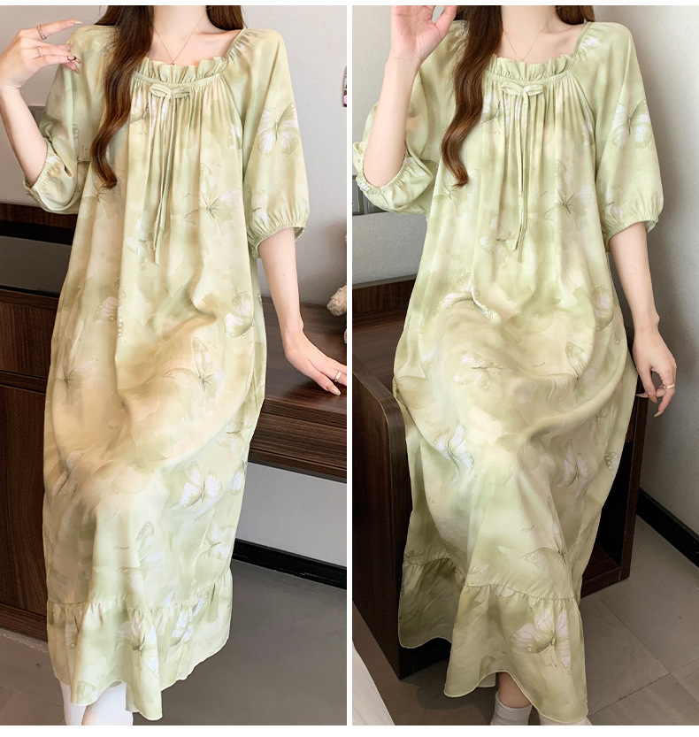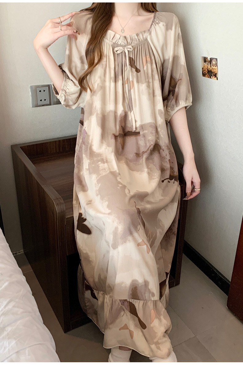 Yaoting pijamas de verano mujeres primavera y otoño encantador impresión suelta vestido larga larga larga ropa de hogar de mangas cortas HDF5291