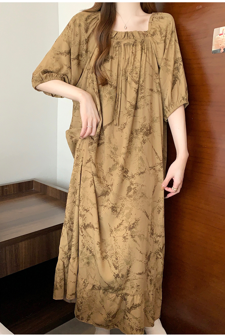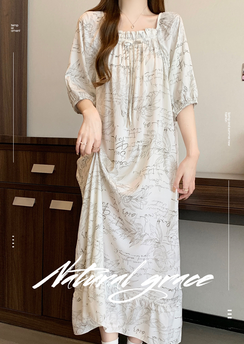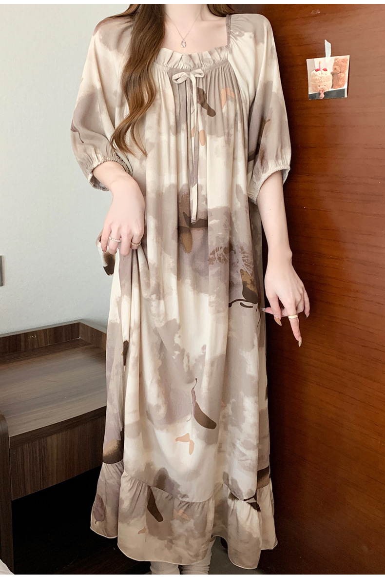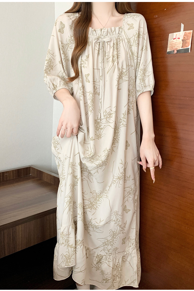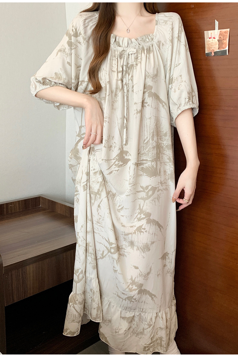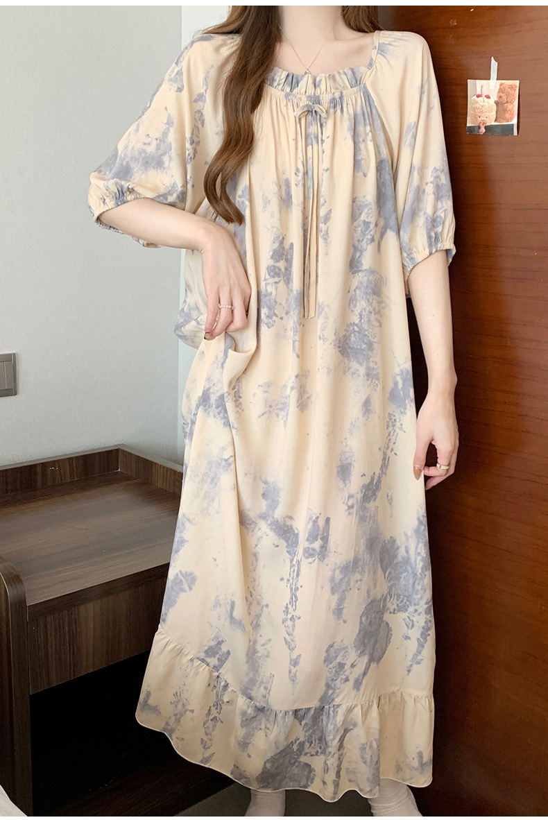 Yaoting pijamas de verano mujeres primavera y otoño encantador impresión suelta vestido larga larga larga ropa de hogar de mangas cortas HDF5291