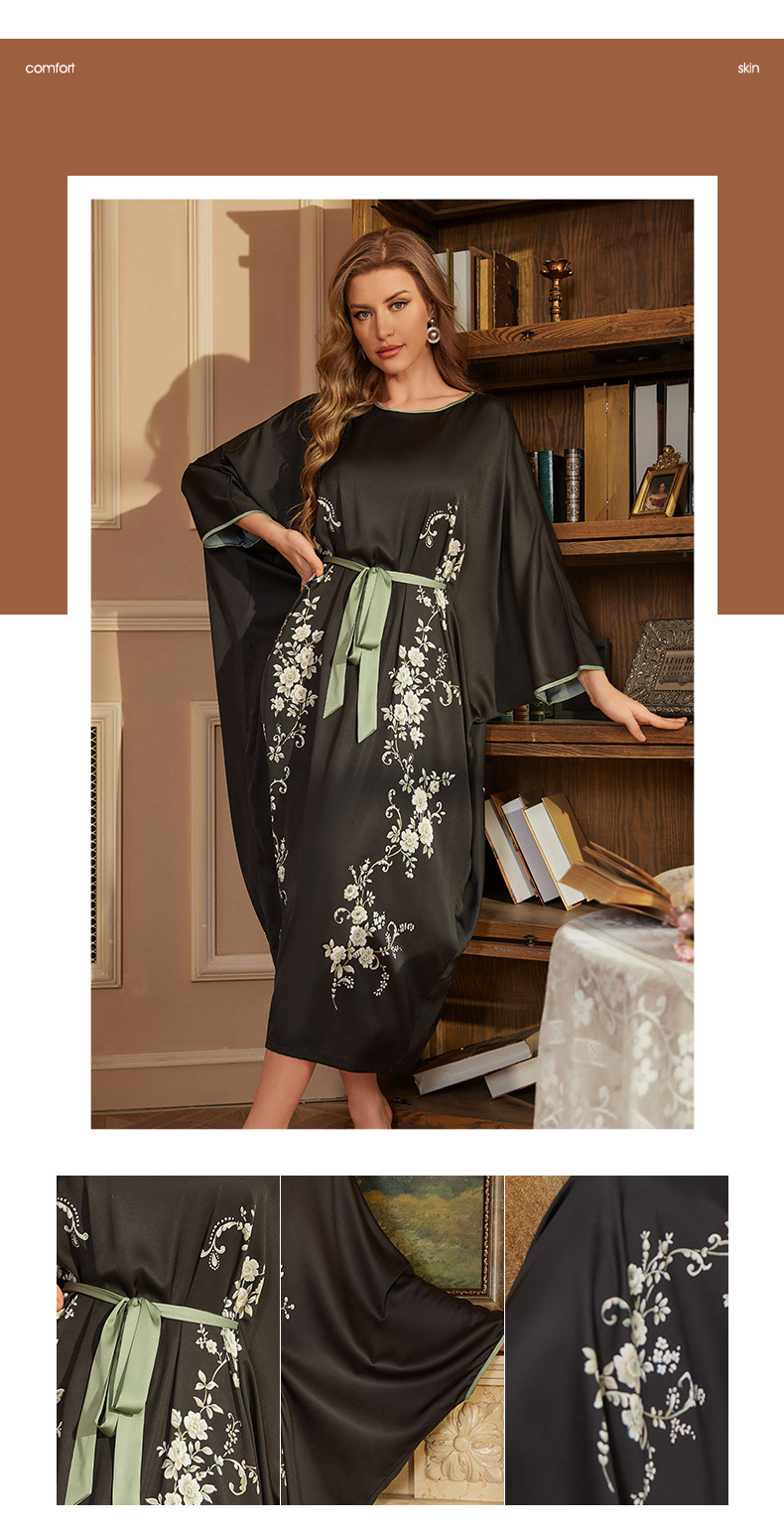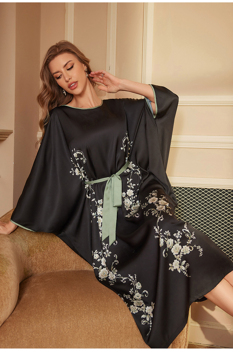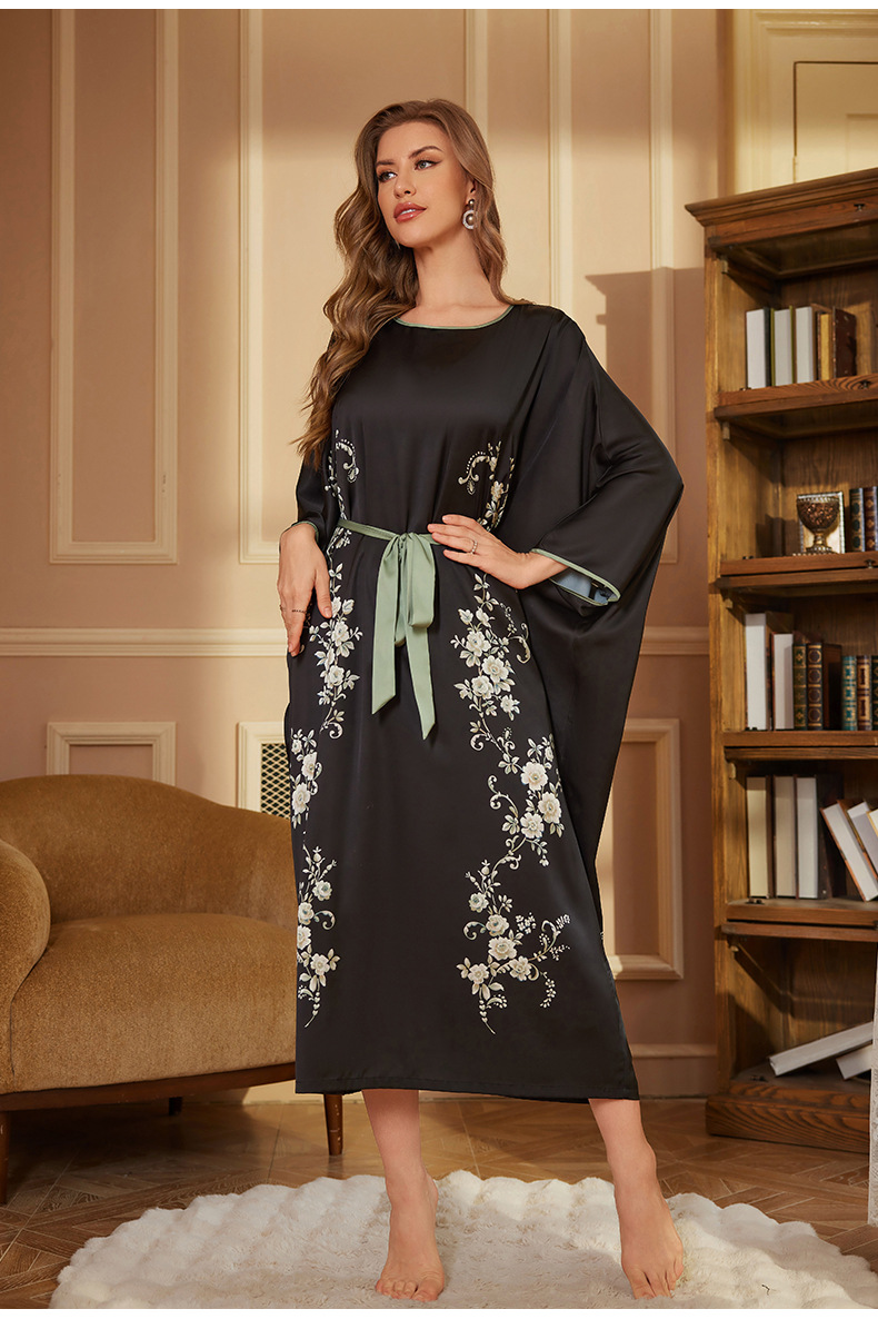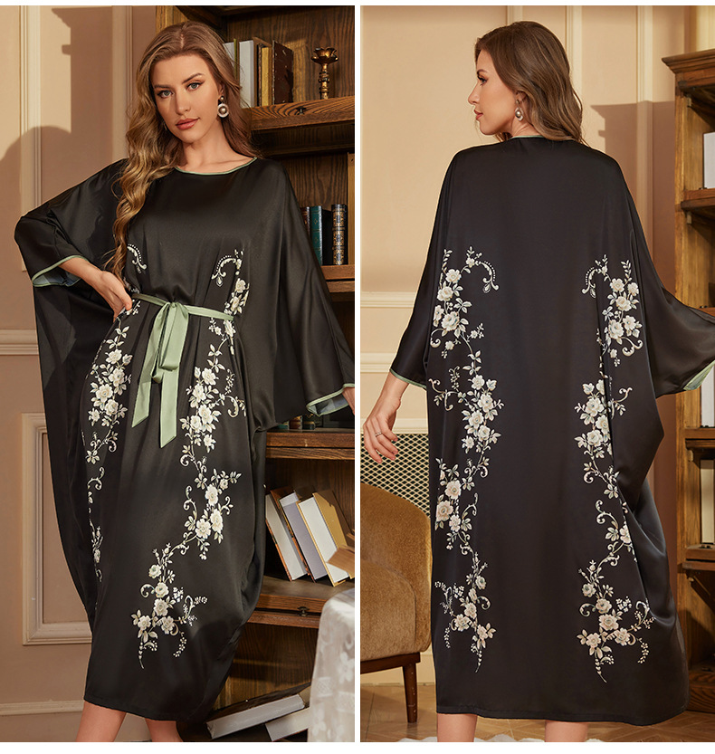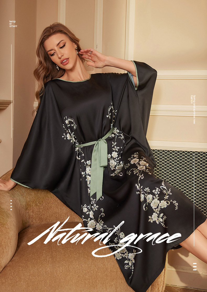 Amazon nuevo pijama largo de primavera y otoño vestido de mangas largas de mujer pijama de alta sensación de satén bañera DP3398