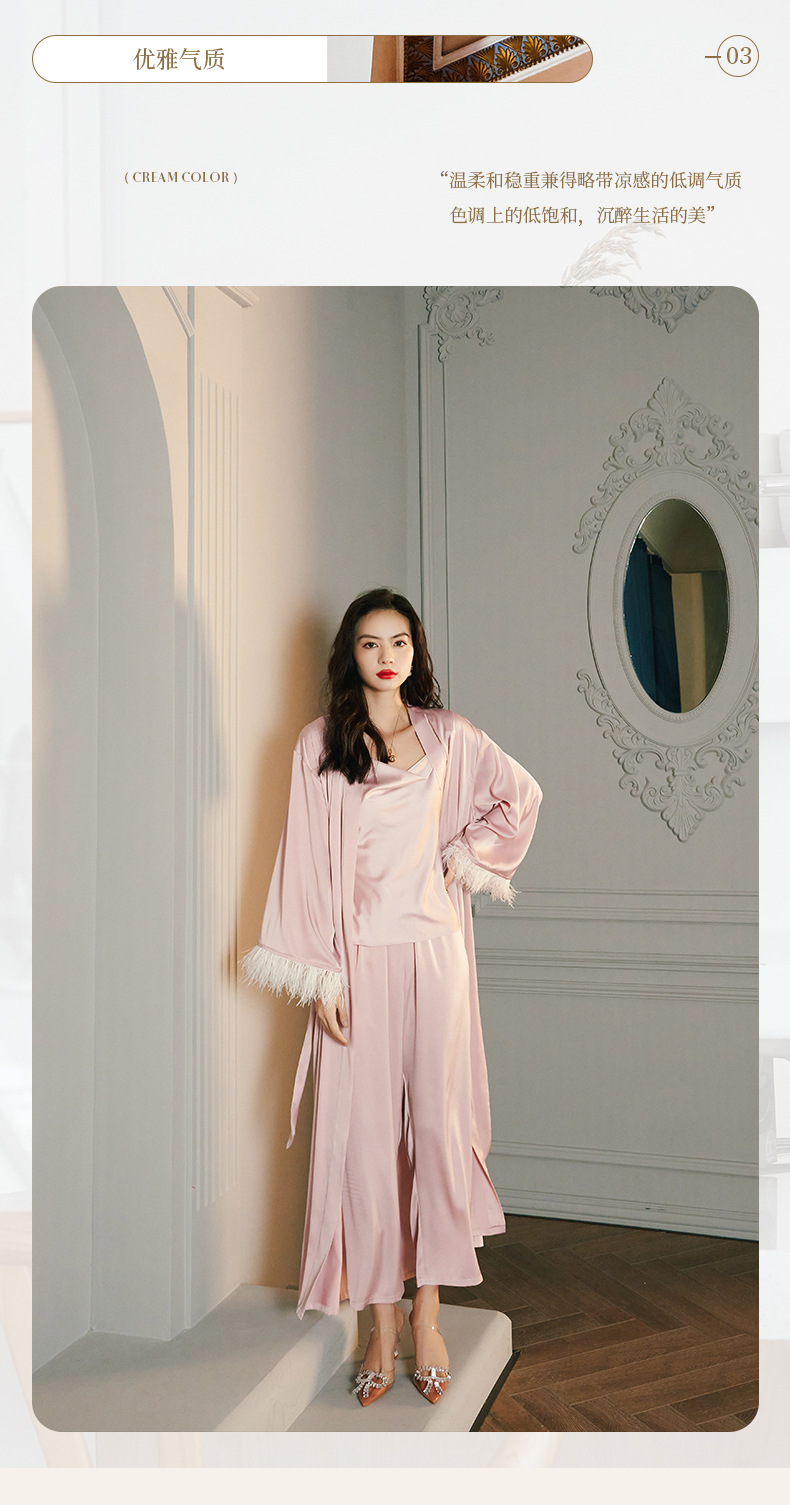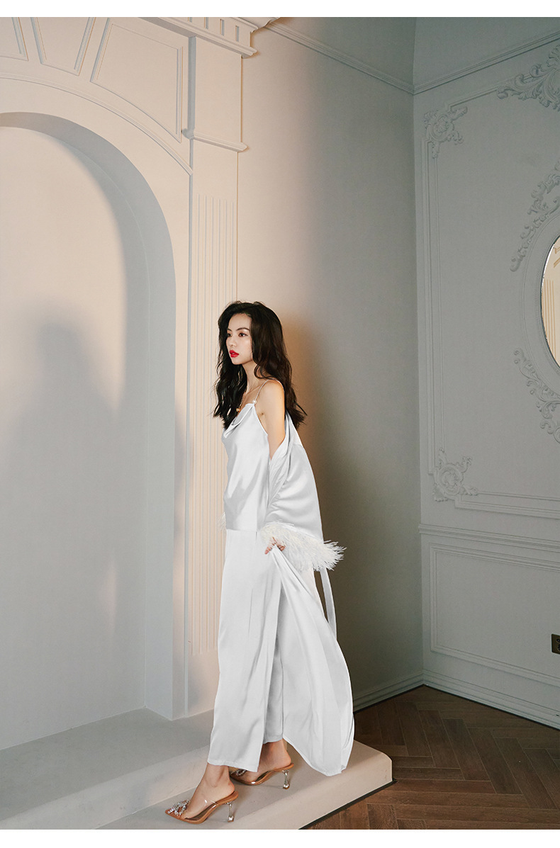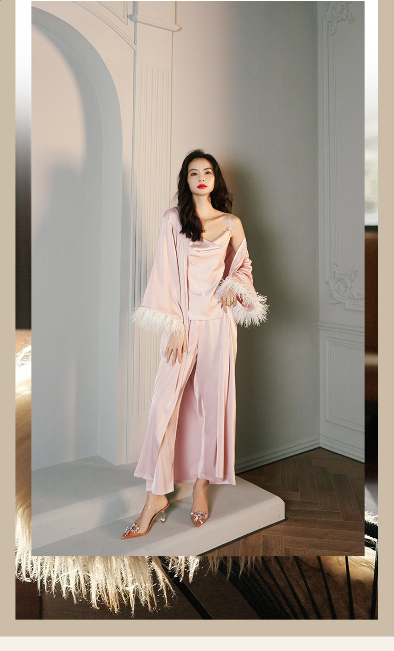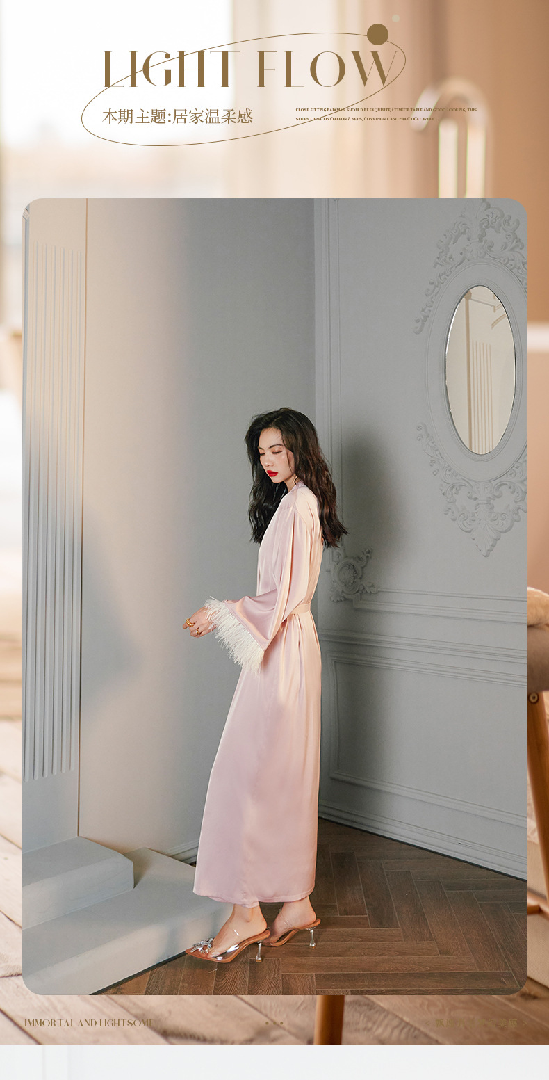 Zoshang hielo pijama de mujer de verano plumas de satén de mangas largas pijama de cabina pantalones largos set de ropa para el hogar 2658 + 2659