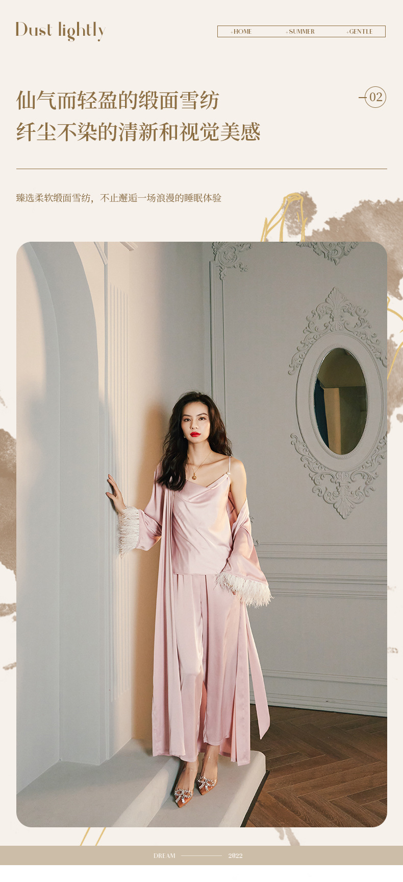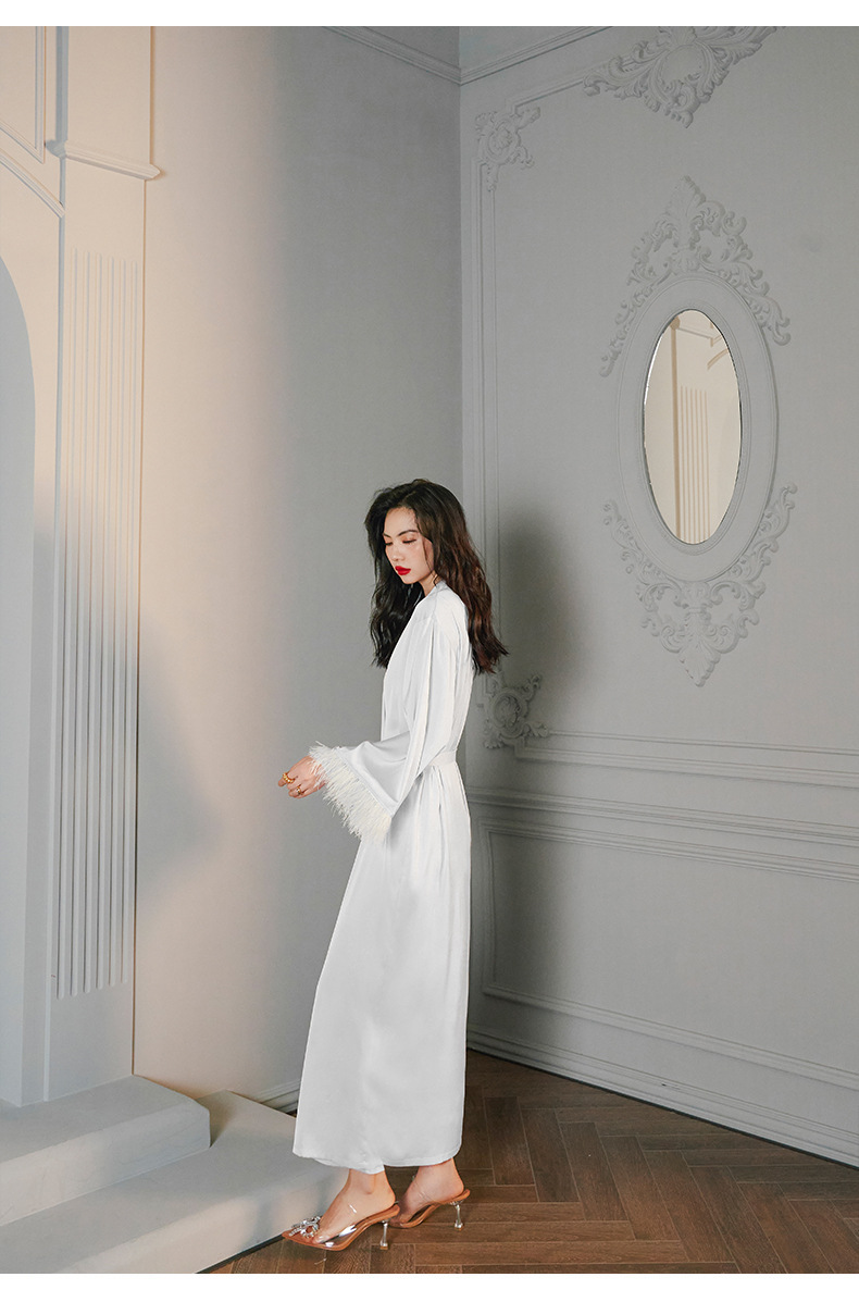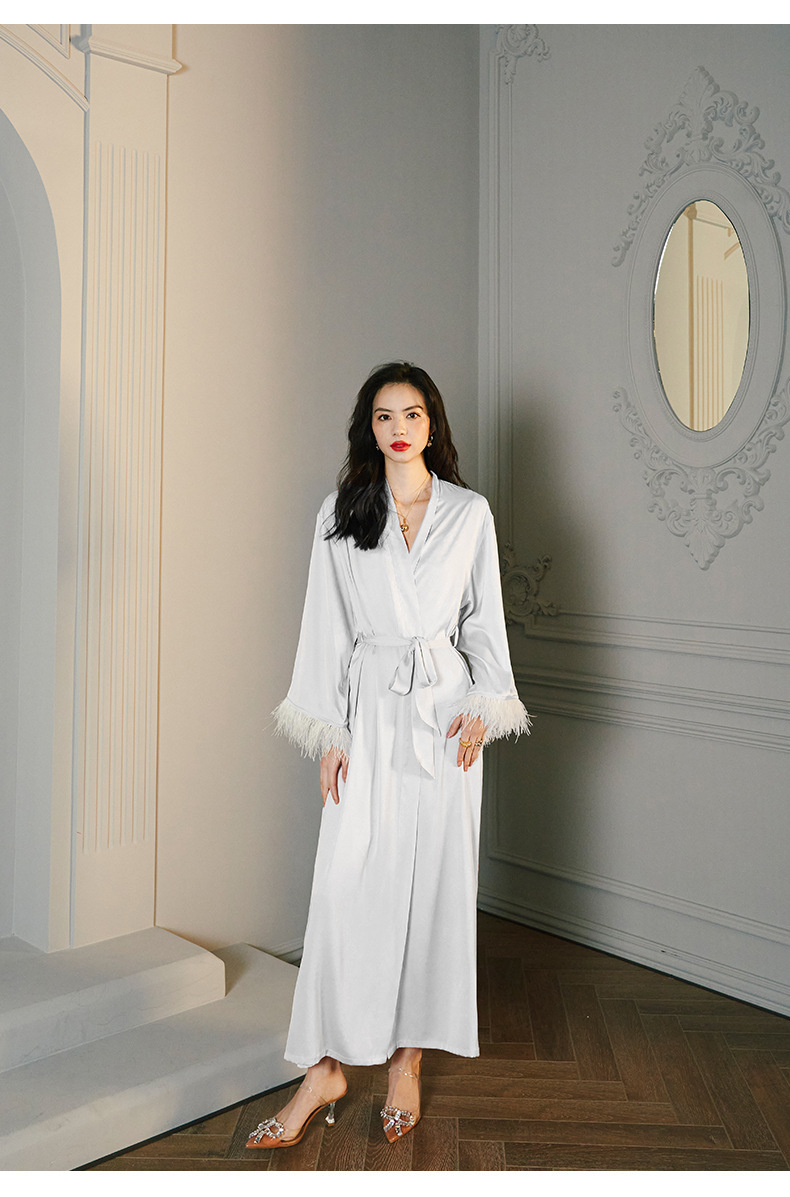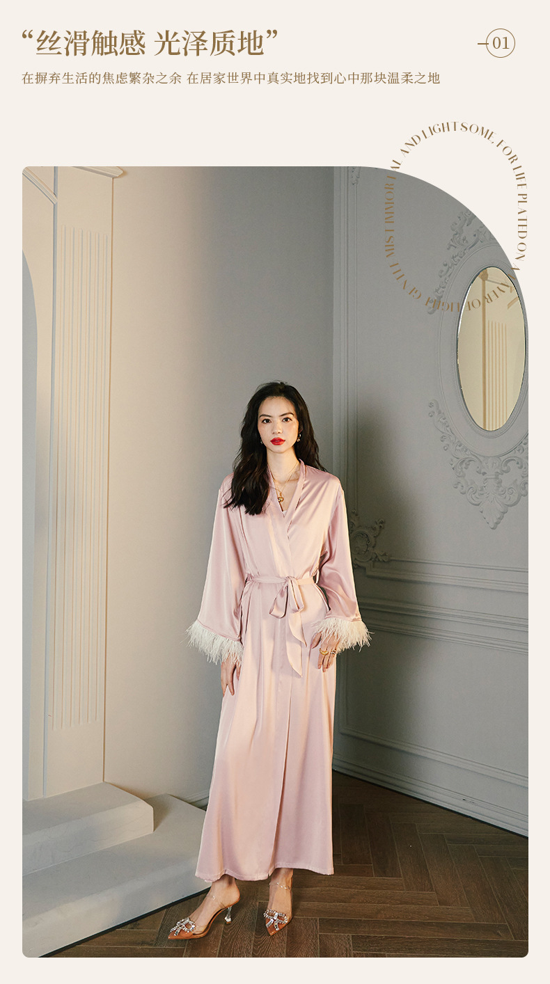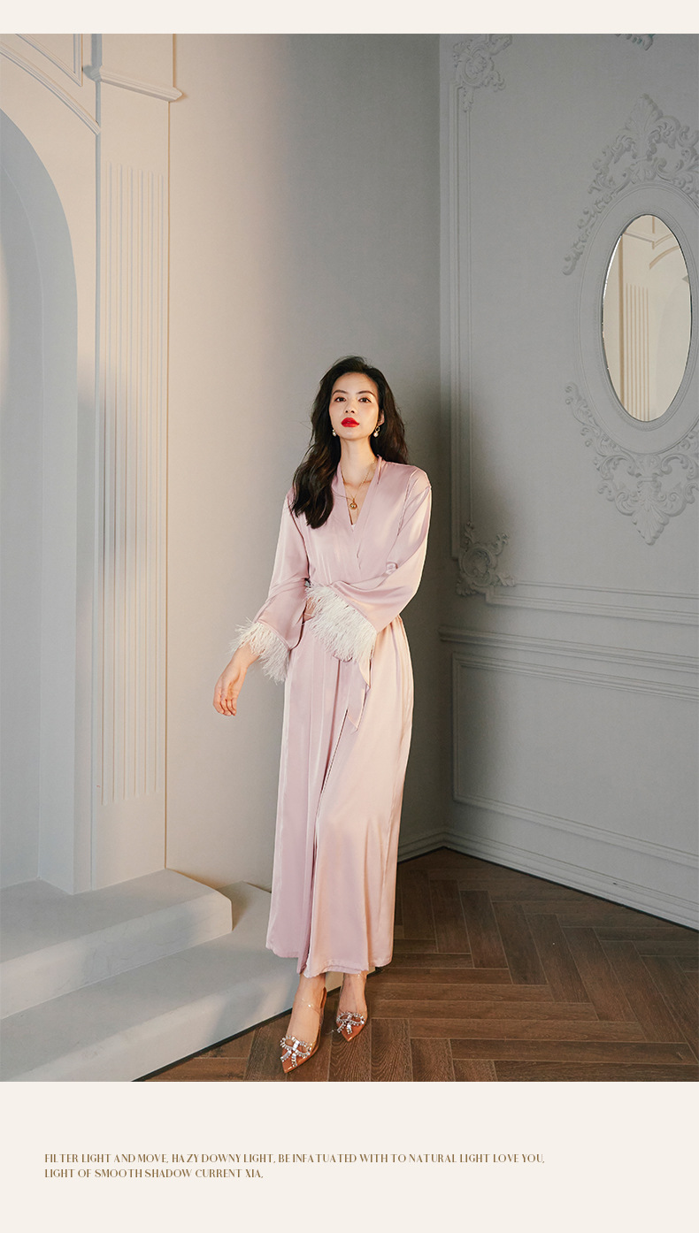 Zoshang hielo pijama de mujer de verano plumas de satén de mangas largas pijama de cabina pantalones largos set de ropa para el hogar 2658 + 2659