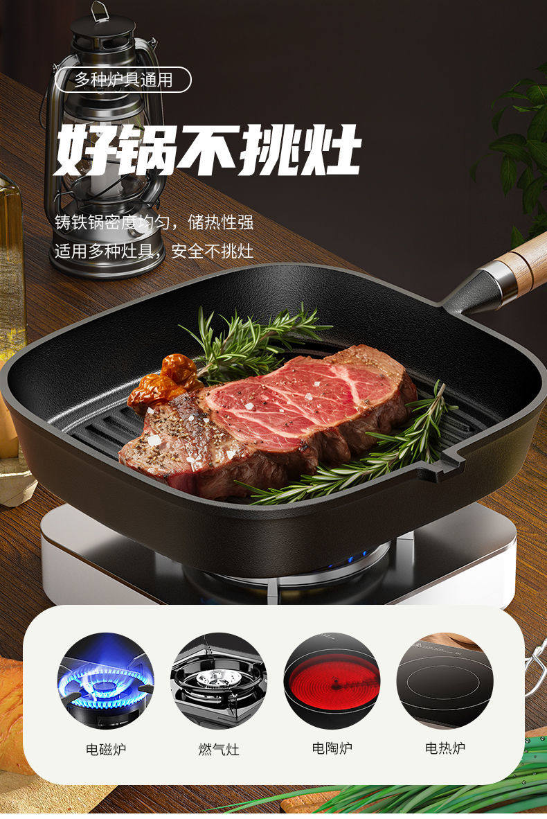 Fritor de filete de hierro fundido sin recubrimiento pan casero pan de filete de hierro de hierro de hierro fundido pan especial de filete de hierro de hierro fundido pan electromagnético universal de gas