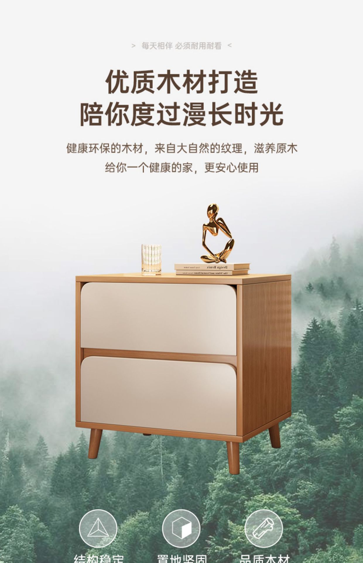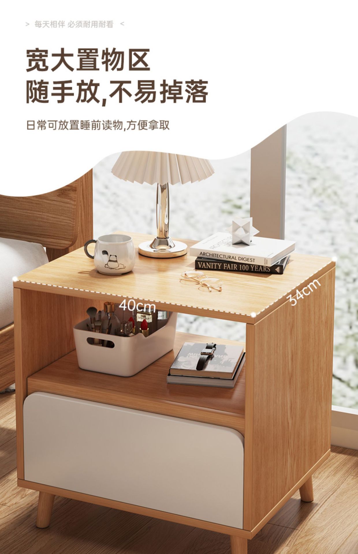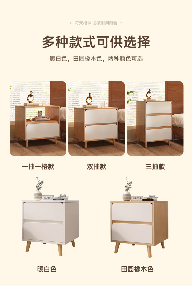 Mesita de noche pequeño gabinete lateral de la cama para uso doméstico, moderno y simple, pata de madera maciza, pequeño gabinete de almacenamiento para alquiler