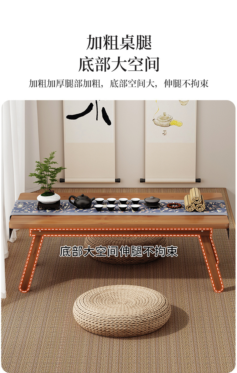 Mesa de té de estilo japonés, ventana flotante de tatami, mesa baja, balcón rectangular plegable, mesa de té, mesa de estudio