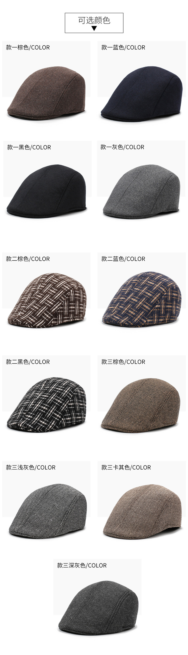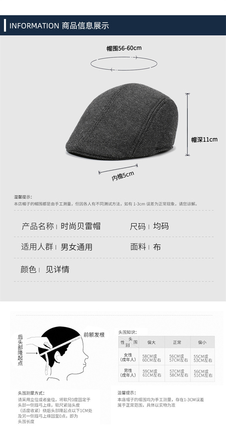 Otoño y invierno gorra de lengua de pato gran placas de la boina de la cabeza gorra de hombre de mediana edad gorra abuelo gorra de invierno