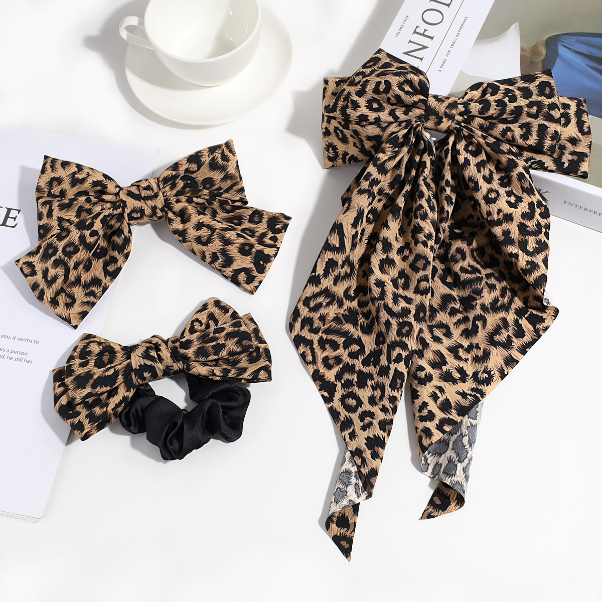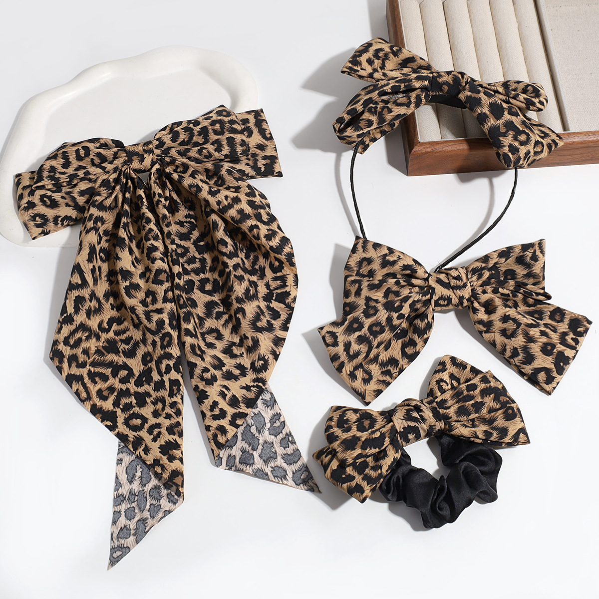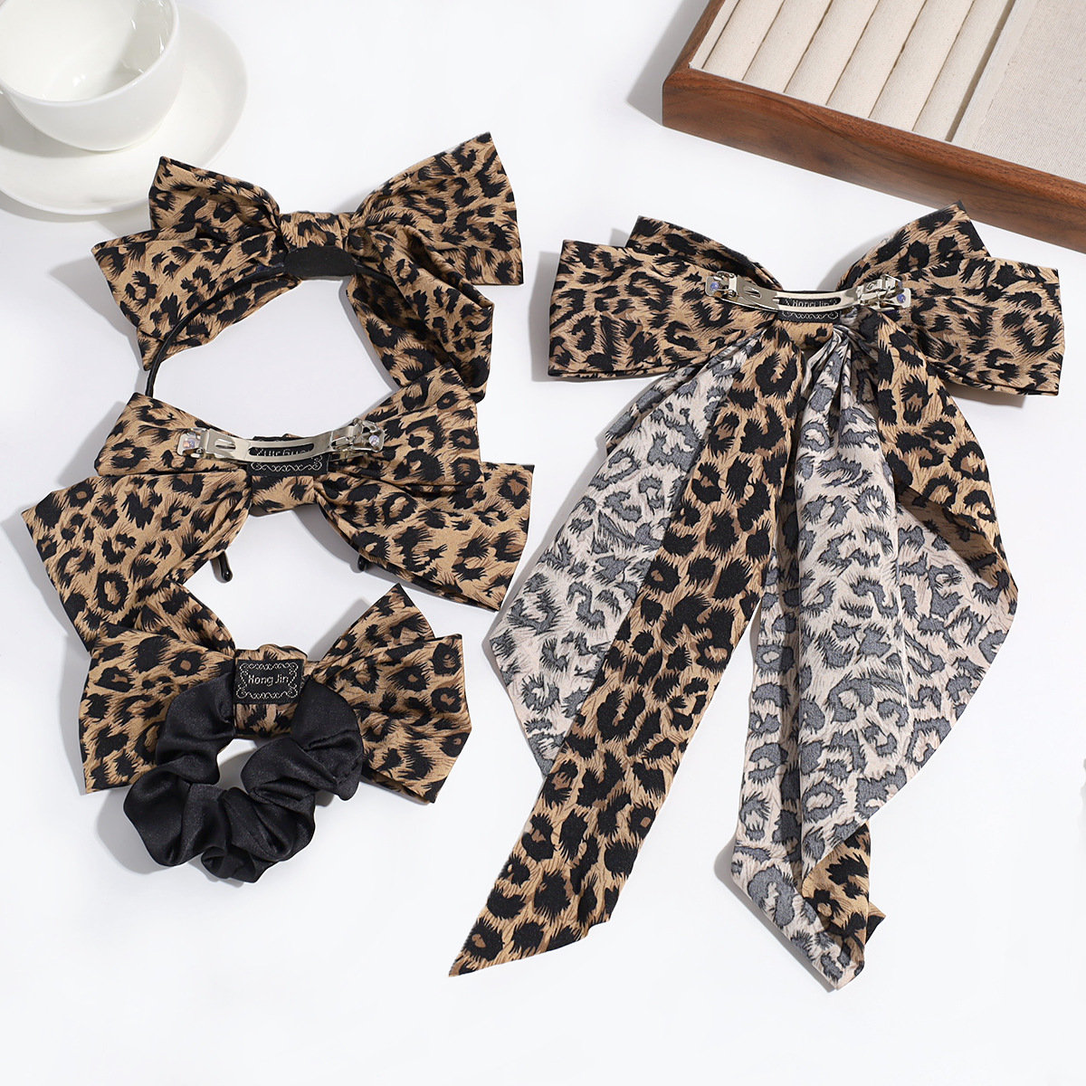 Estilo de moda europeo y americano personalidad nicho de diseño arco leopardo aro de pelo clip de resorte retrógrado anillo para el pelo accesorios para el pelo