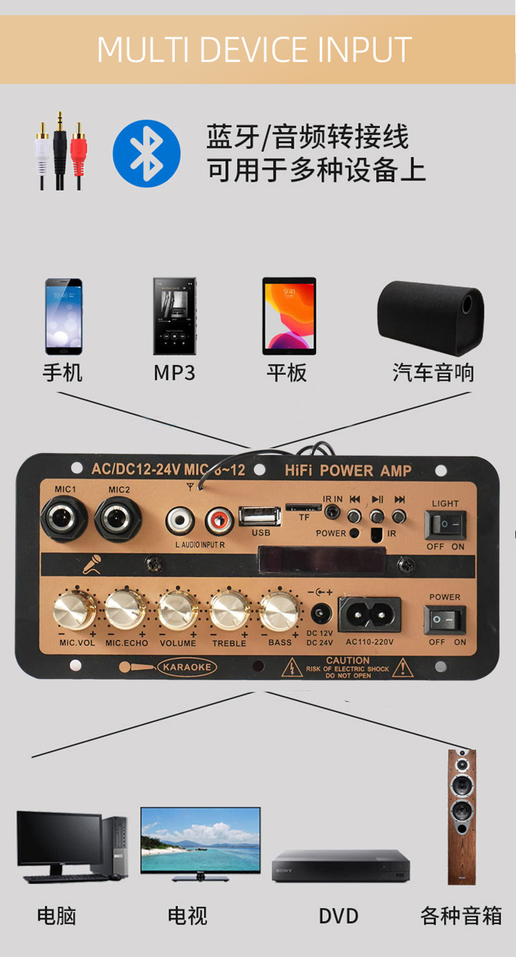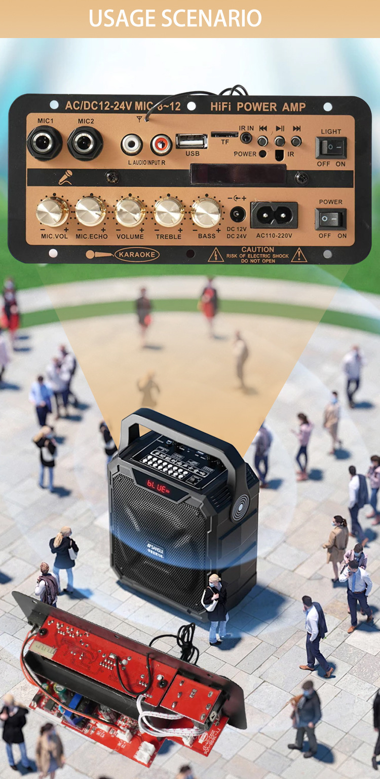 Fabricante Bluetooth Audio Placa del amplificador de potencia digital Coche Square Dance Family K Song Altavoz Placa base 12v220v