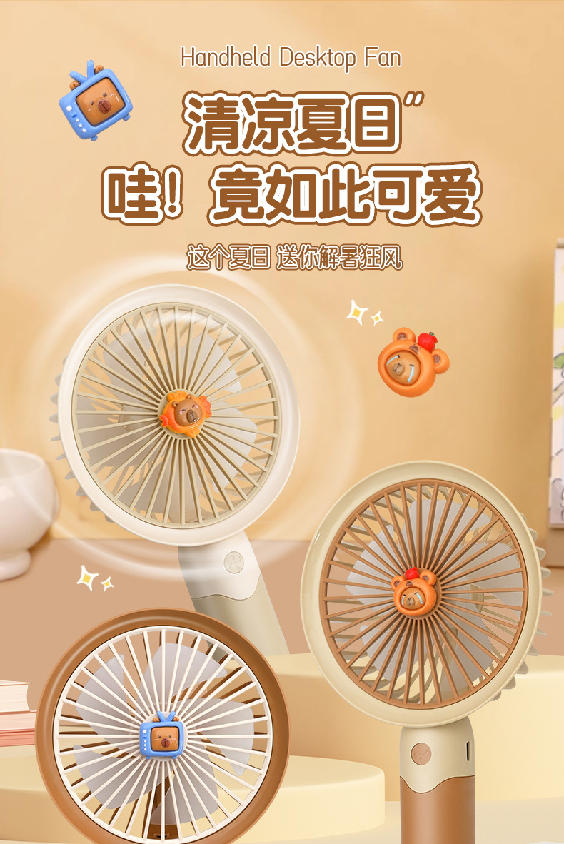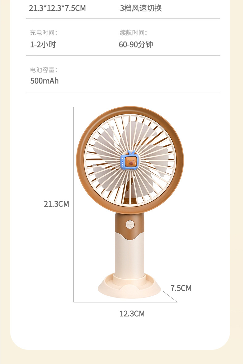 Mufeng Kapibara gran ventilador de hoja de dibujos animados pequeño ventilador de carga USB con soporte de teléfono móvil regalo de oficina de estudiantes