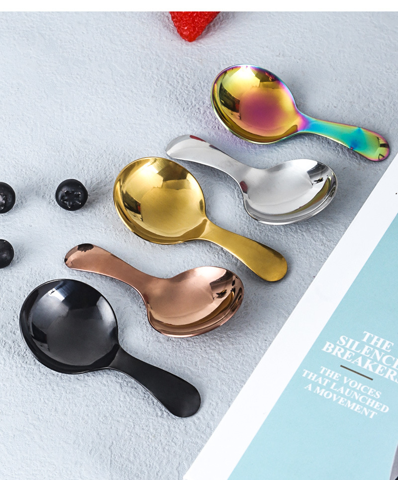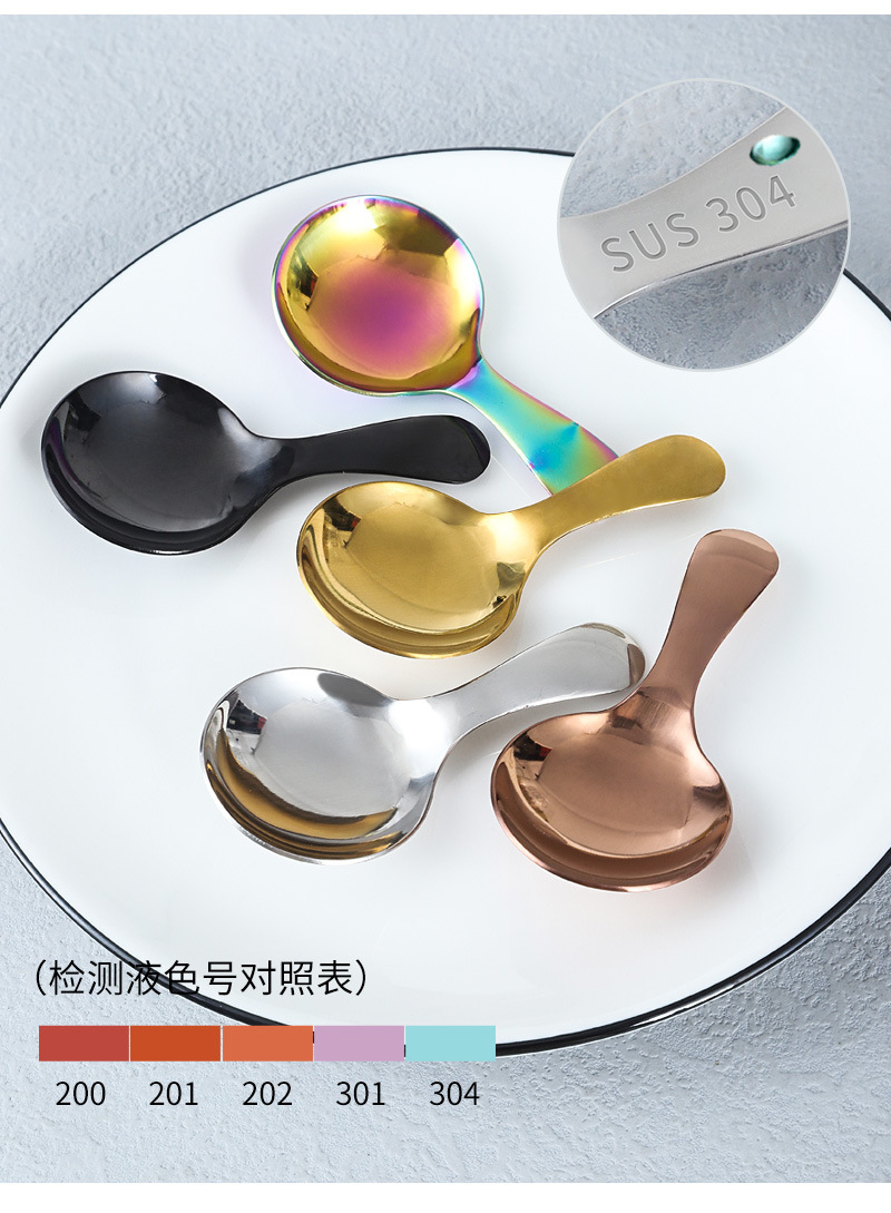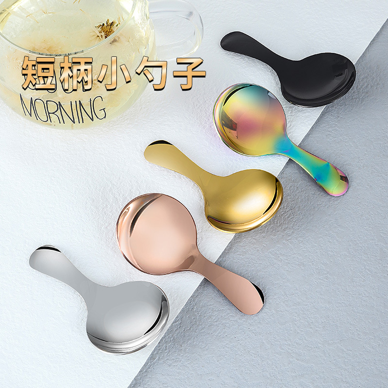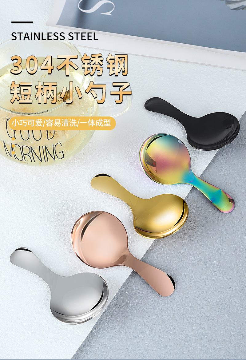304 cuchara de acero inoxidable subred rojo coreano creativo mango corto cuchara de los niños lindo postre helado cuchara té Chapado en titanio cuchara redonda