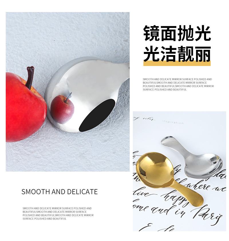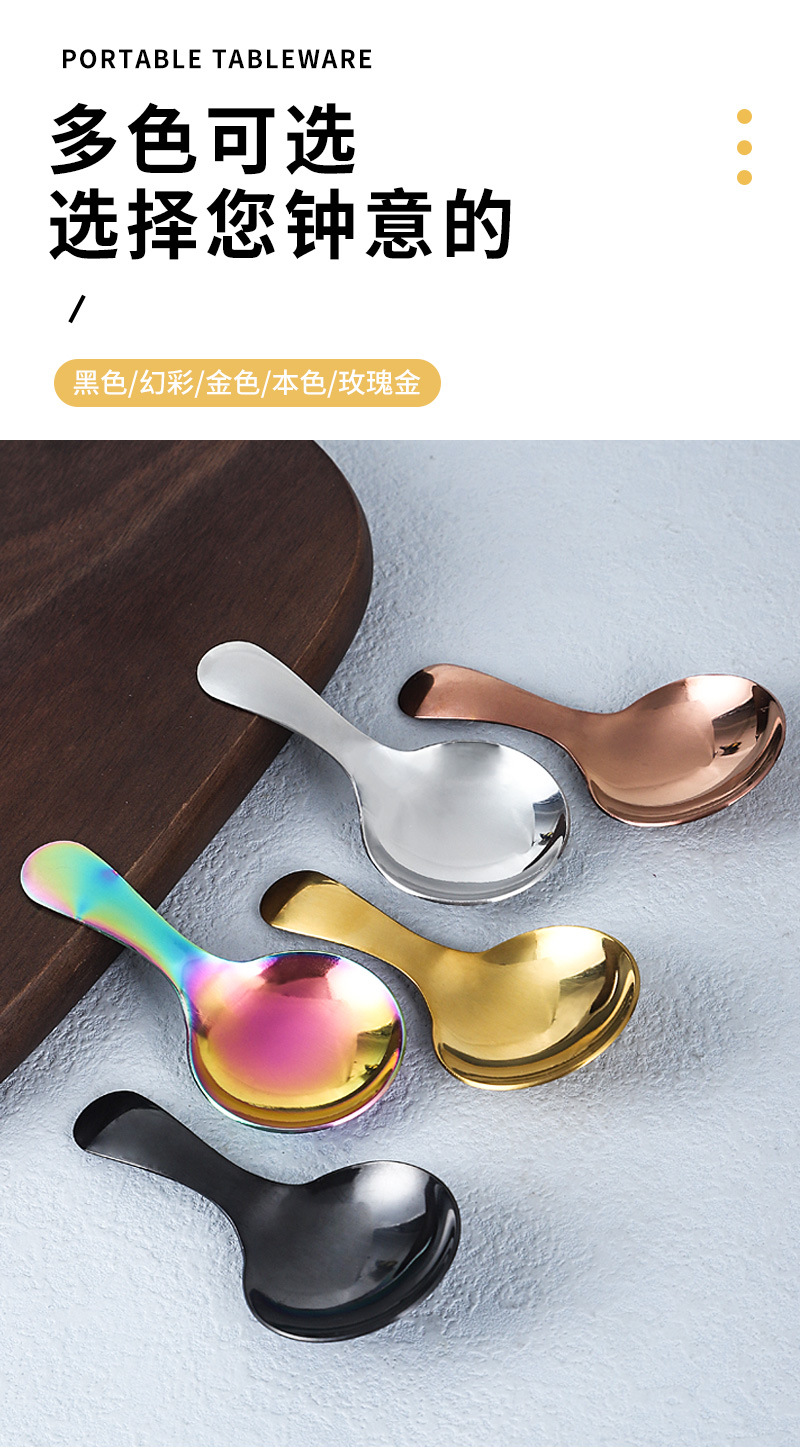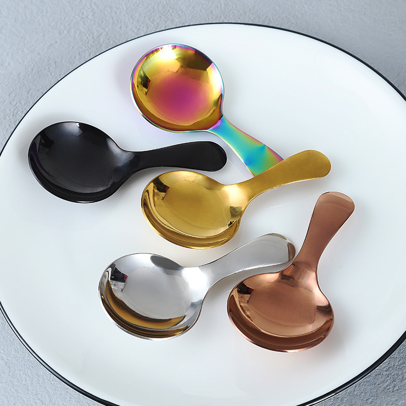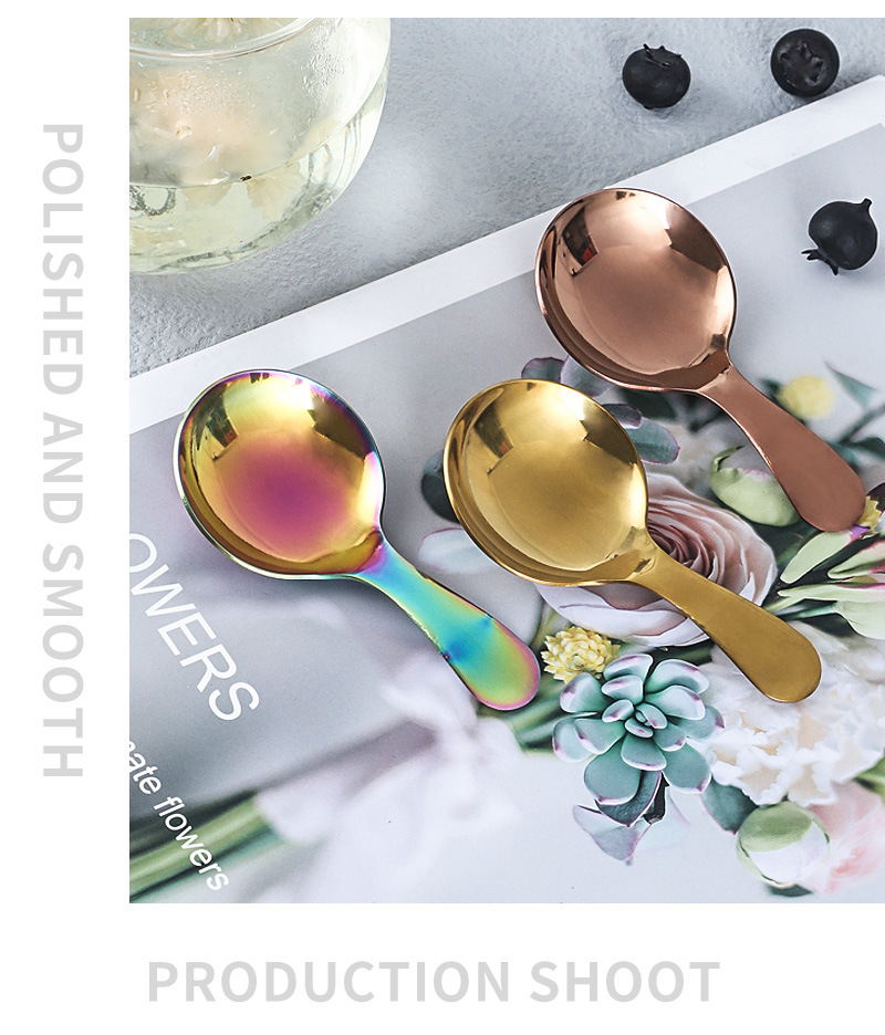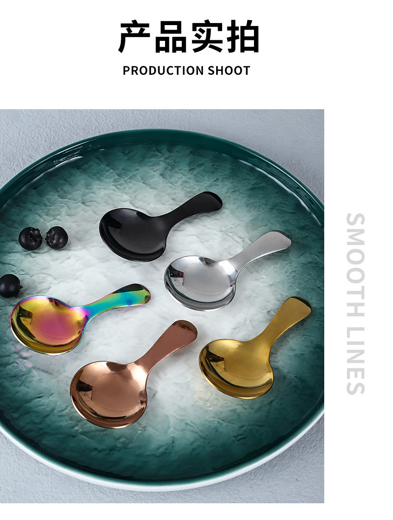 304 cuchara de acero inoxidable subred rojo coreano creativo mango corto cuchara de los niños lindo postre helado cuchara té Chapado en titanio cuchara redonda