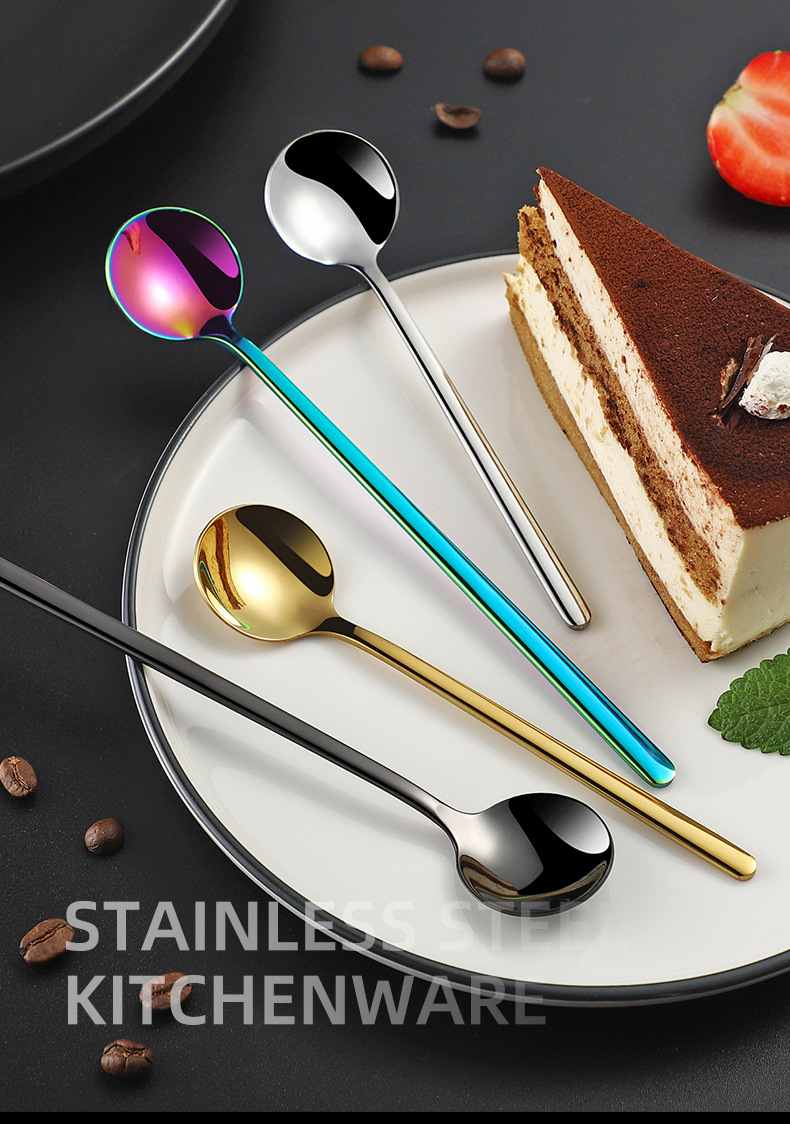 Cuchara de acero inoxidable 304 taza de postre de café creativo cuchara para mezclar miel cuchara vajilla regalo pequeña cuchara redonda