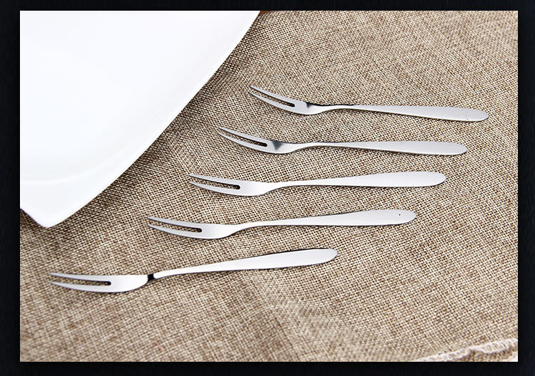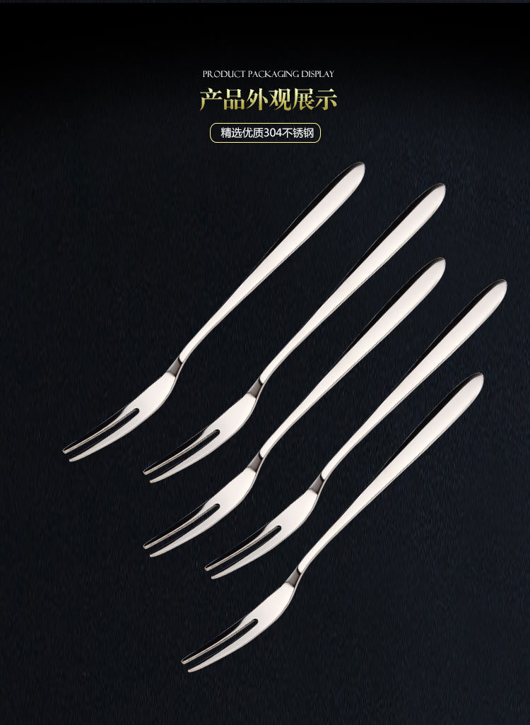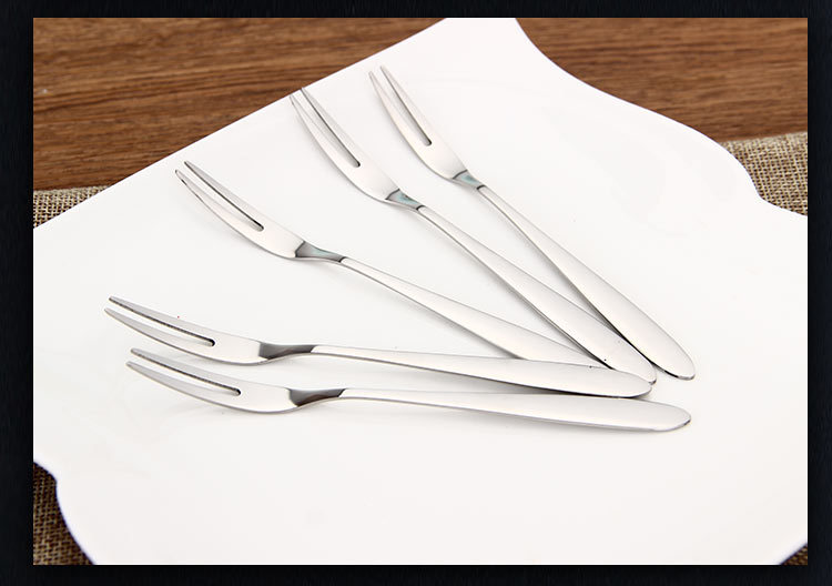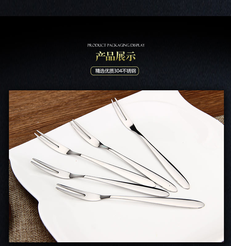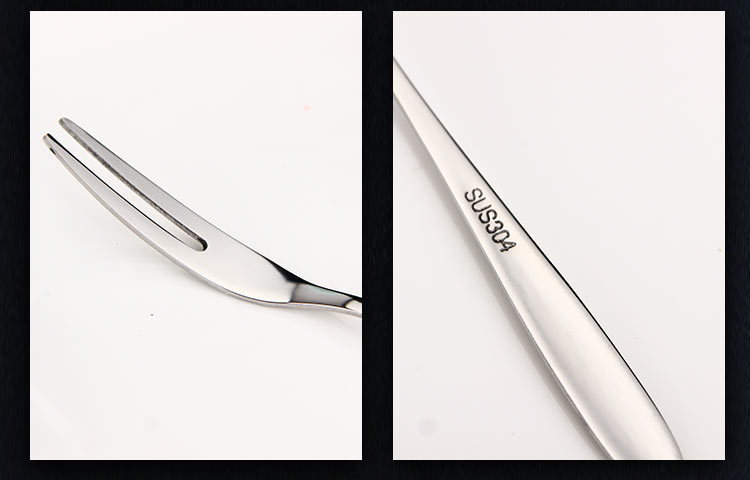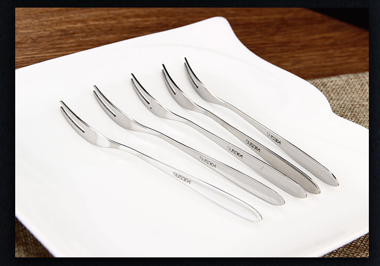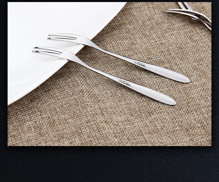 304 Tenedor de frutas de acero inoxidable Tenedor de dos dientes tenedor occidental pastel de postre pastel de Luna Tenedor de postre de carne se puede personalizar el logotipo