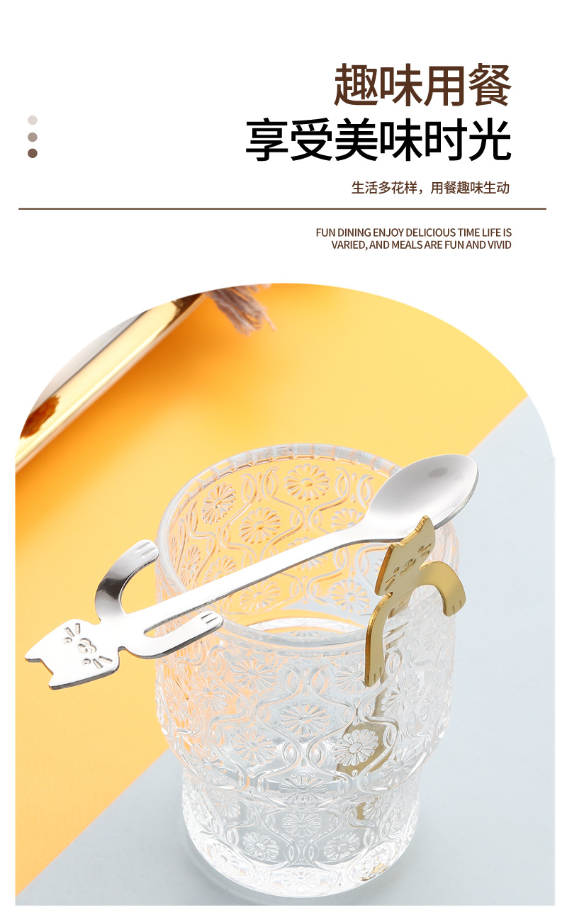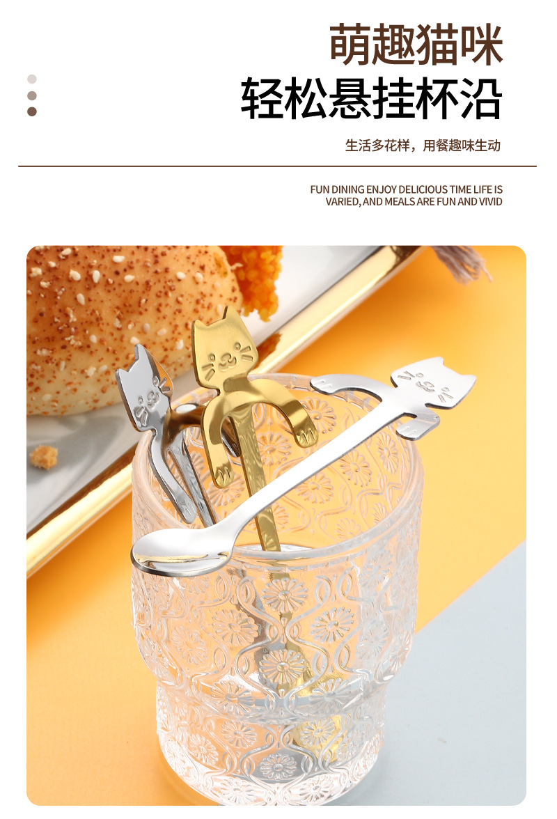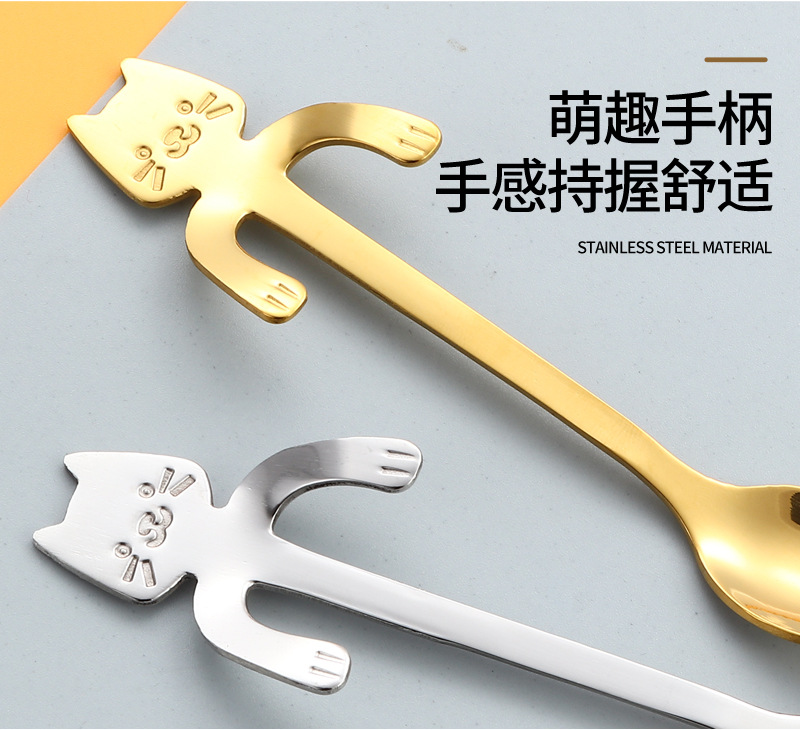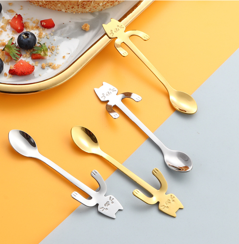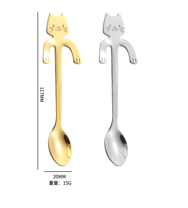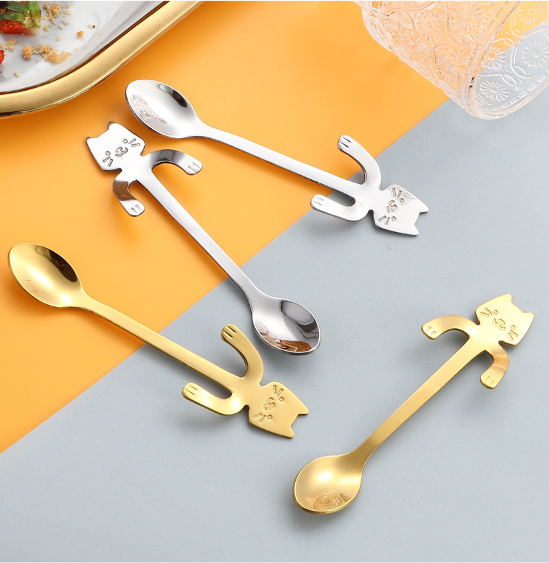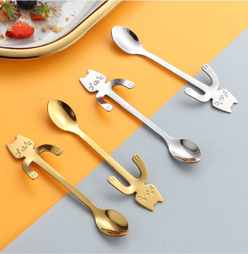 Cuchara de acero inoxidable 304 taza de dibujos animados creativa cuchara de café cuchara de gato colgante chapado en oro cuchara de helado de postre batido