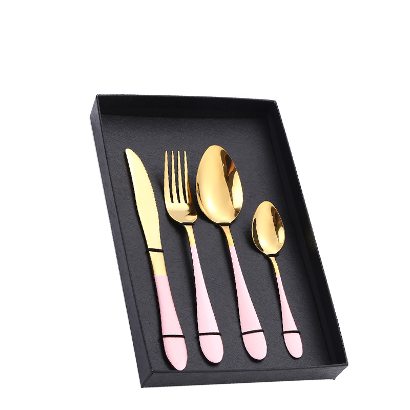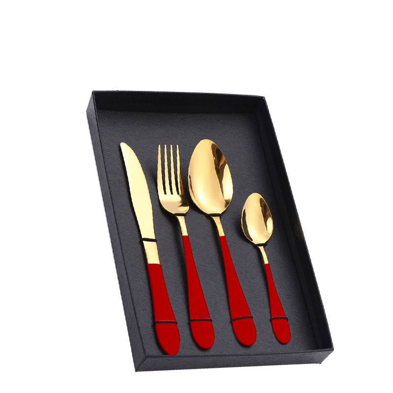 Amazon Tik Tok vajilla de acero inoxidable 4/5 piezas traje 1012 cuatro piezas principales caja de regalo cuchillo de comida occidental, tenedor y cuchara traje