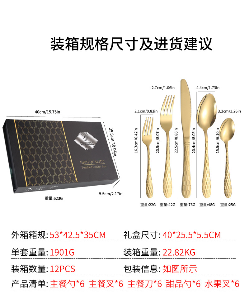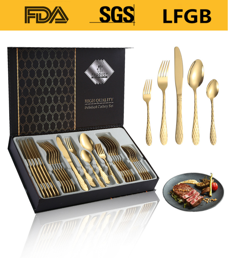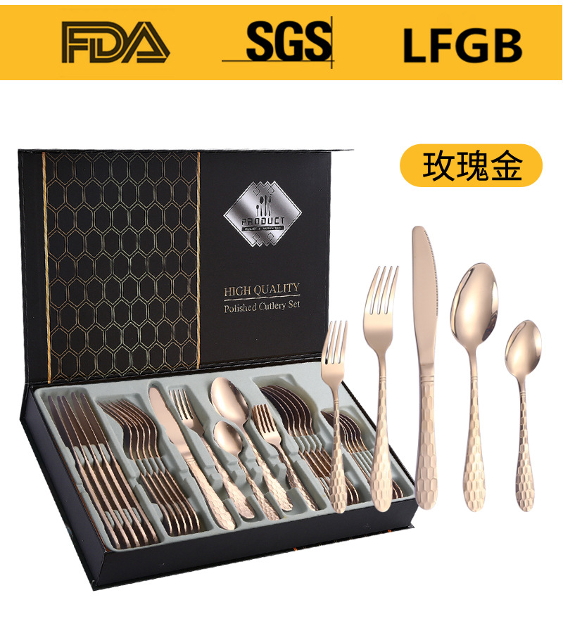 Productos transfronterizos de Amazon cubiertos de acero inoxidable 30 conjuntos de cubo de agua 5 piezas principales caja de regalo cuchillo y tenedor de comida occidental conjunto de cucharas