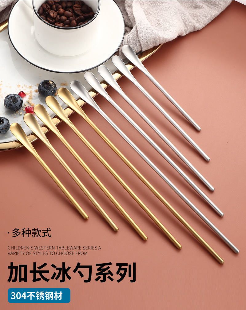 304 cucharas de acero inoxidable cucharas de hielo de mango largo cucharas de postre de café cucharas de miel cucharas de barra de mezcla