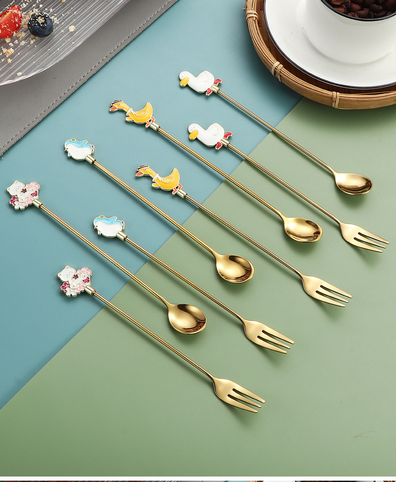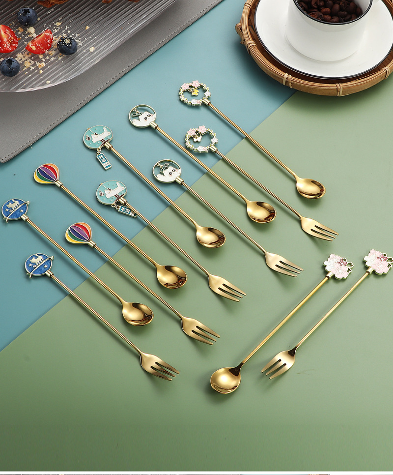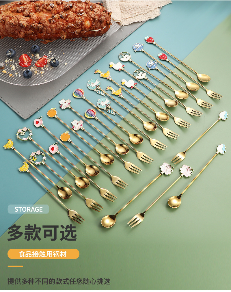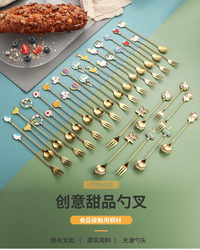 Cuchara de Navidad de acero inoxidable 304, mango de hilo, helado creativo, postre, vajilla de regalo dorado, juego de cuchara y tenedor