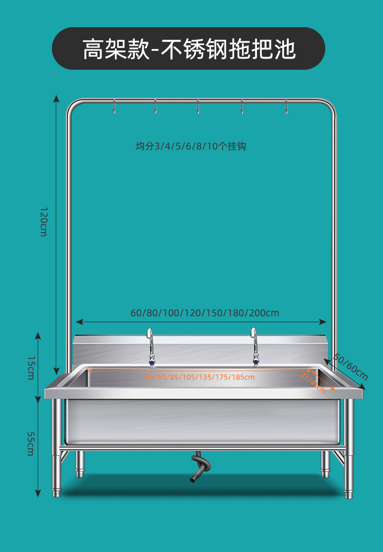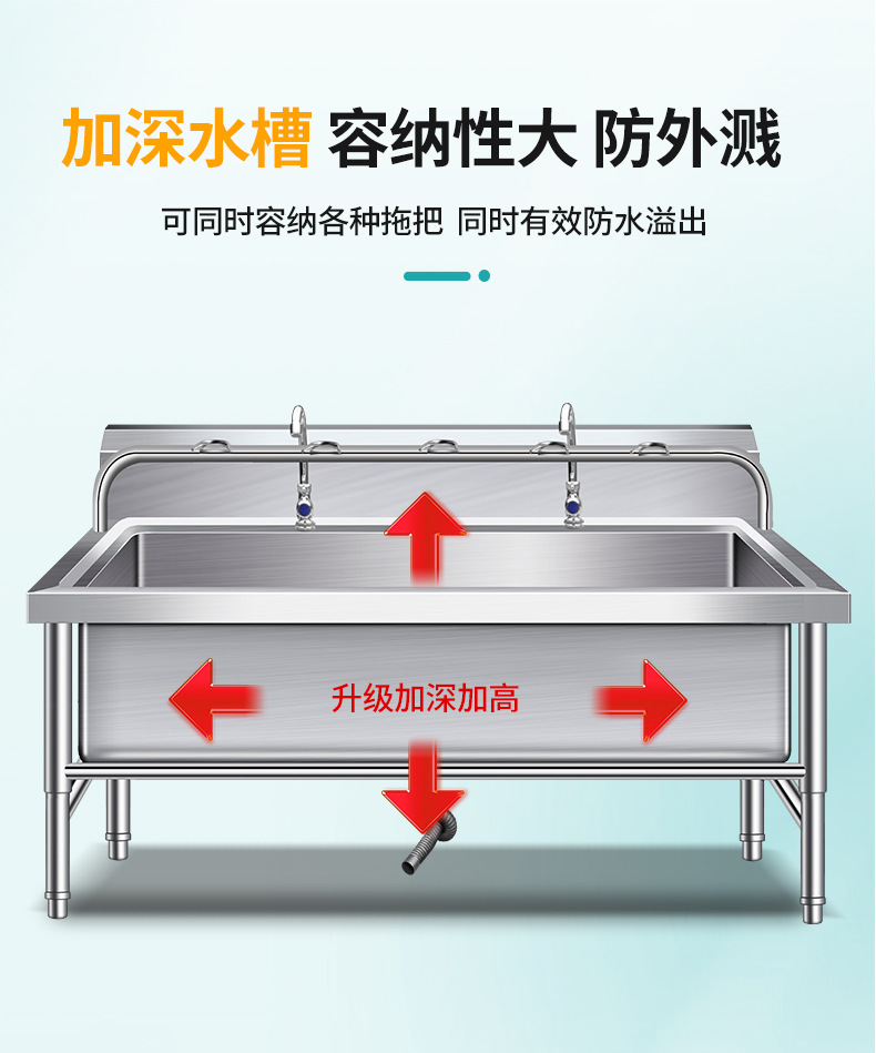 Tanque de fregona de acero inoxidable 304, tanque de fregona, tanque de fregona, tanque de fregona, tanque de fregona, cocina, comedor para el hogar, fábrica escolar