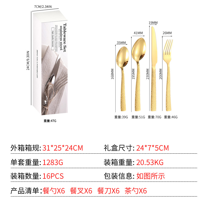 Productos de Amazon cubiertos de acero inoxidable 16 / 24 piezas con mango cuadrado engrosado cuchillo de filete cuchara de cuchillo de tenedor de agua cubo de comida occidental