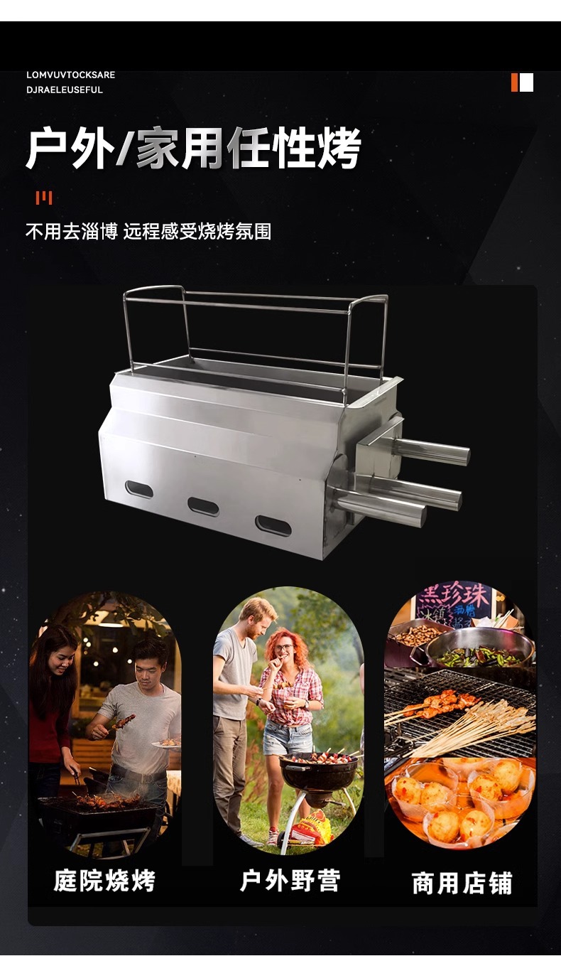 Parrilla de Barbacoa Zibo Comercial, Parrilla de Carbón Vegetal Doméstica de Acero Inoxidable Grueso, Parrilla de Barbacoa sin Humo, Parrilla de Barbacoa Portátil