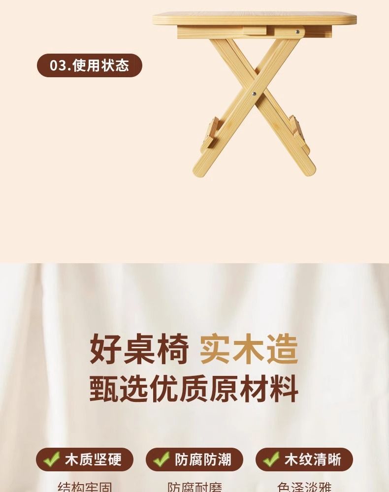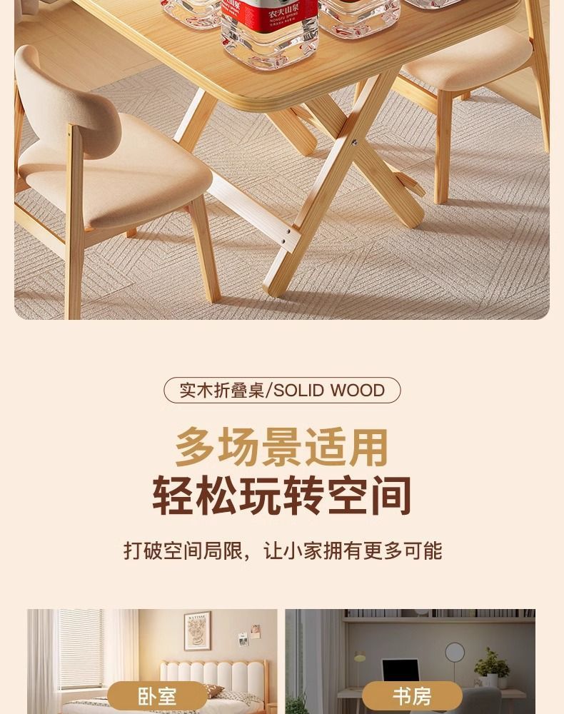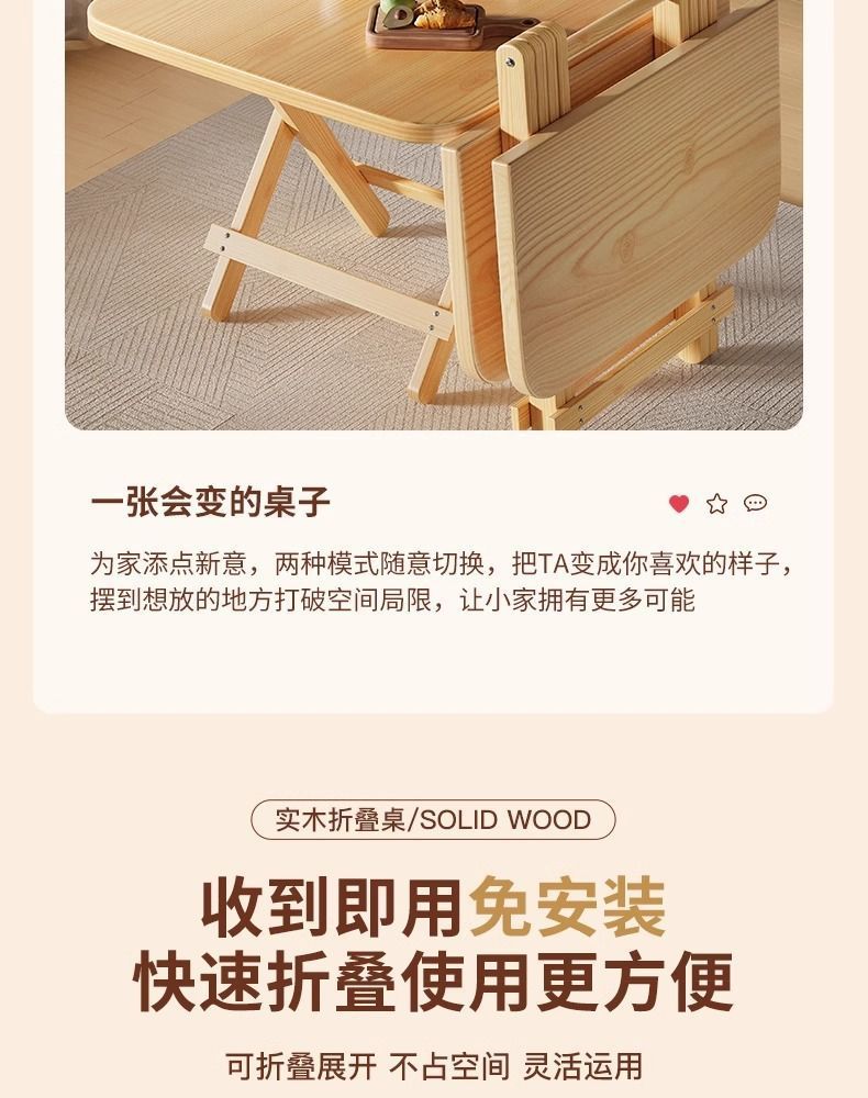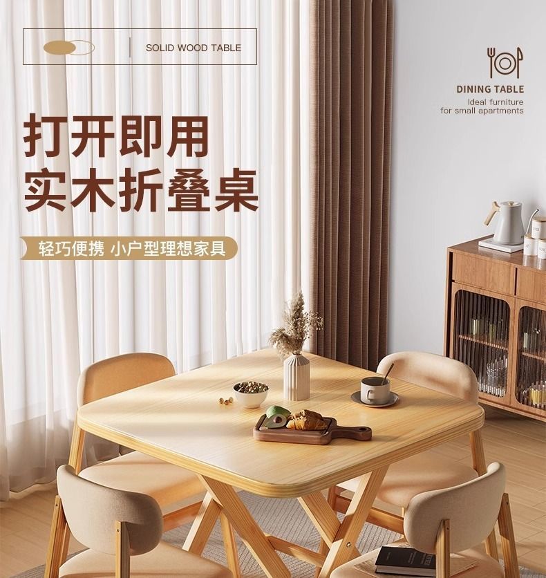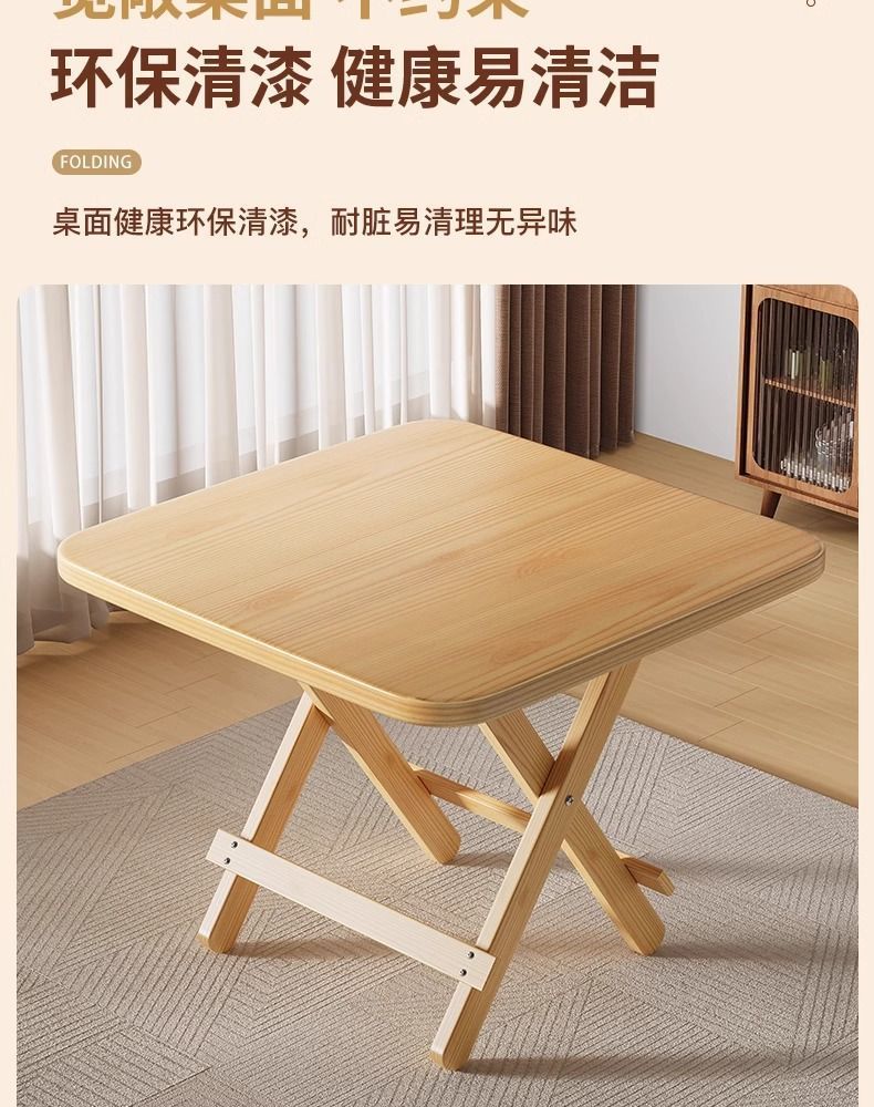 Mesa plegable de madera maciza [80 * 80 * 70cm] madera de pino importada