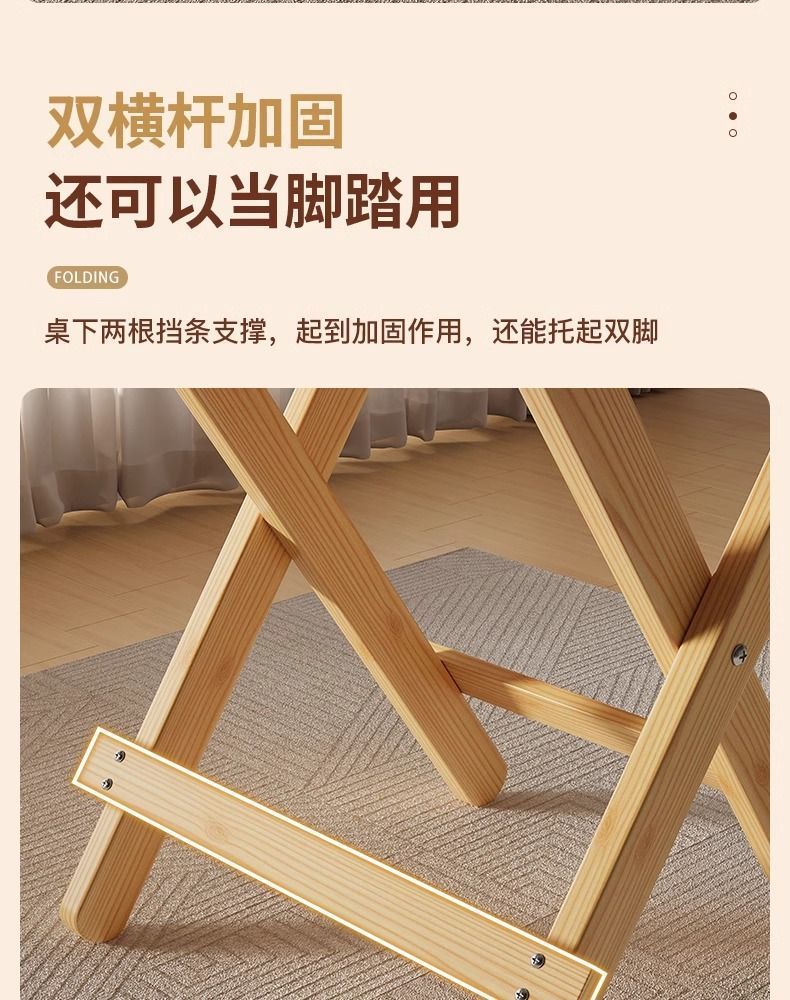 Mesa plegable de madera sólida [60 * 60 * 58cm] madera de pino importada