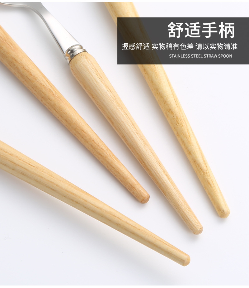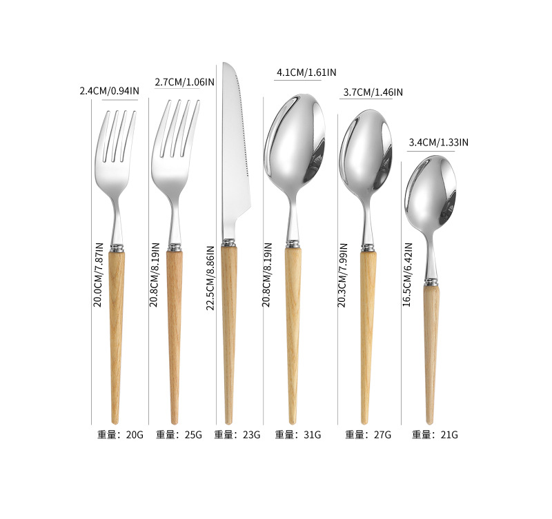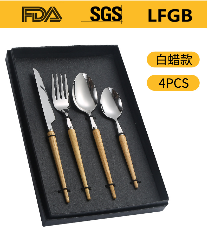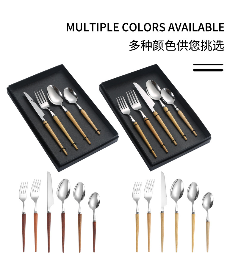 304 mango de madera de acero inoxidable cuchillo y tenedor portugués cuchara de postre cuchara de postre tenedor de cubierta de comida occidental cuchillo y tenedor de filete set cuchara