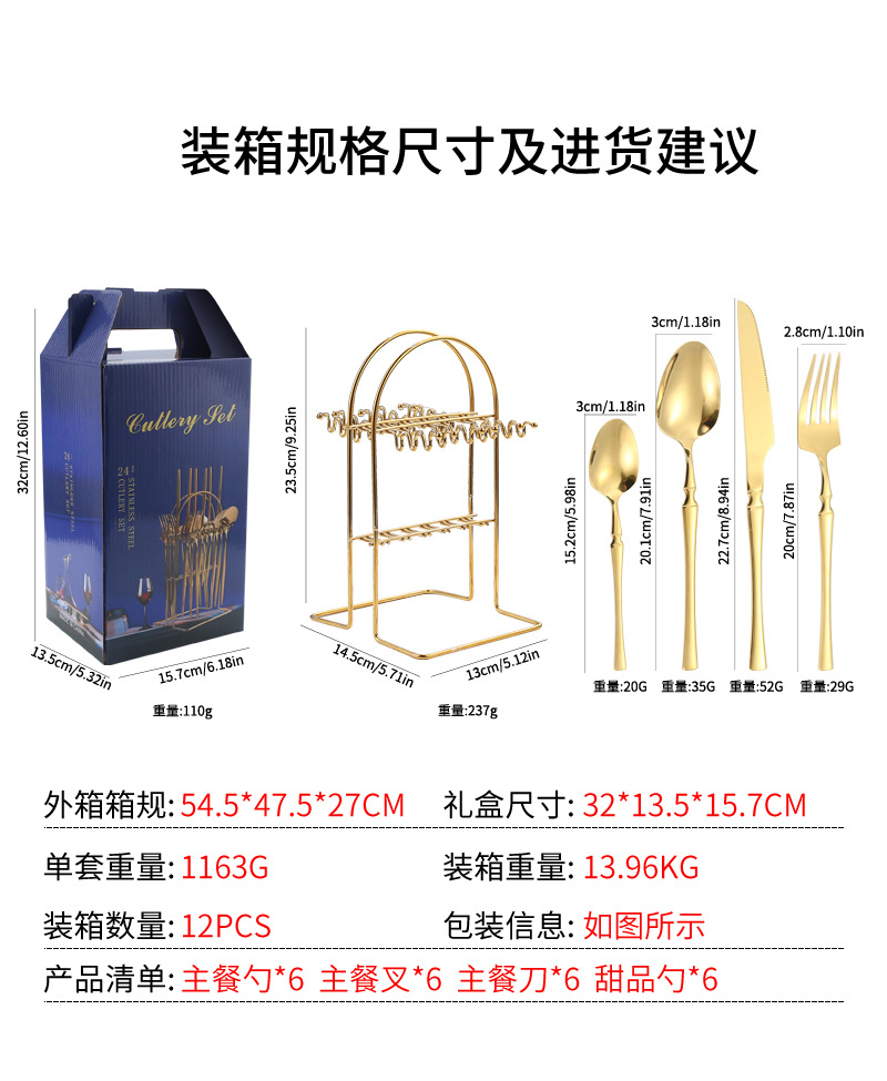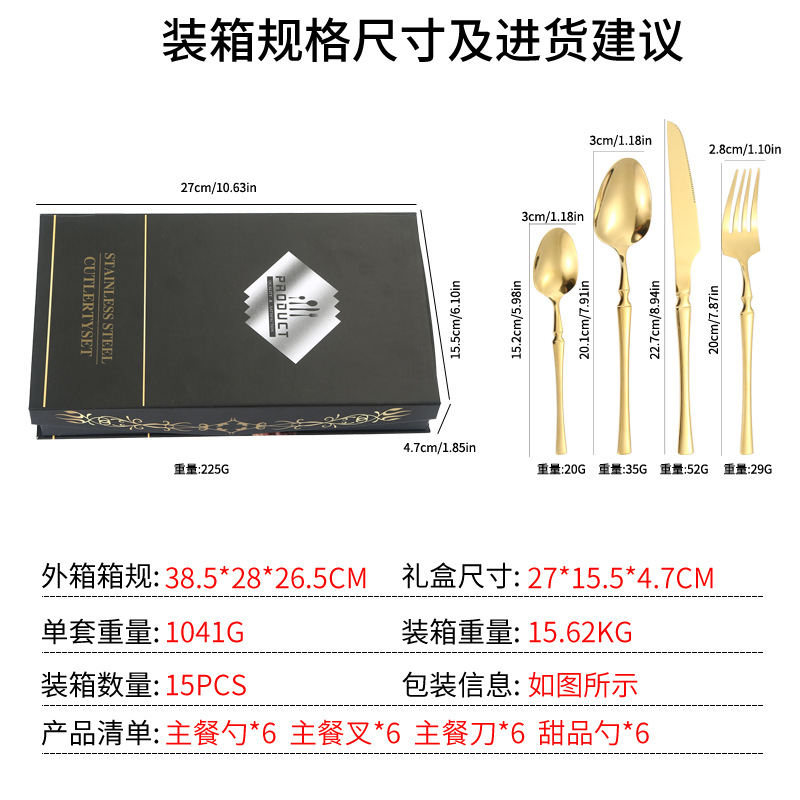 Amazon transfronteriza suministro de vajilla de acero inoxidable 24 piezas traje de cintura pequeña 4 piezas caja de regalo cuchillo, tenedor y cuchara traje